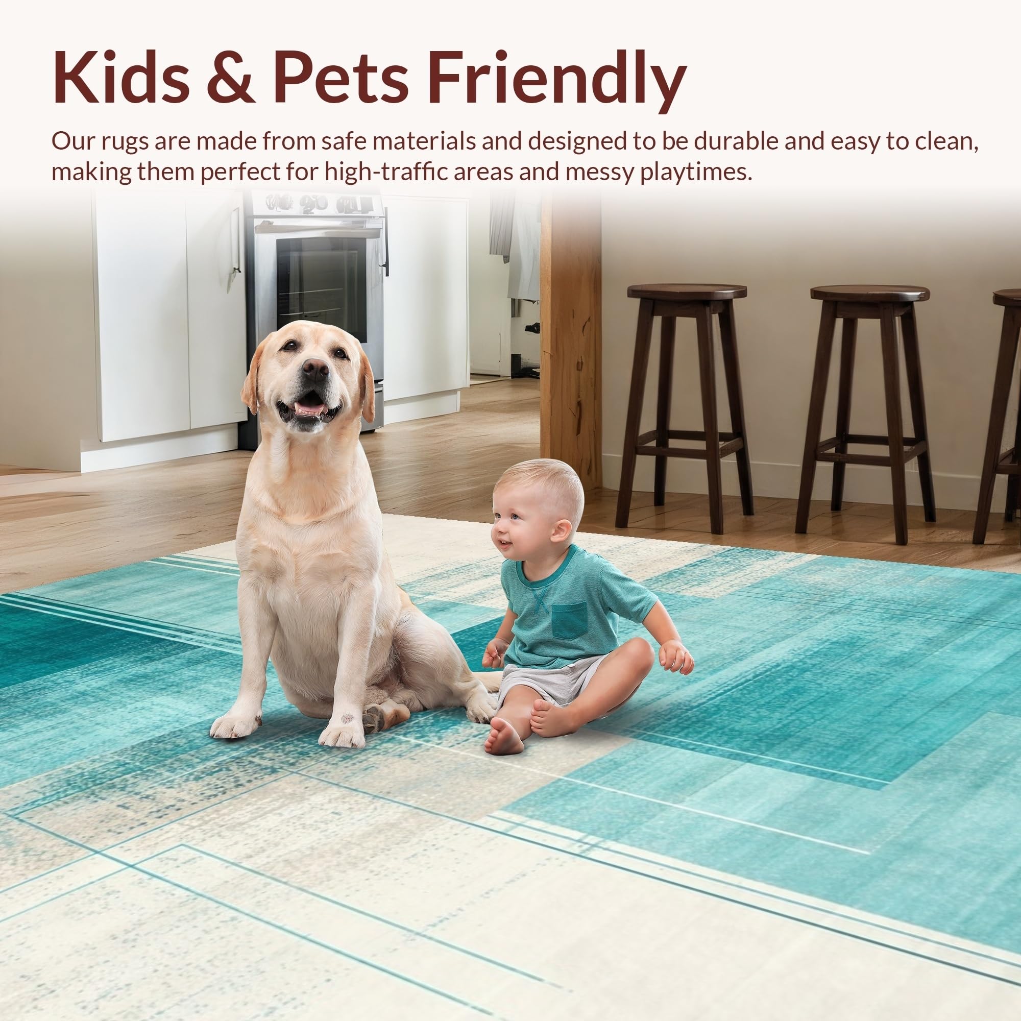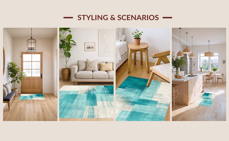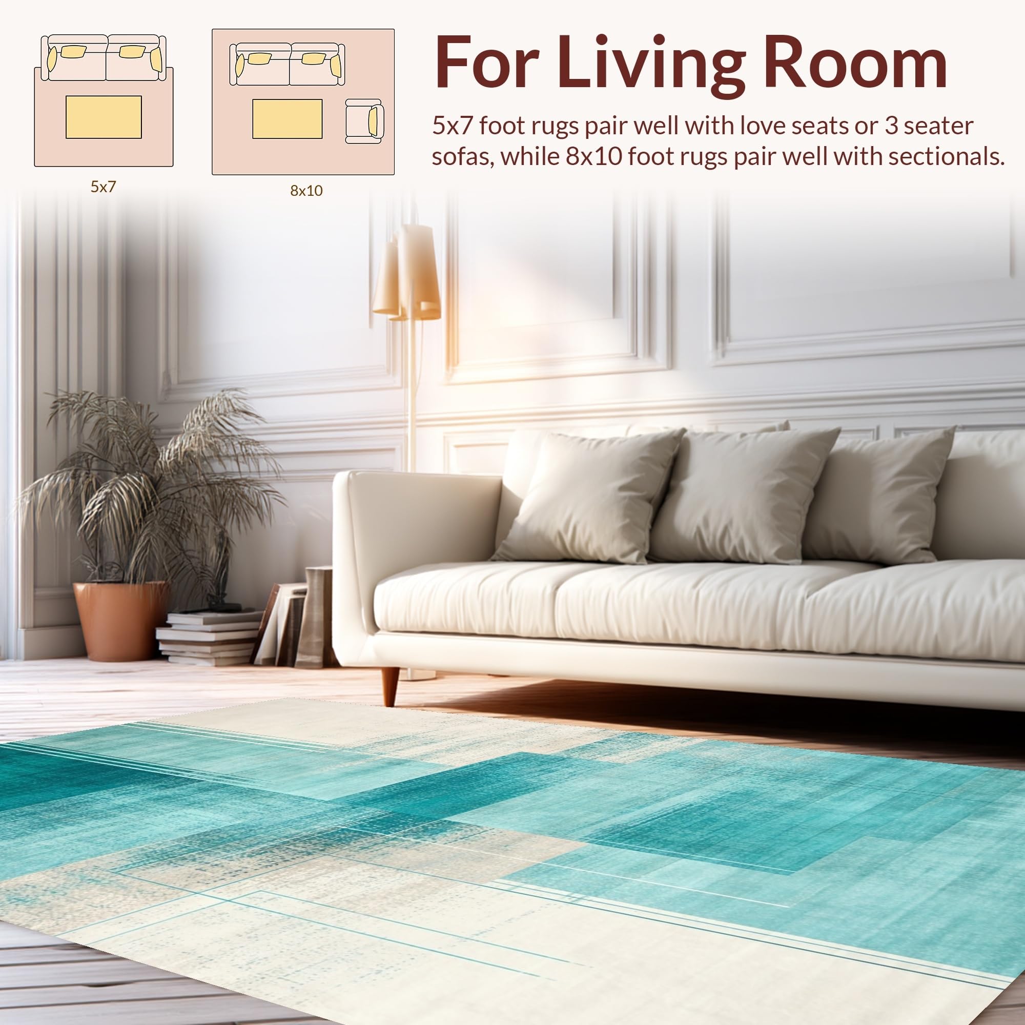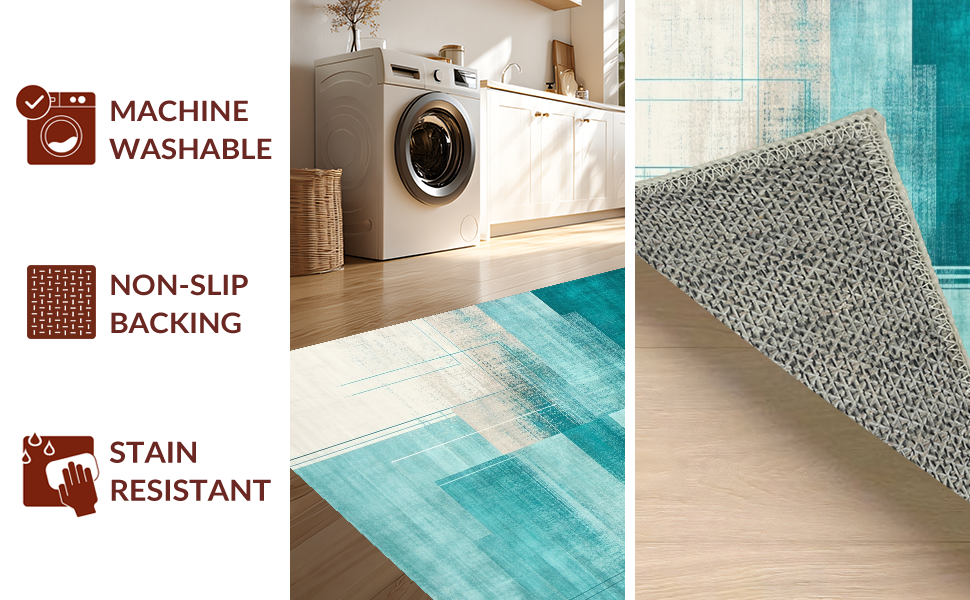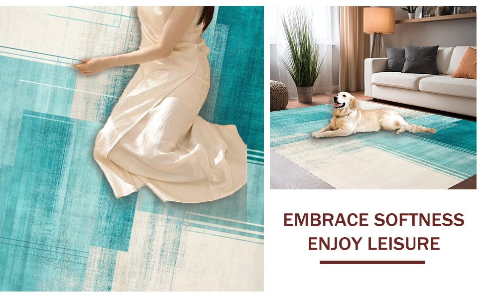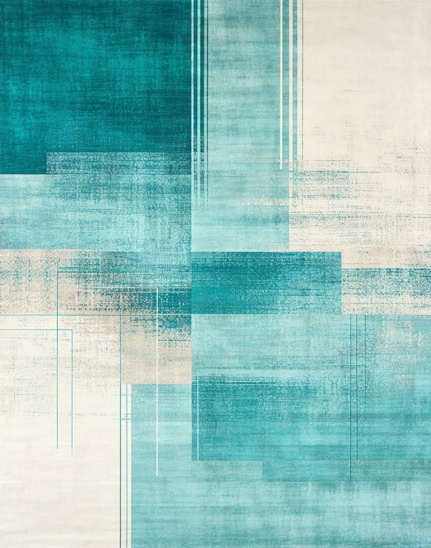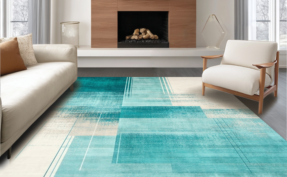 Ultra Soft Area Rug, Non Slip, Stain Resistant, Washable Area Rugs for Living Room, Bedroom, Dynamic Aqua and Ivory Fusion Style(Blue) Overview: