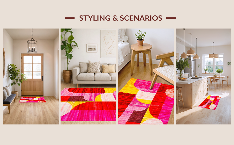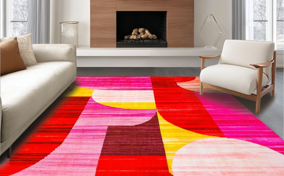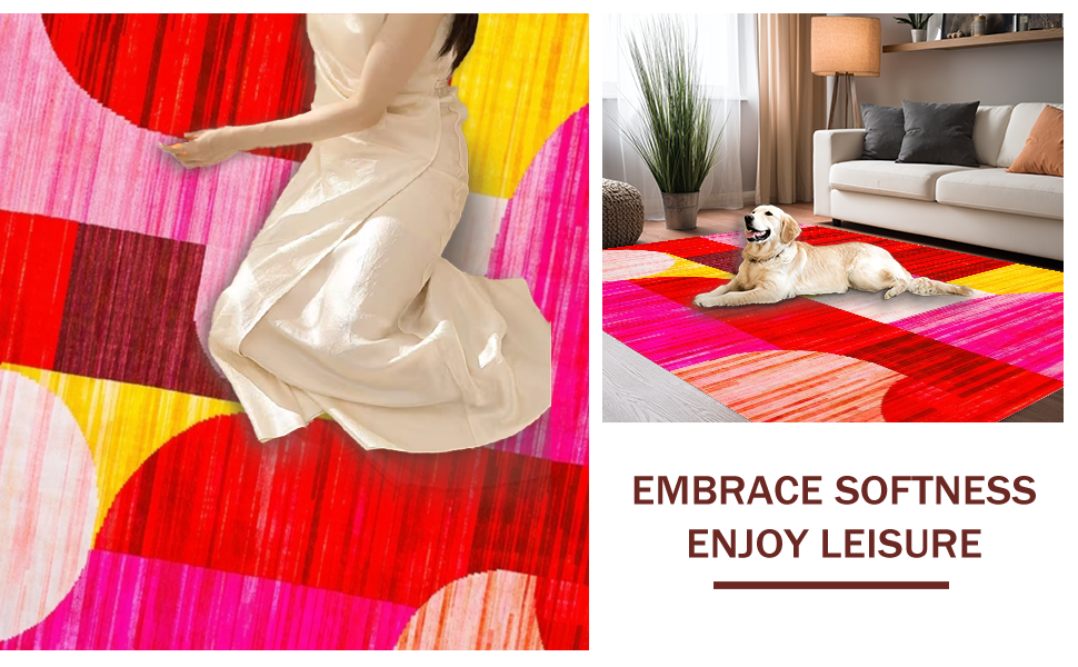Ultra Soft Area Rug, Non Slip, Stain Resistant, Washable Area Rugs for Living Room, Bedroom, Dynamic Artistic Multi-Tone Layout(Red) Overview: