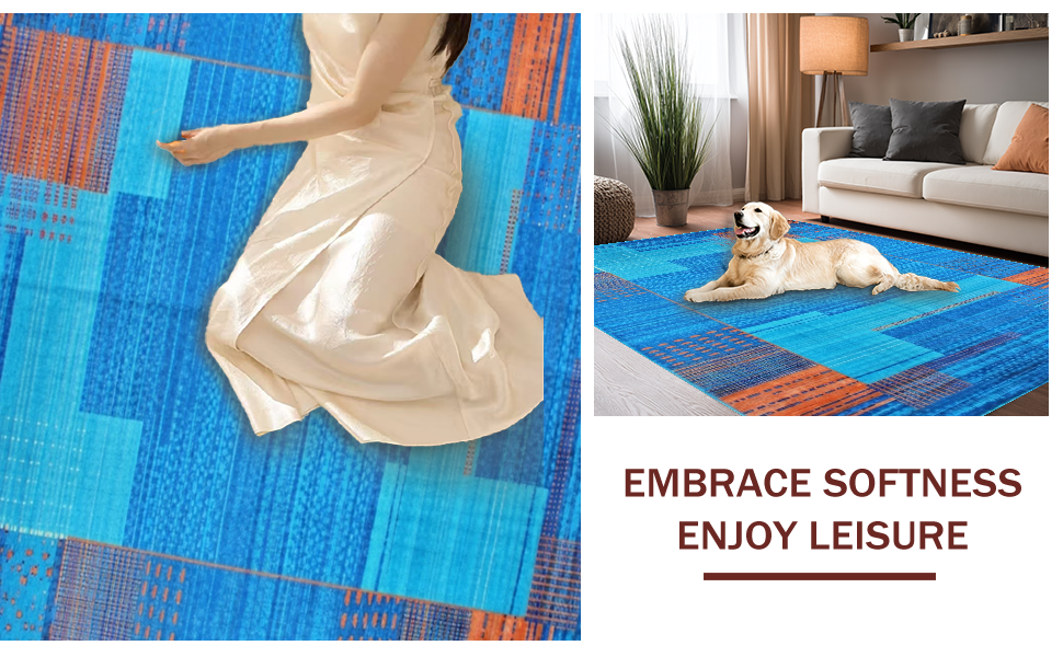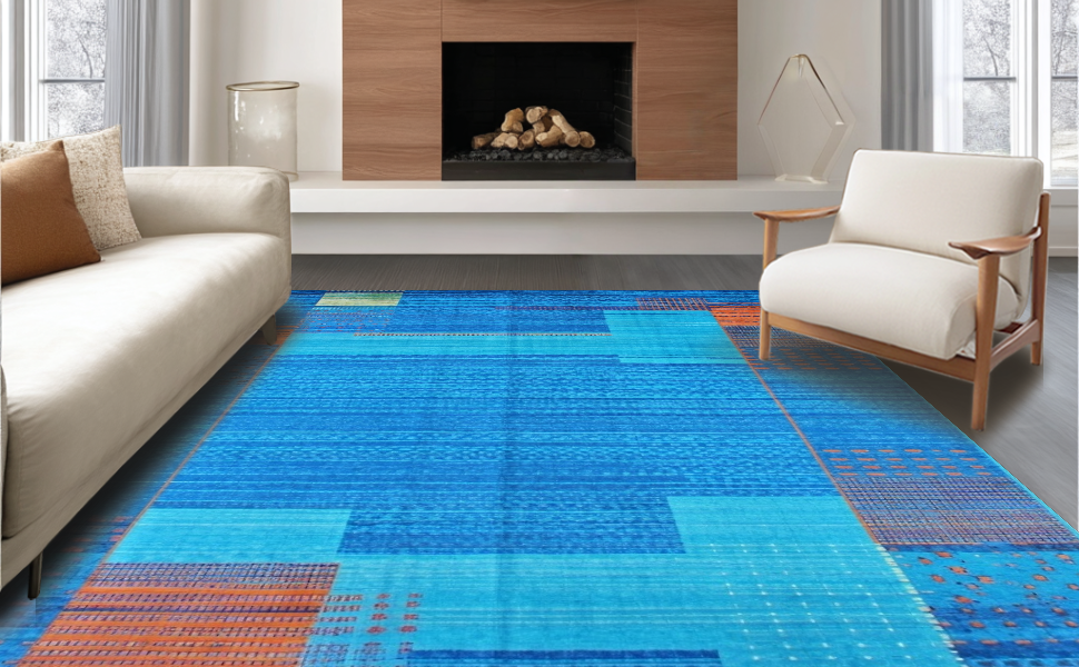 Ultra Soft Area Rug, Non Slip, Stain Resistant, Washable Area Rugs for Living Room, Bedroom, Dynamic Artistic Striped Visuals(Blue) Overview: