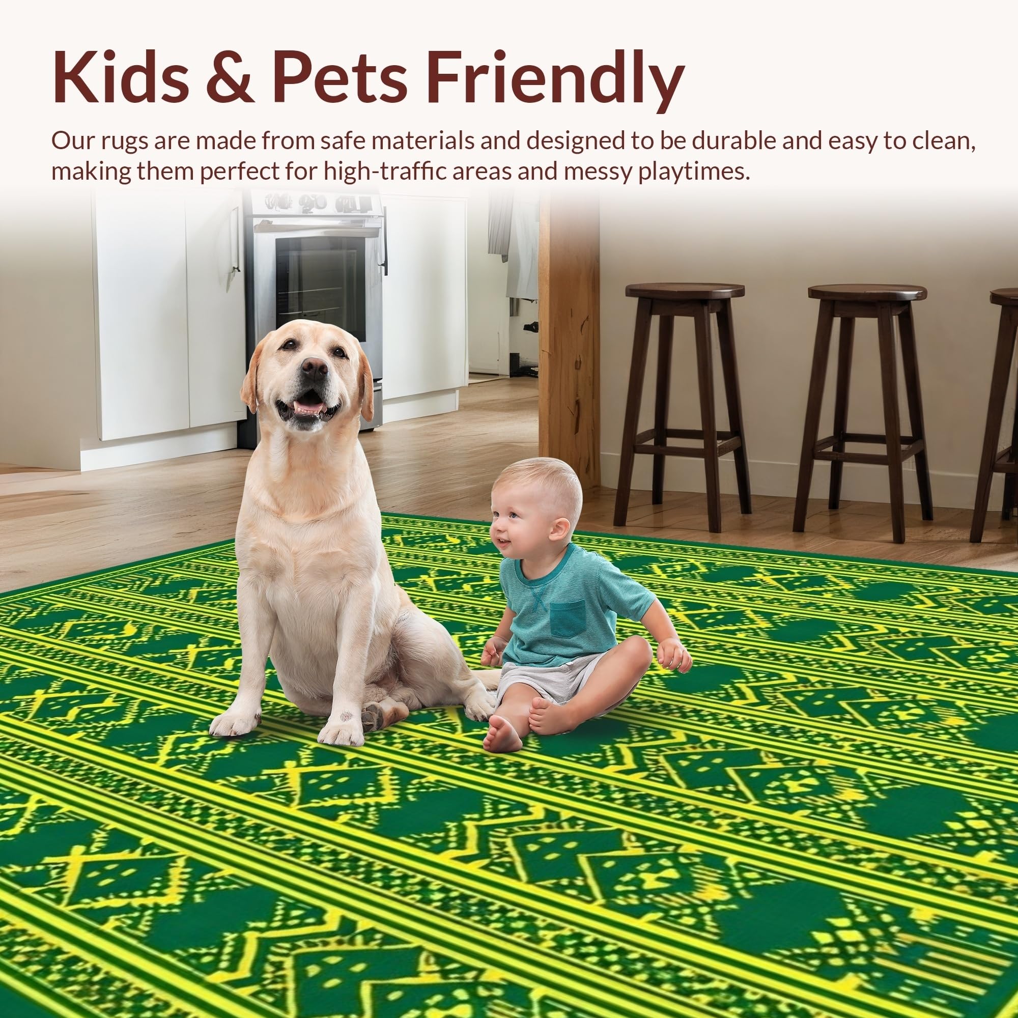 Ultra Soft Area Rug, Non Slip, Stain Resistant, Washable Area Rugs for Living Room, Bedroom, Dynamic Artistic Watercolor Effect(Green) Overview: