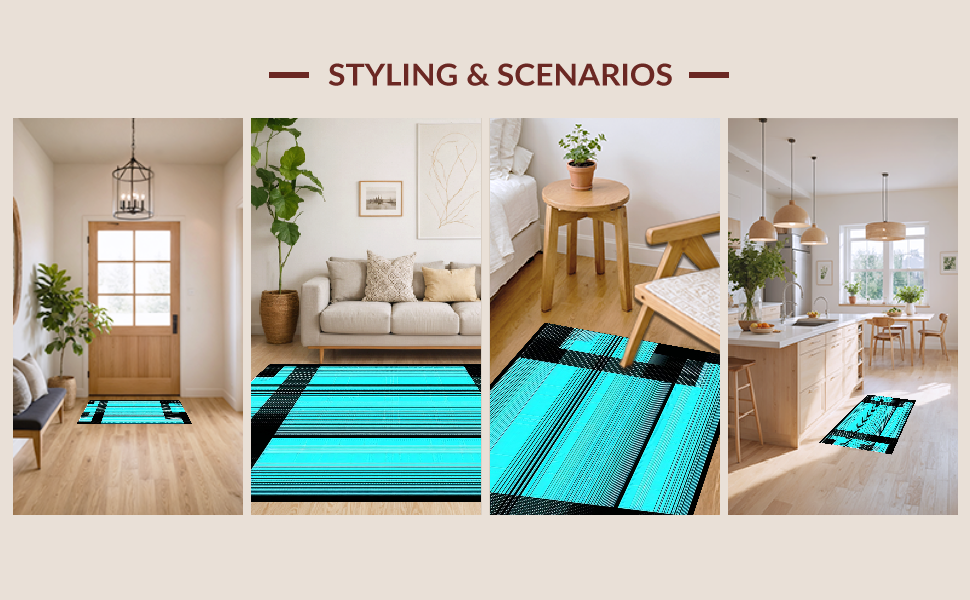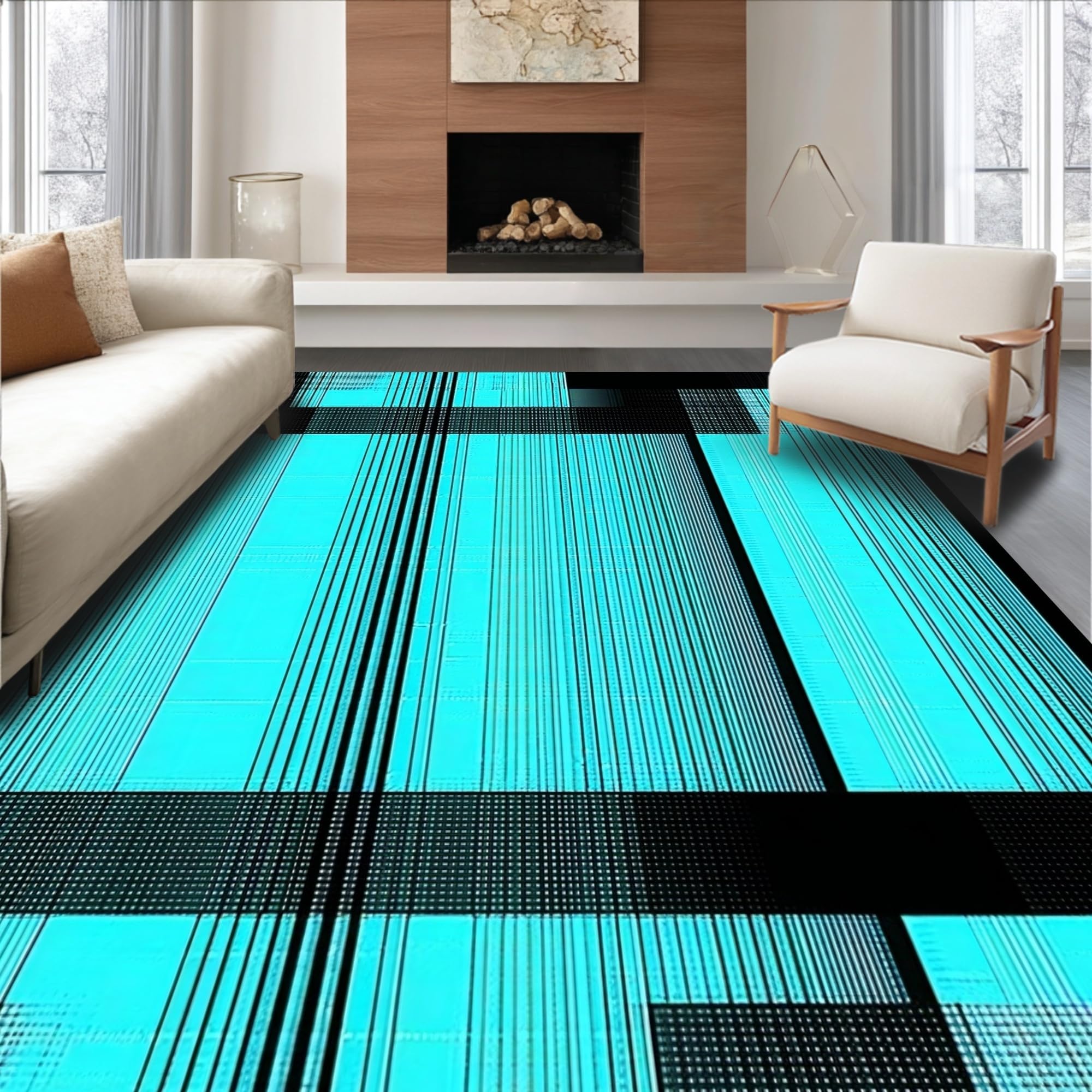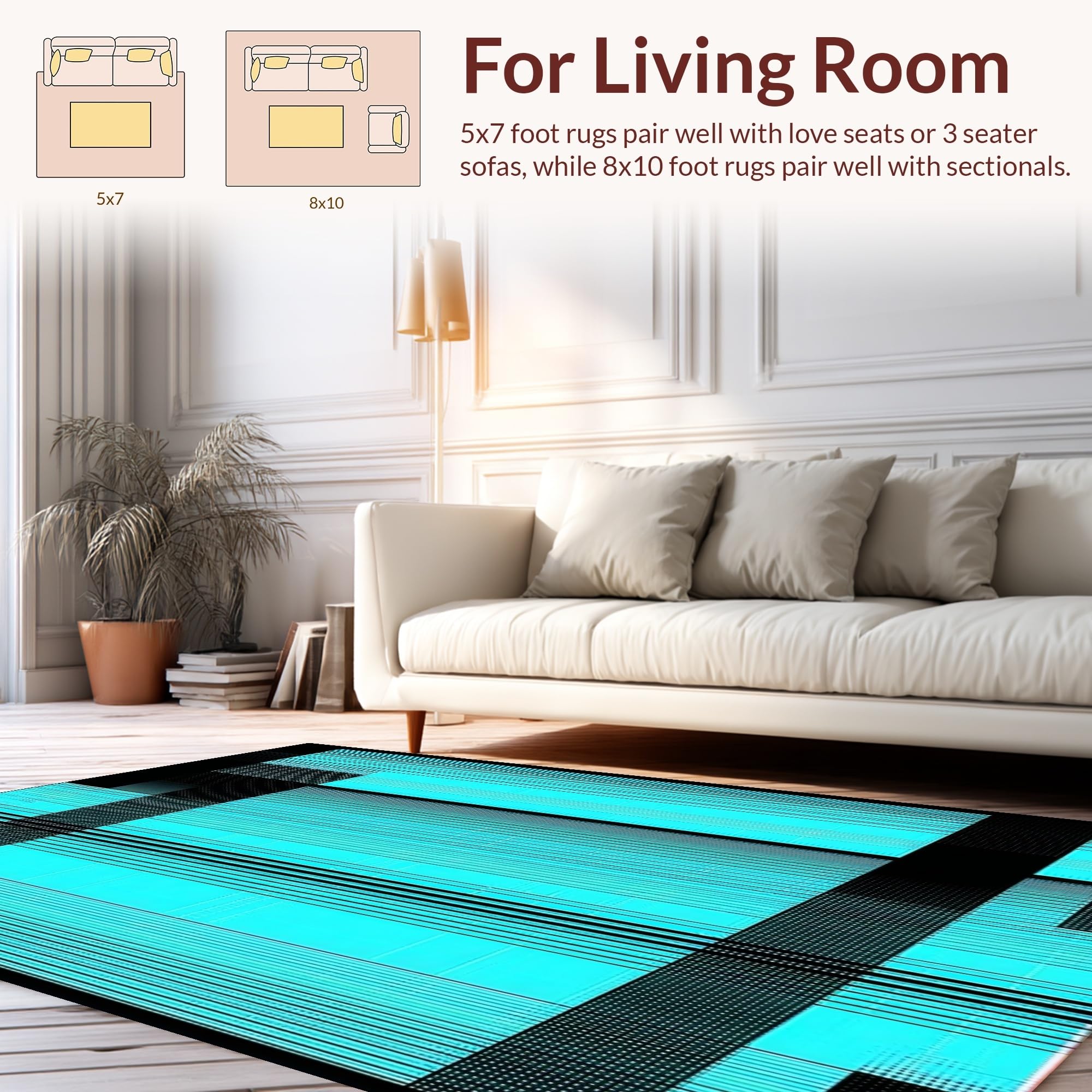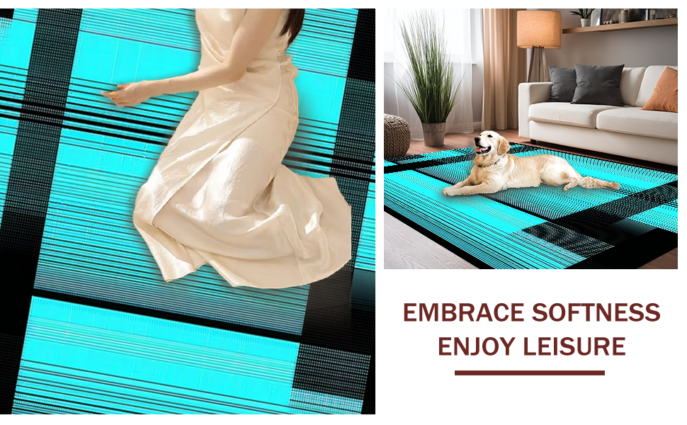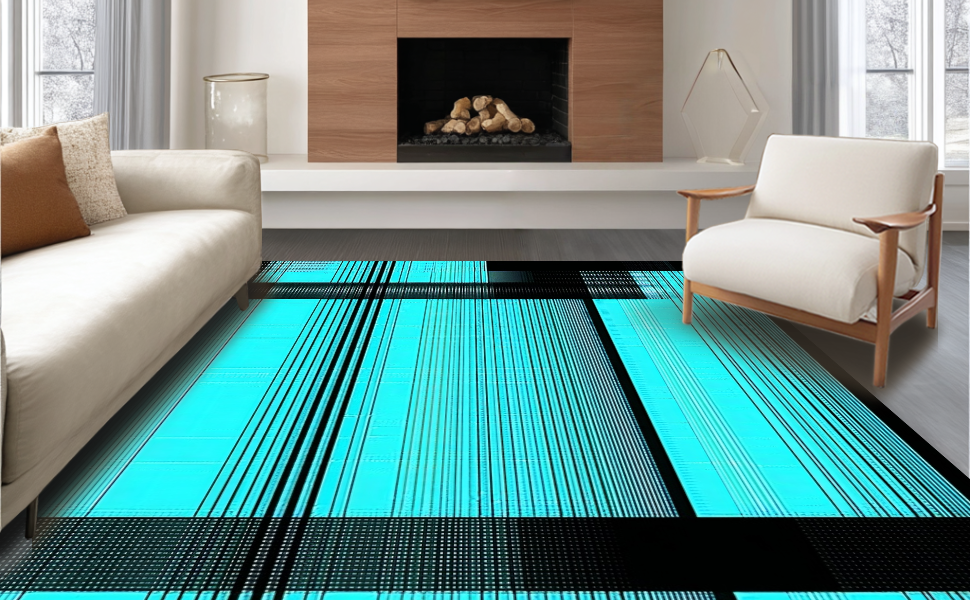 Ultra Soft Area Rug, Non Slip, Stain Resistant, Washable Area Rugs for Living Room, Bedroom, Dynamic Asymmetrical Design Style(Blue) Overview: