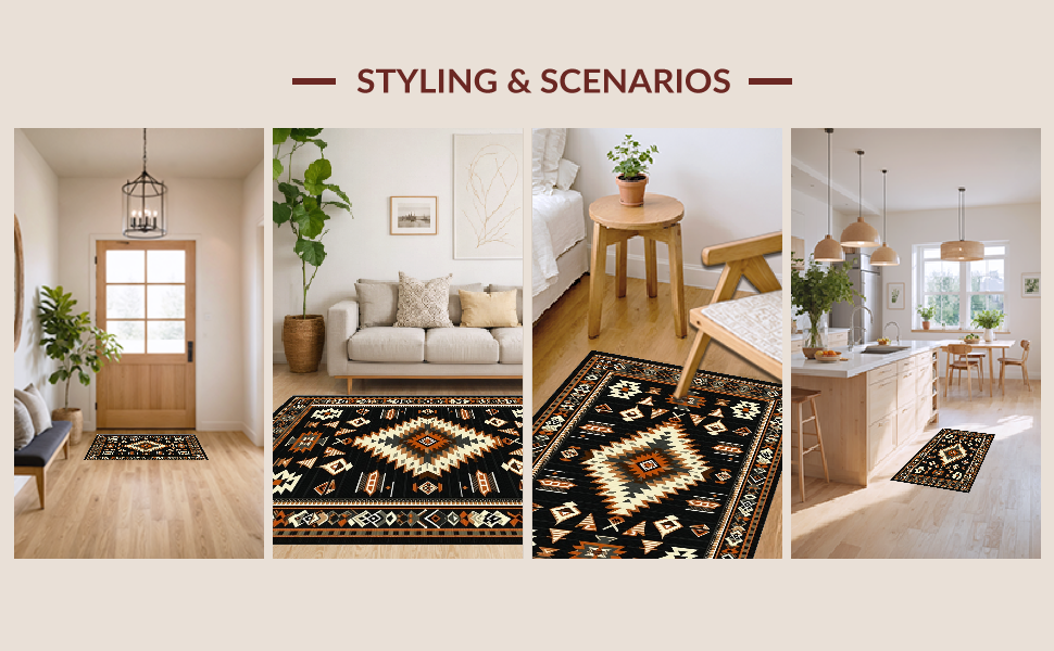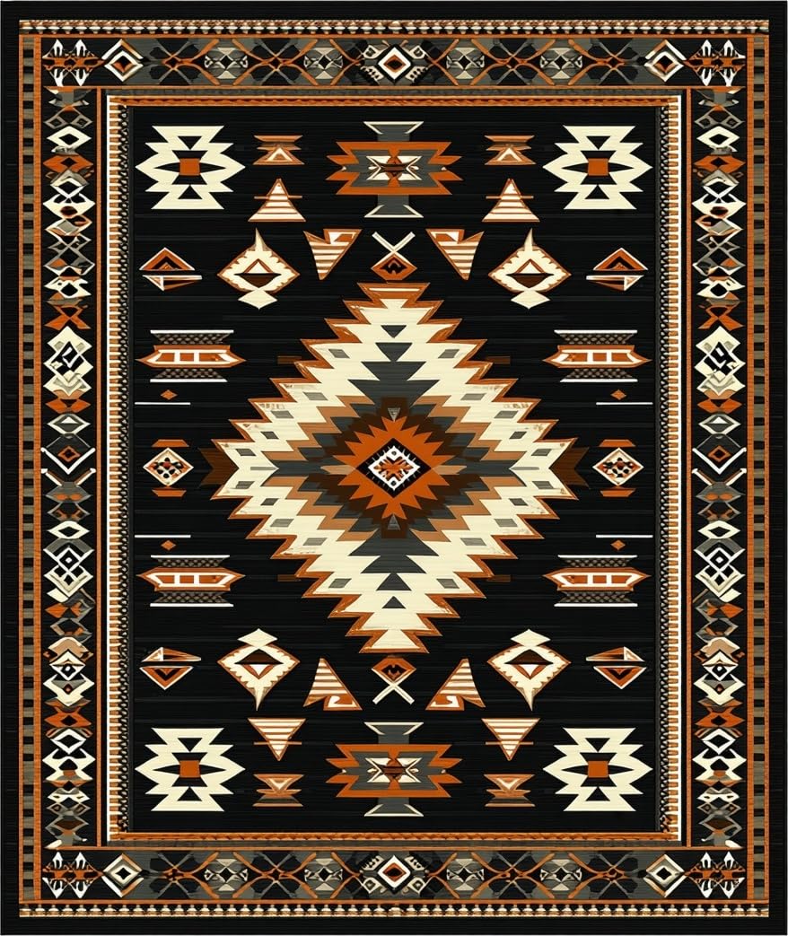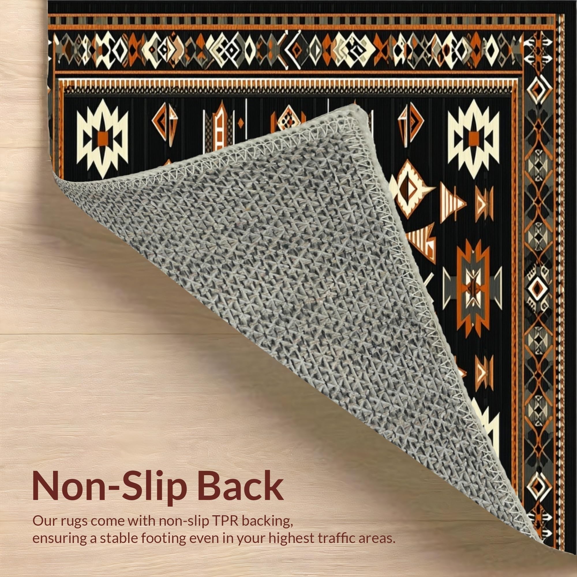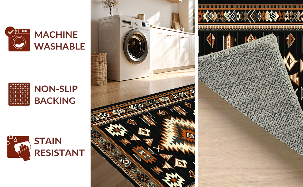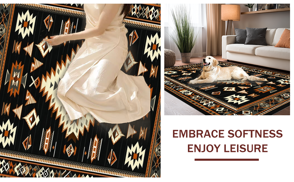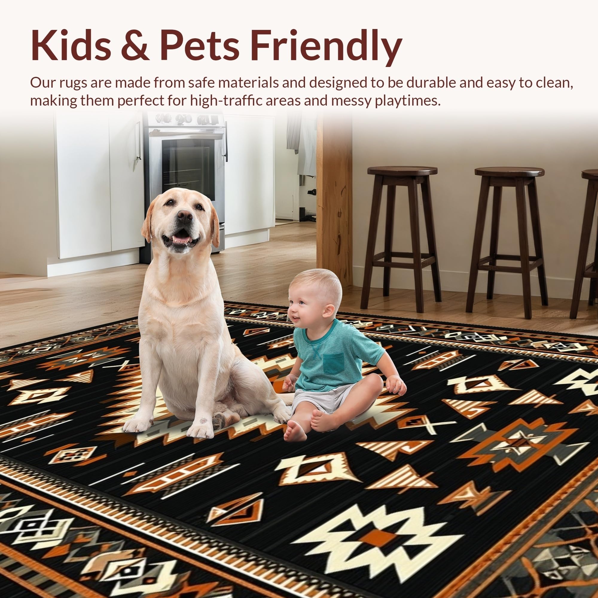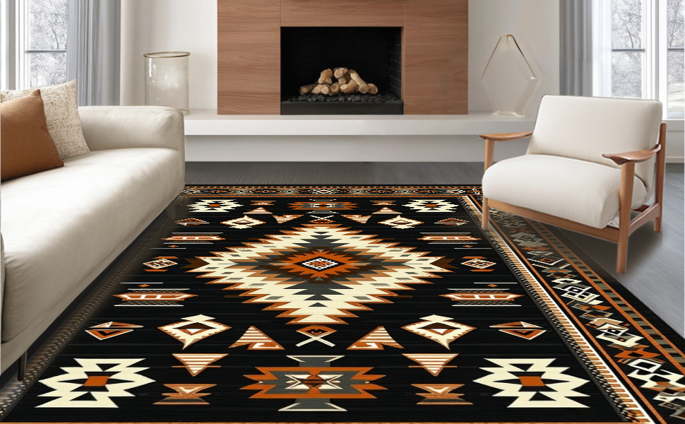 Ultra Soft Area Rug, Non Slip, Stain Resistant, Washable Area Rugs for Living Room, Bedroom, Dynamic Black and Brown Geometric Styles(Black) Overview: