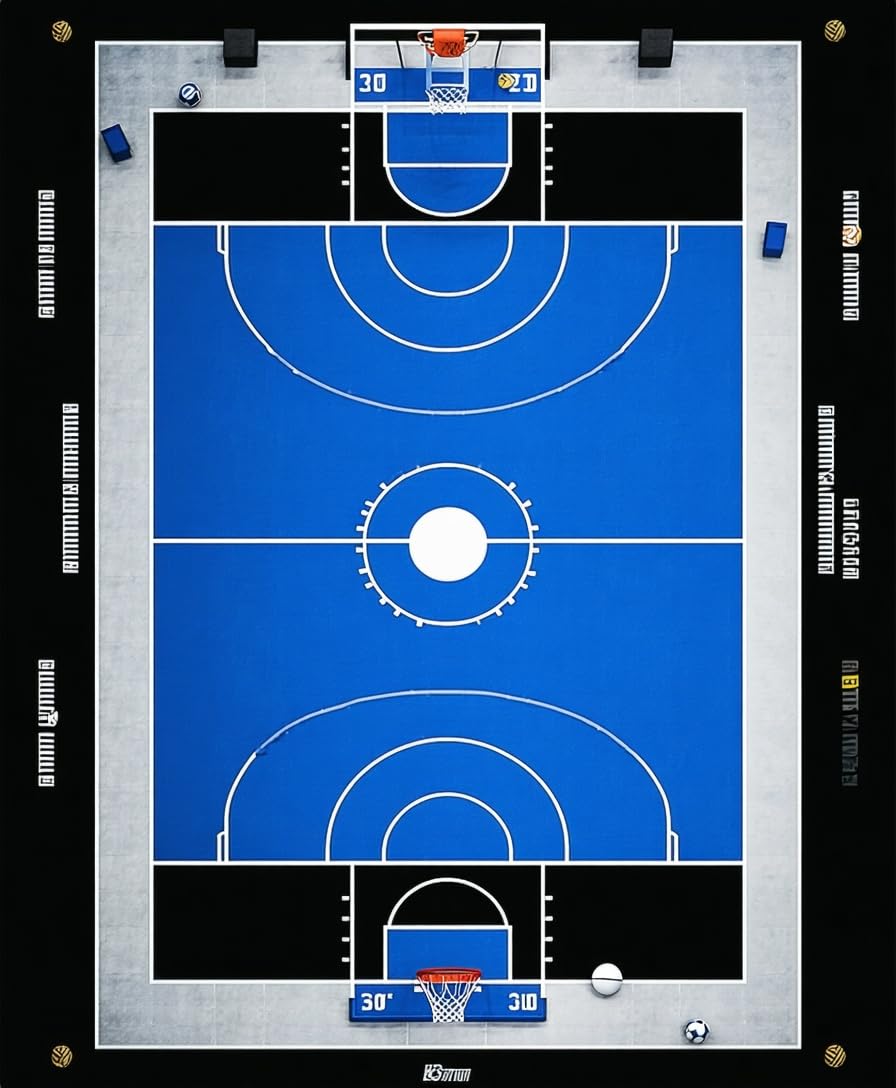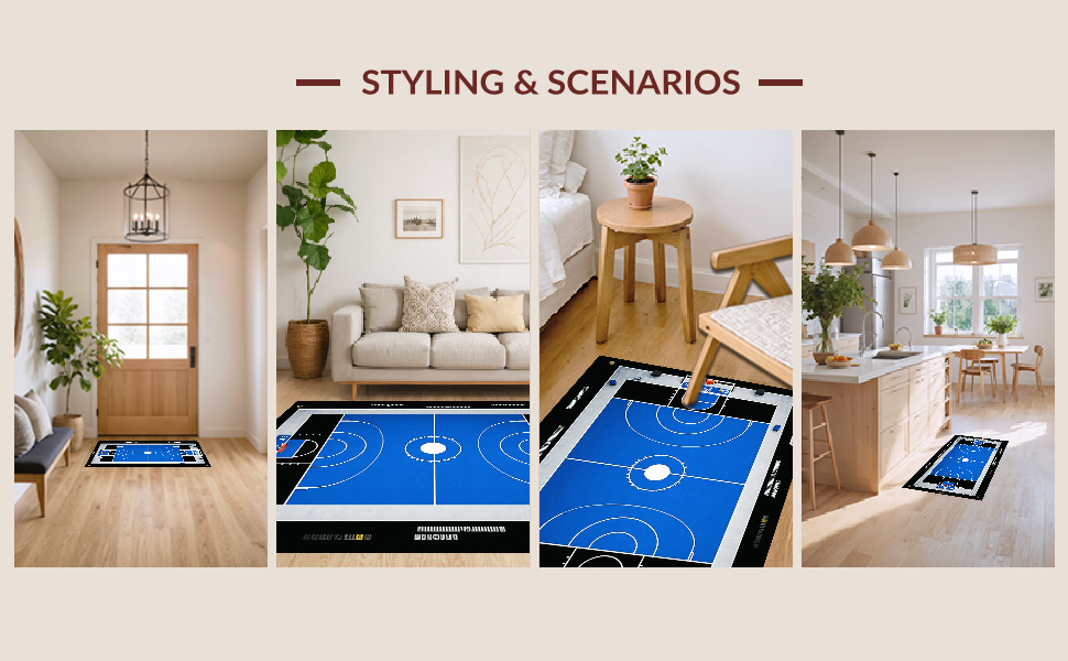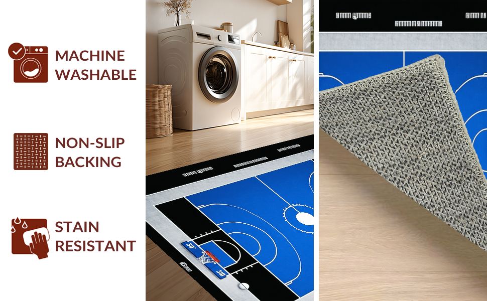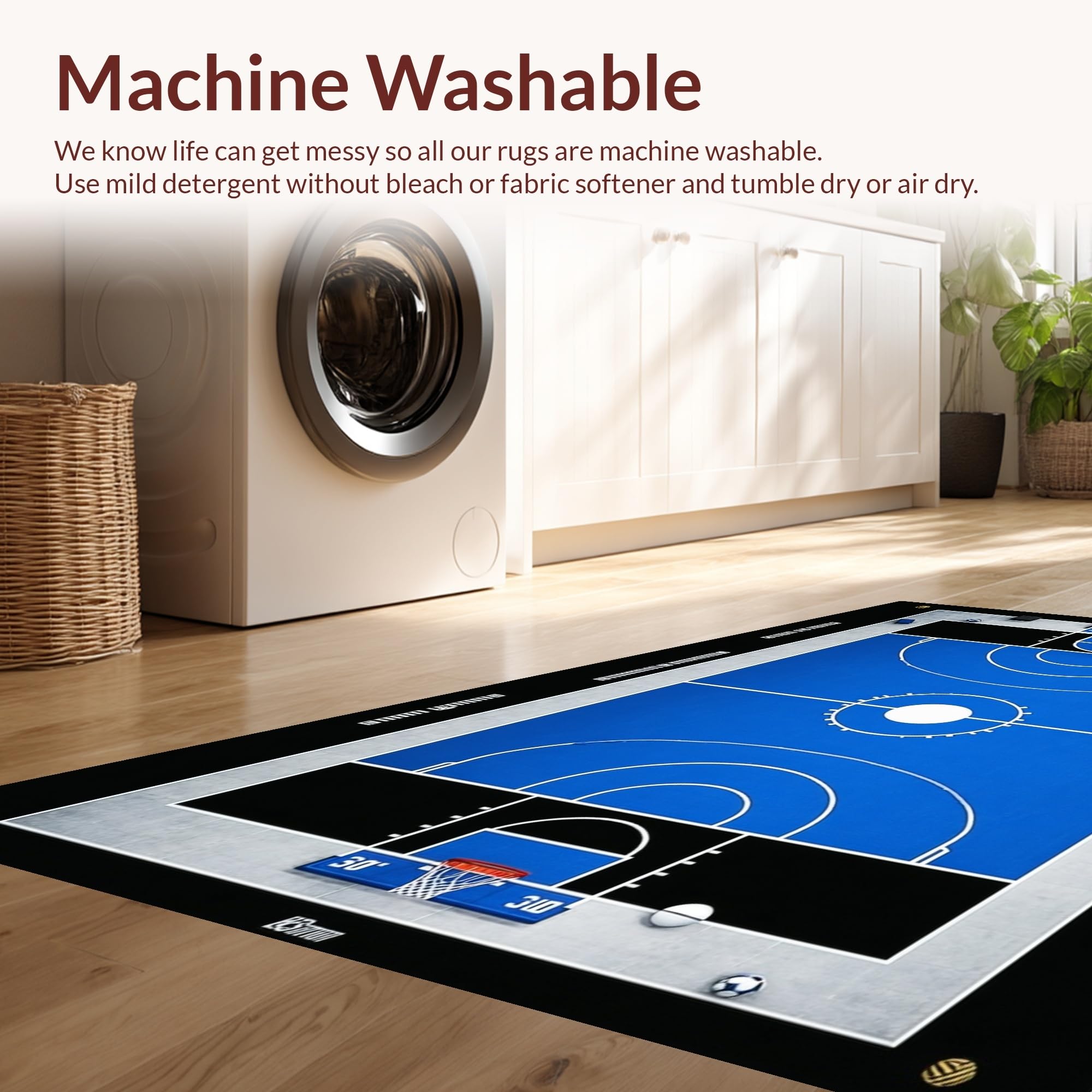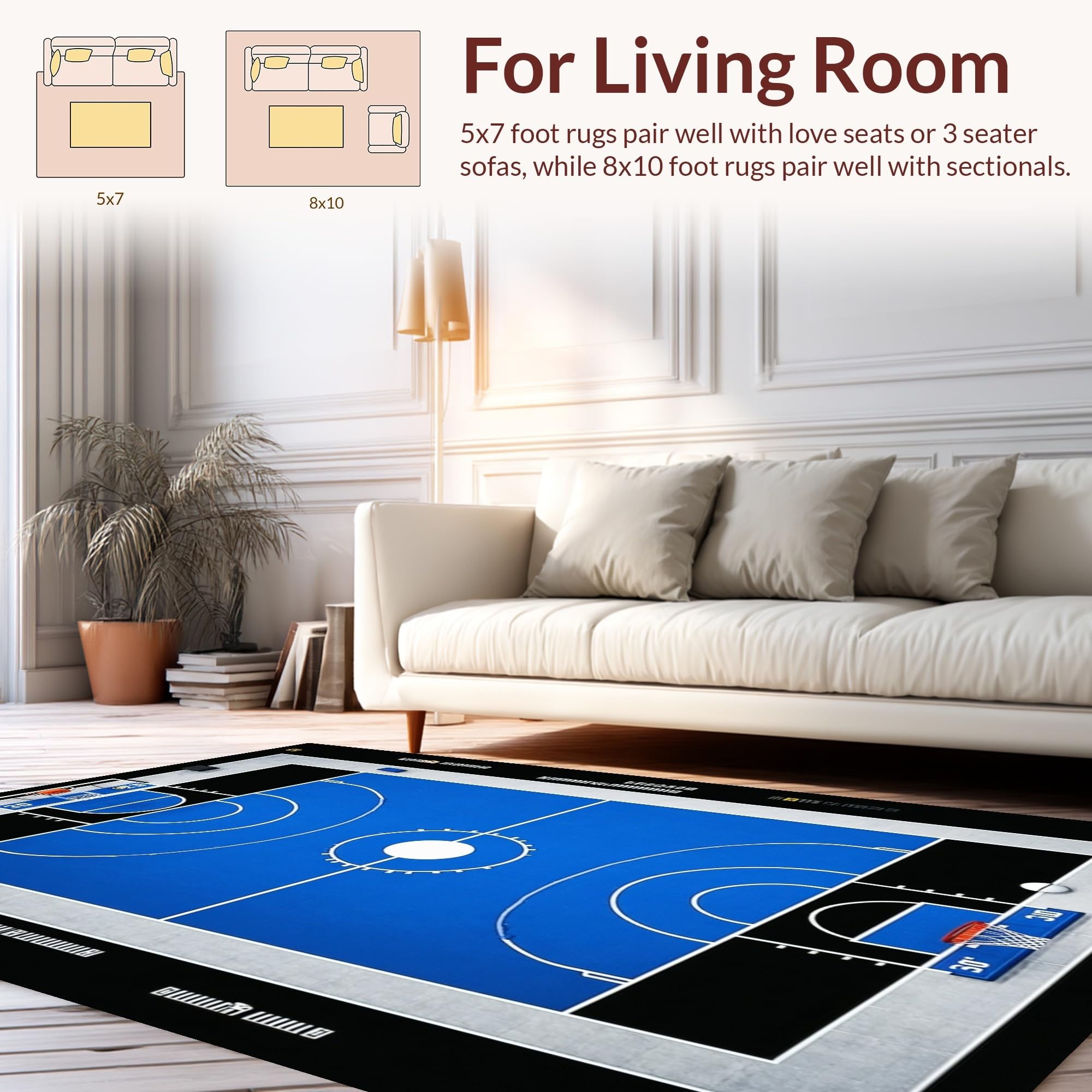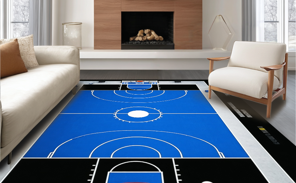 Ultra Soft Area Rug, Non Slip, Stain Resistant, Washable Area Rugs for Living Room, Bedroom, Dynamic Black and White Court Print(Blue) Overview: