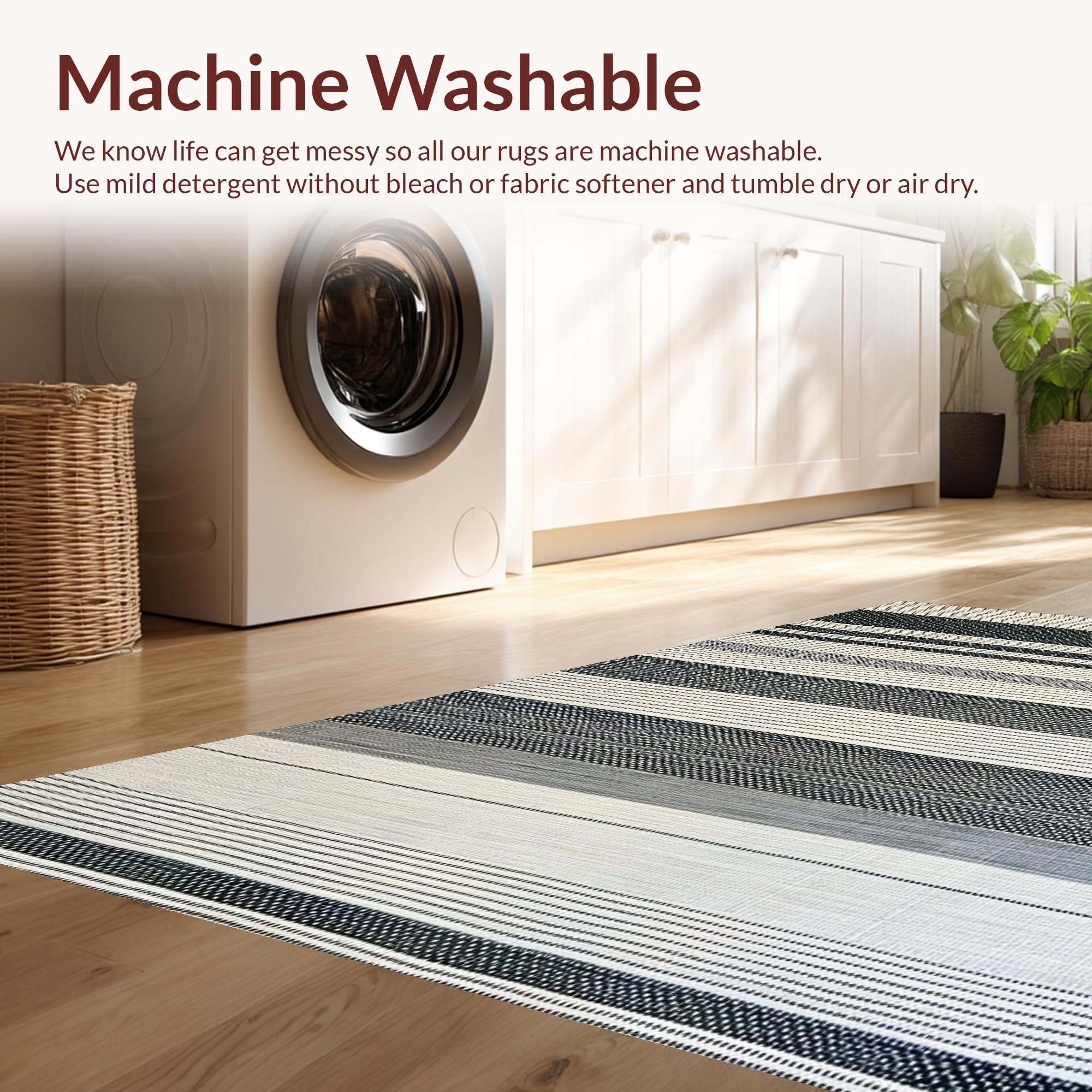 - Machine Washable: Our rugs can be easily thrown in the wash machine.