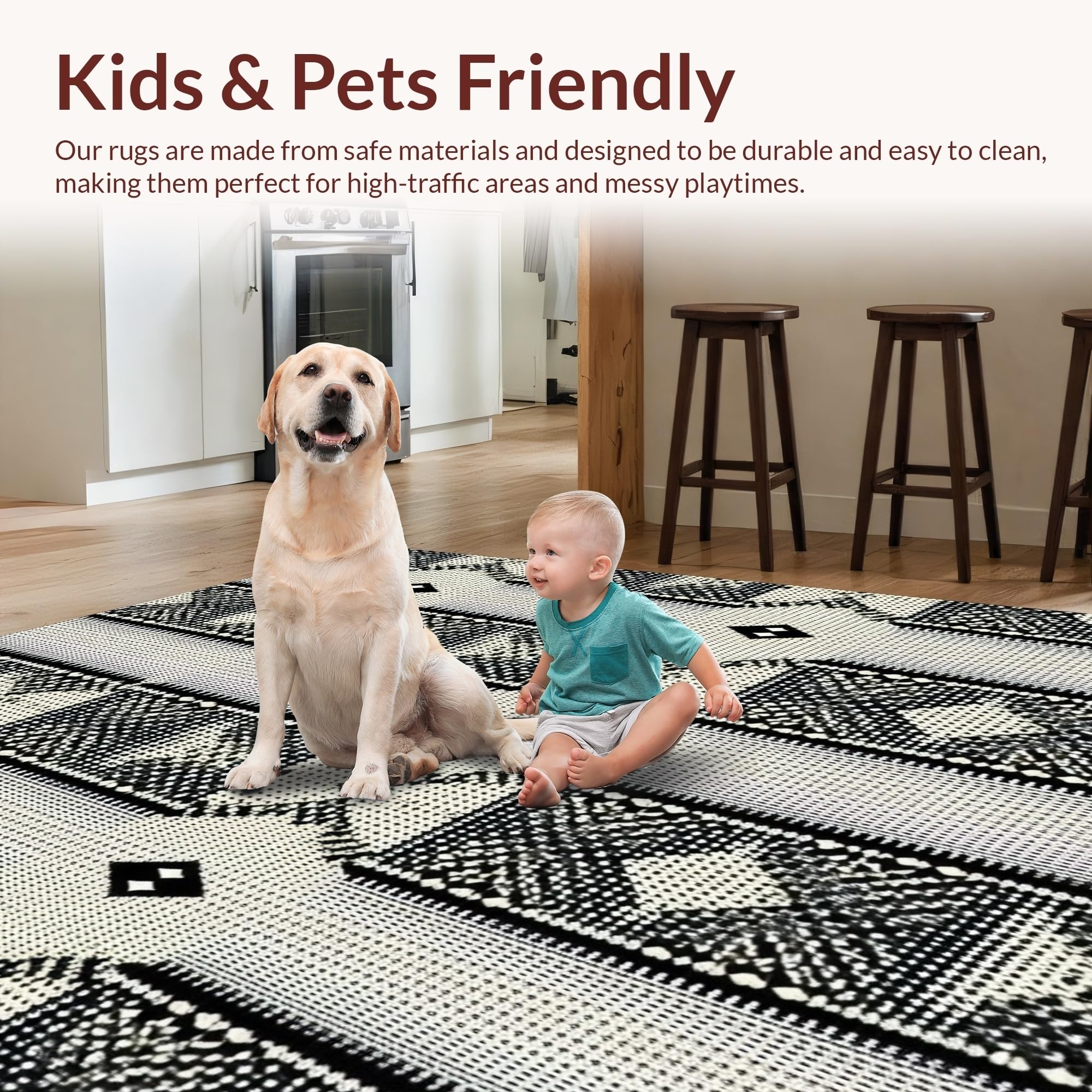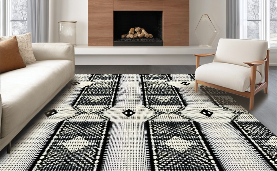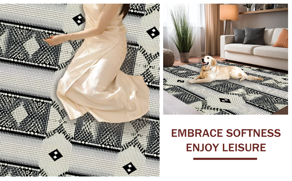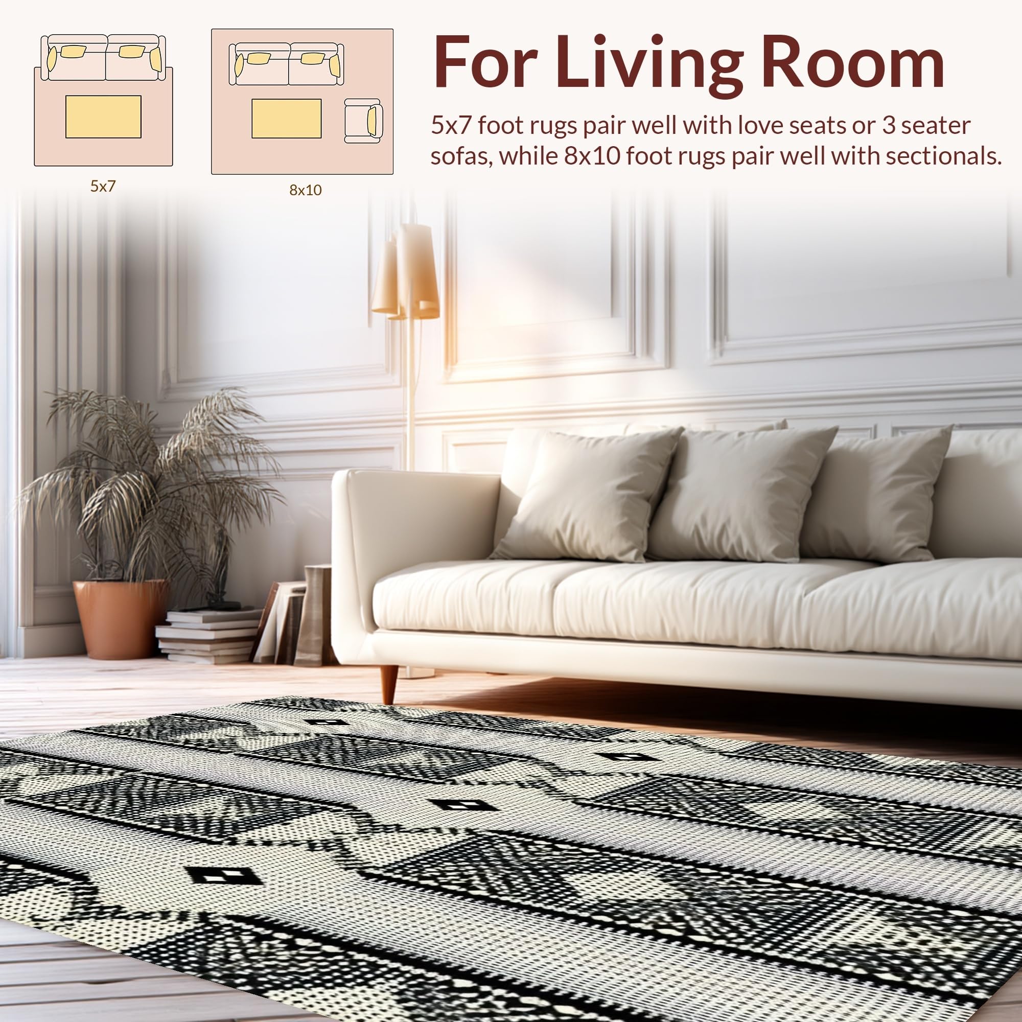Ultra Soft Area Rug, Non Slip, Stain Resistant, Washable Area Rugs for Living Room, Bedroom, Dynamic Black and White Visual Appeal(Black) Overview: