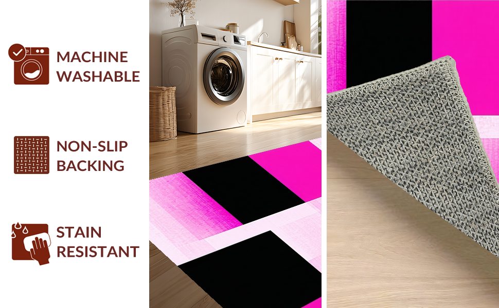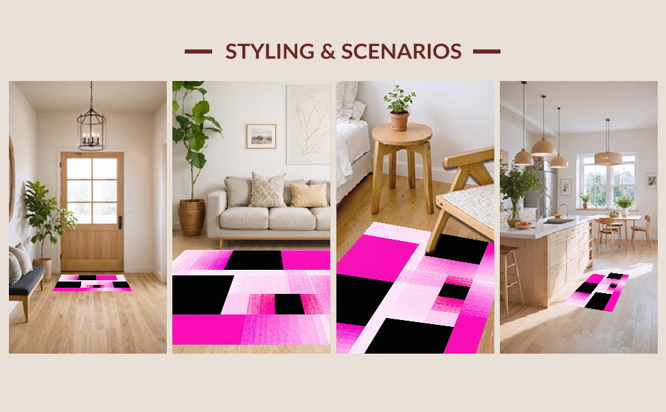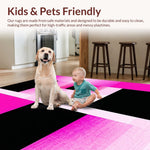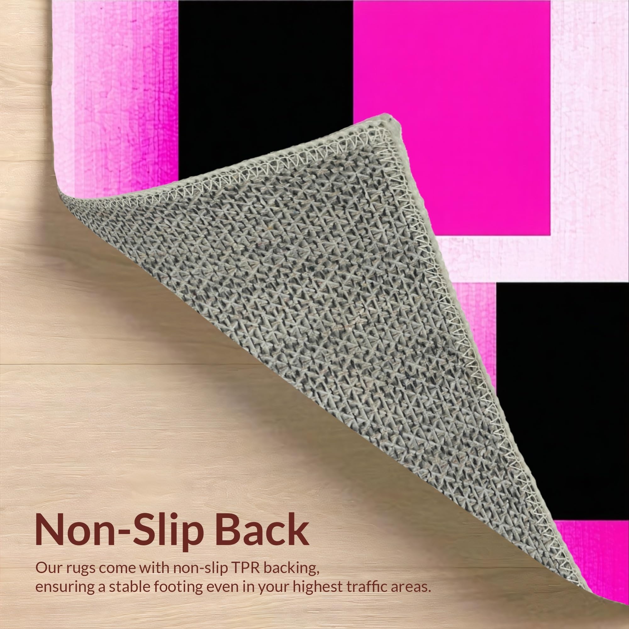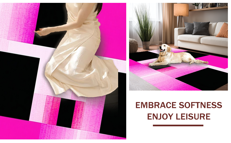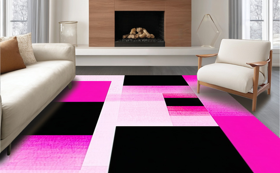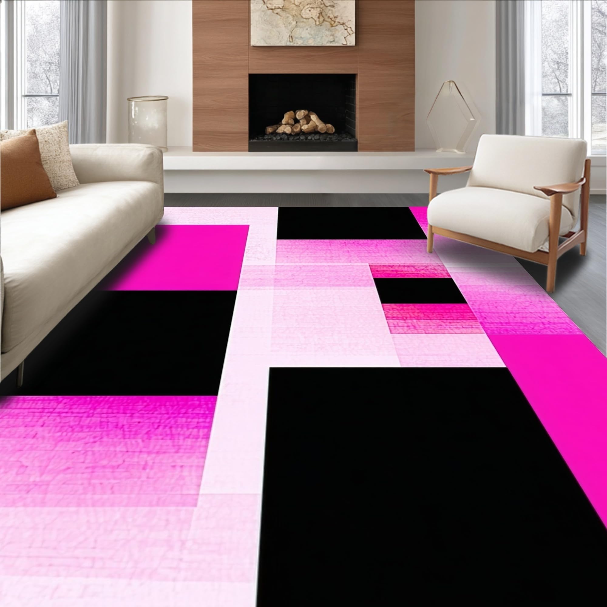 Ultra Soft Area Rug, Non Slip, Stain Resistant, Washable Area Rugs for Living Room, Bedroom, Dynamic Block Color Palette(Pink) Overview:
