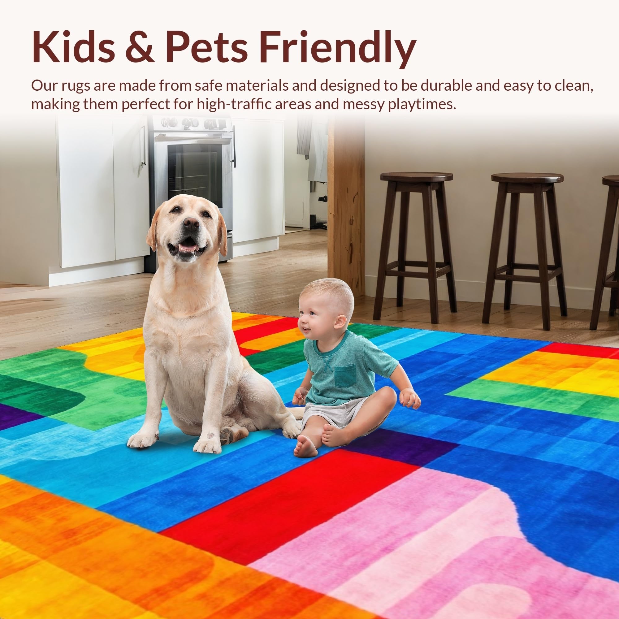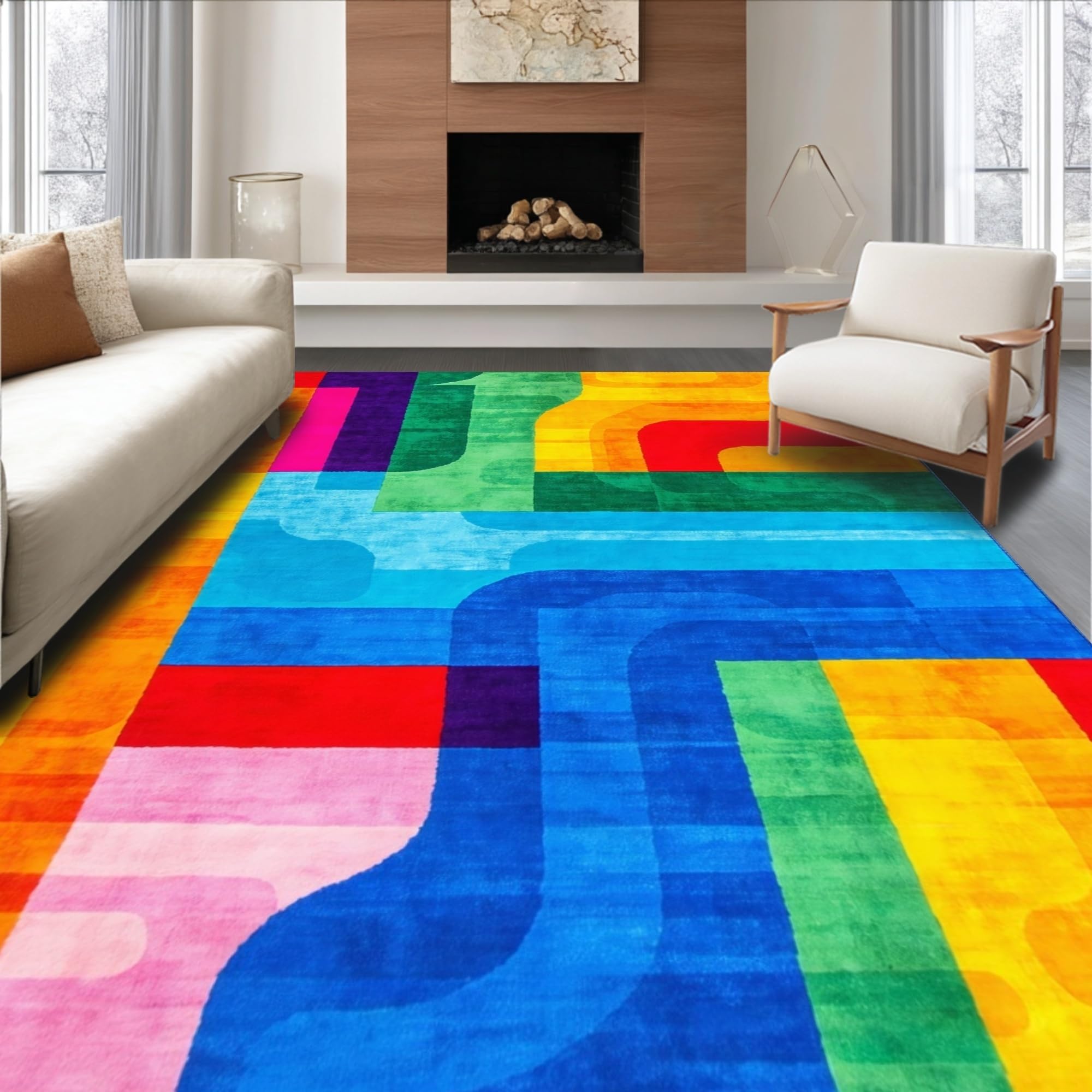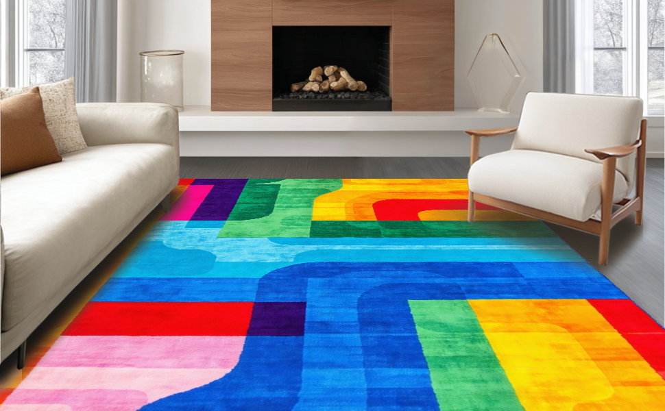 Ultra Soft Area Rug, Non Slip, Stain Resistant, Washable Area Rugs for Living Room, Bedroom, Dynamic Bold Lettering Composition(Blue) Overview: