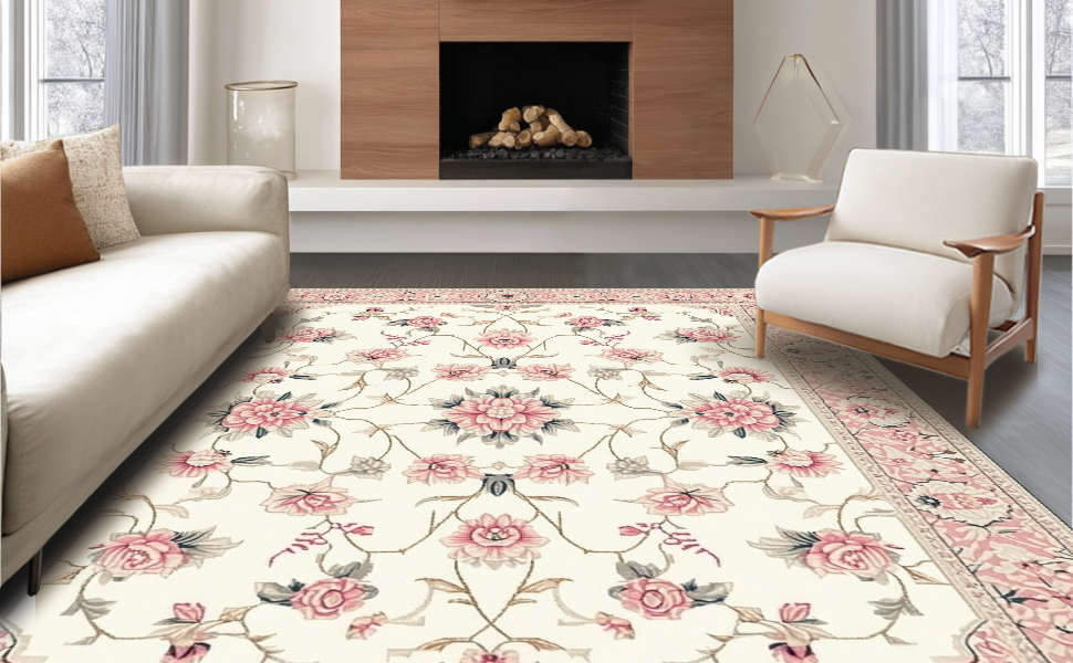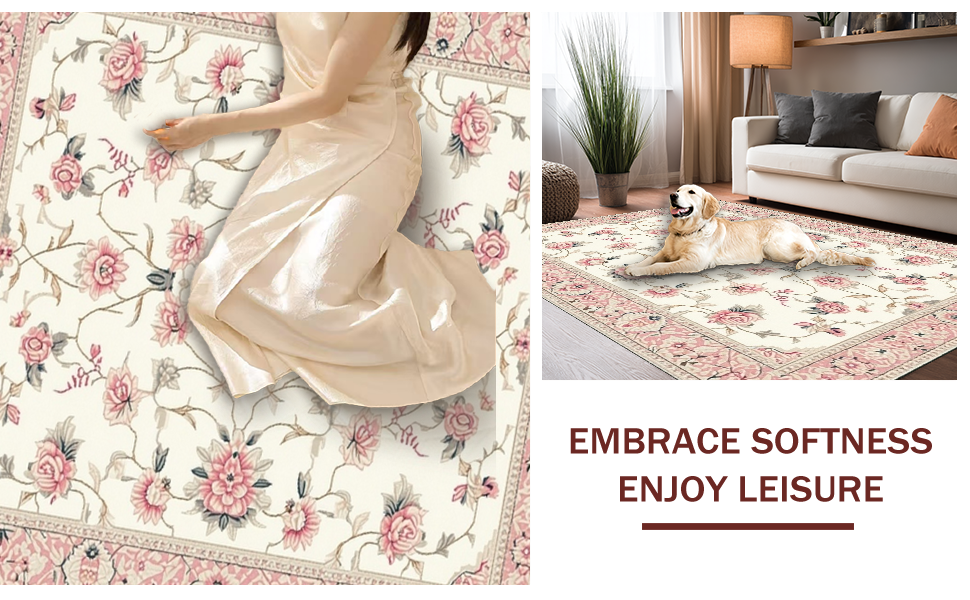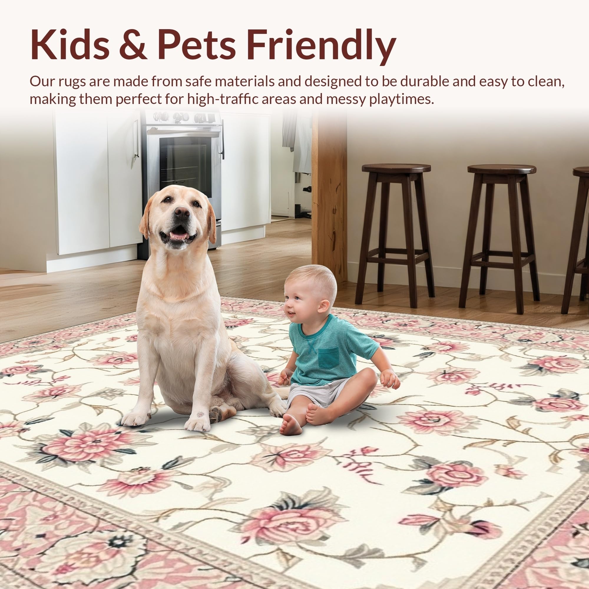 Ultra Soft Area Rug, Non Slip, Stain Resistant, Washable Area Rugs for Living Room, Bedroom, Dynamic Bright Floral Geometry(Ivory) Overview: