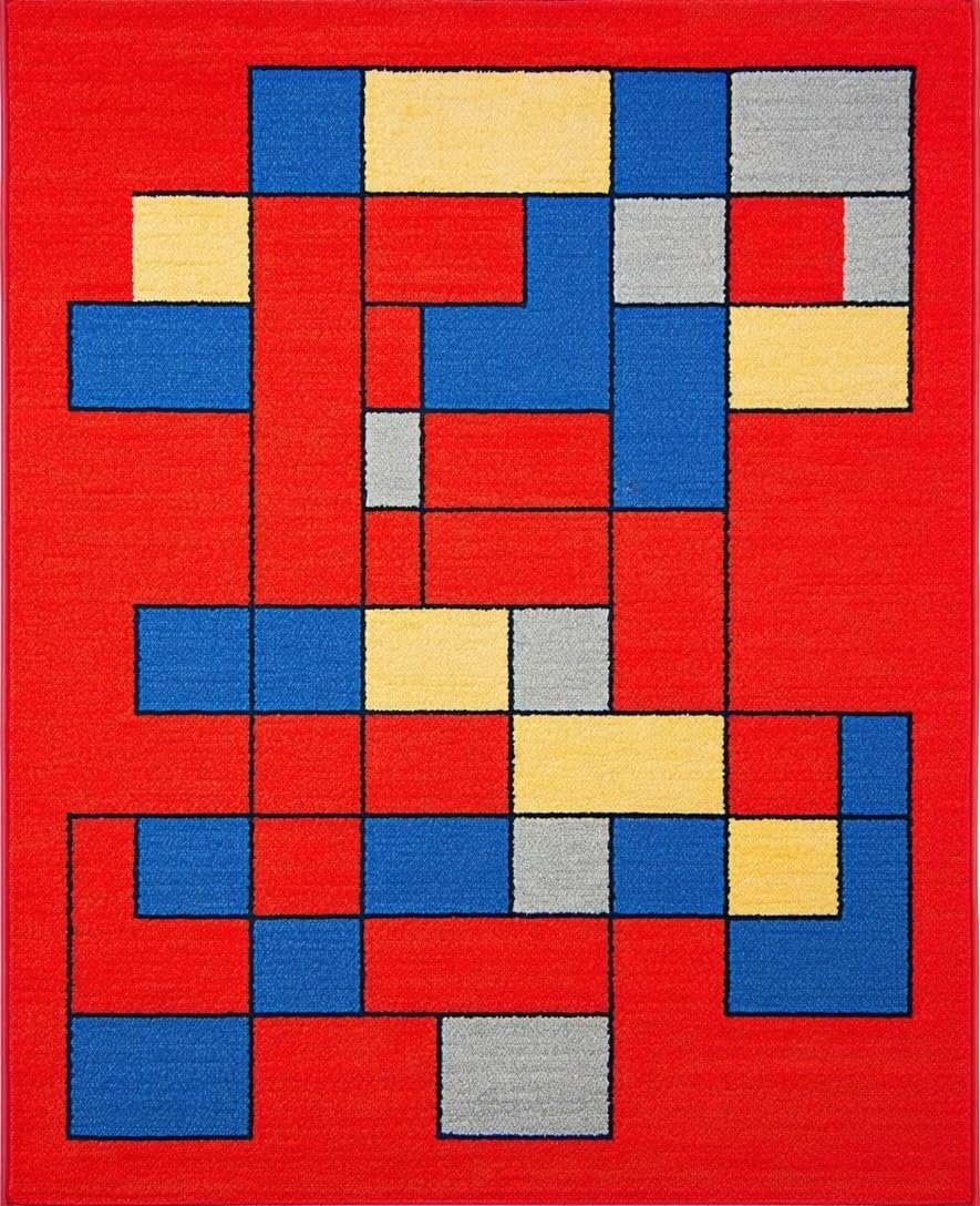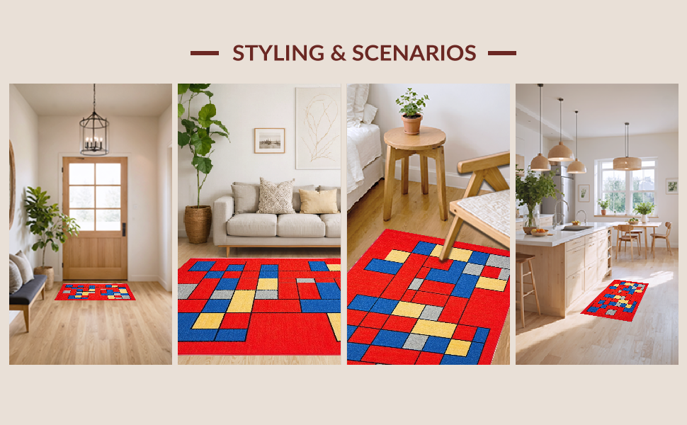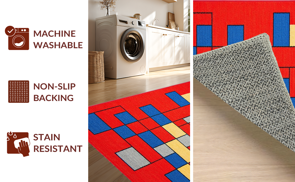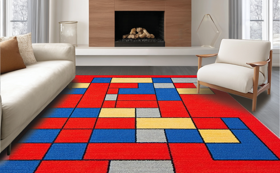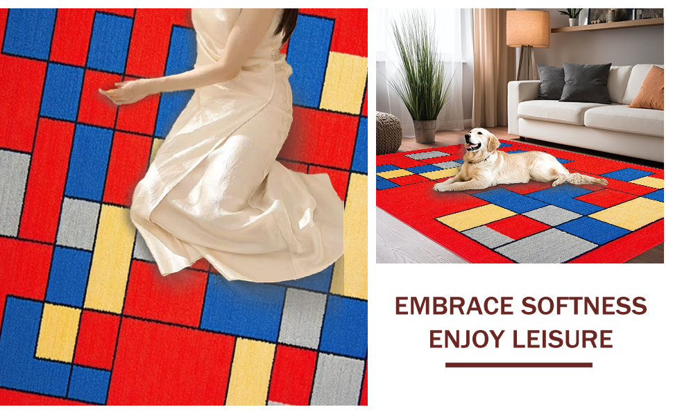 Ultra Soft Area Rug, Non Slip, Stain Resistant, Washable Area Rugs for Living Room, Bedroom, Dynamic Child-Friendly Geometric Display(Red) Overview: