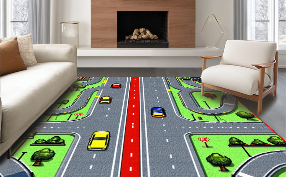 Ultra Soft Area Rug, Non Slip, Stain Resistant, Washable Area Rugs for Living Room, Bedroom, Dynamic City Life Exploration Mat(Gray) Overview: