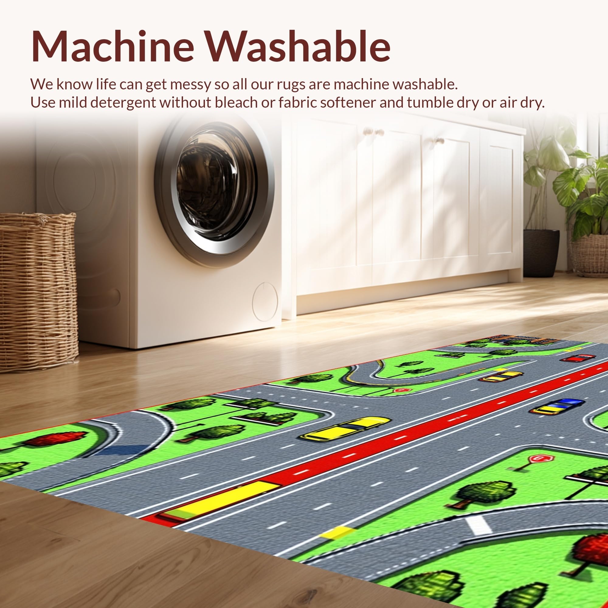 - Machine Washable: Our rugs can be easily thrown in the wash machine.