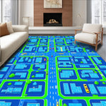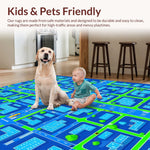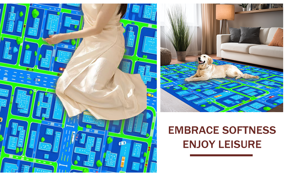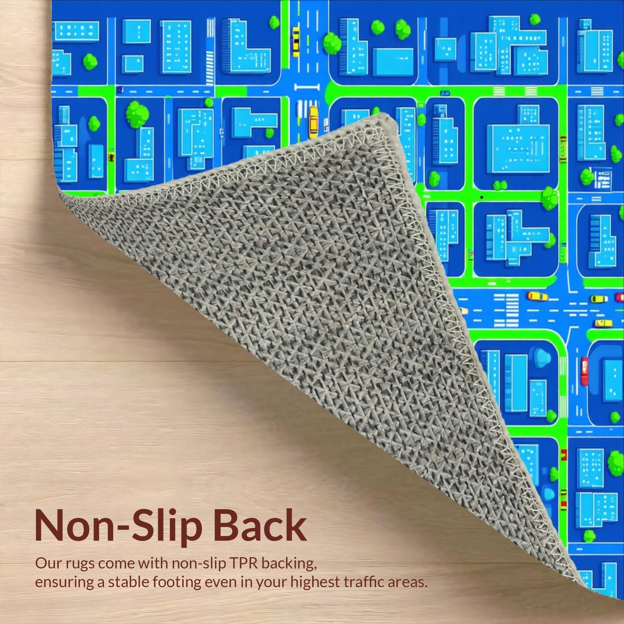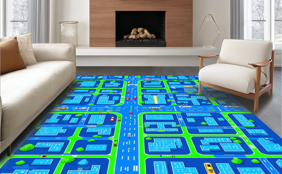 Ultra Soft Area Rug, Non Slip, Stain Resistant, Washable Area Rugs for Living Room, Bedroom, Dynamic Cityscape Exploration Theme(Blue) Overview: