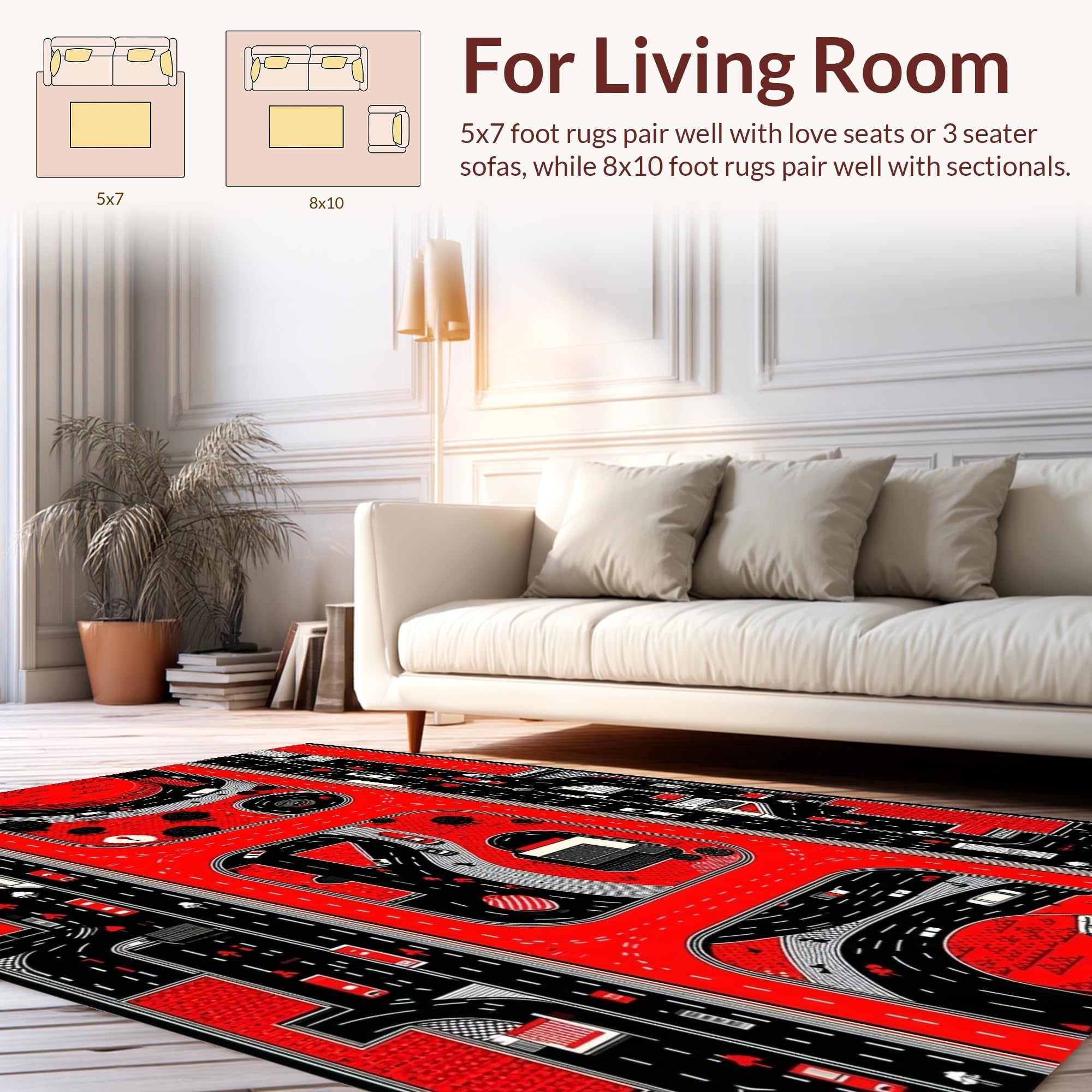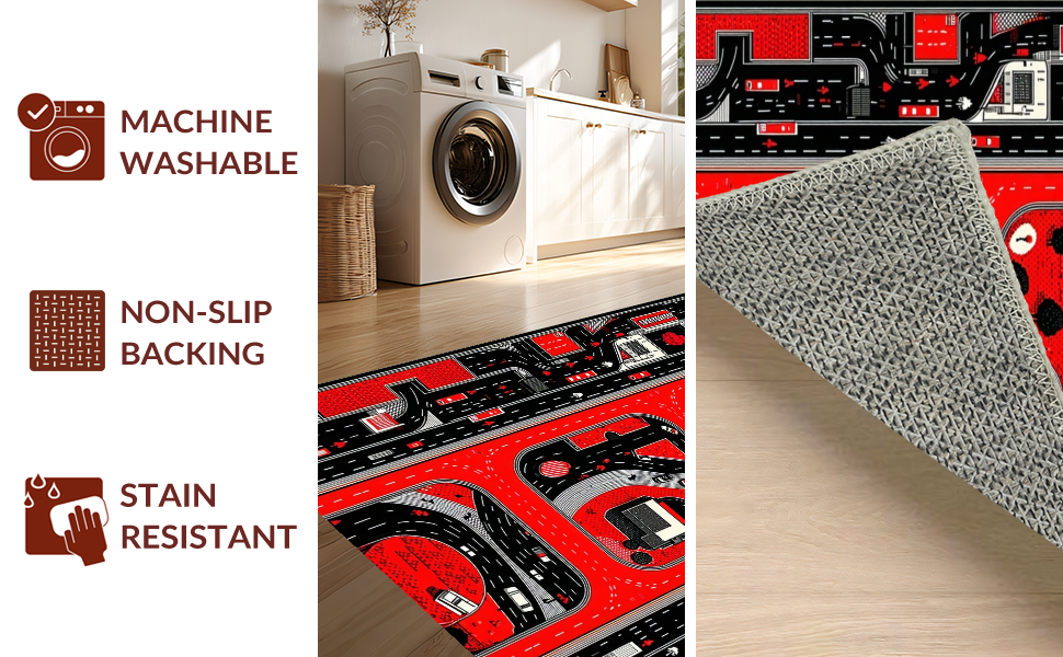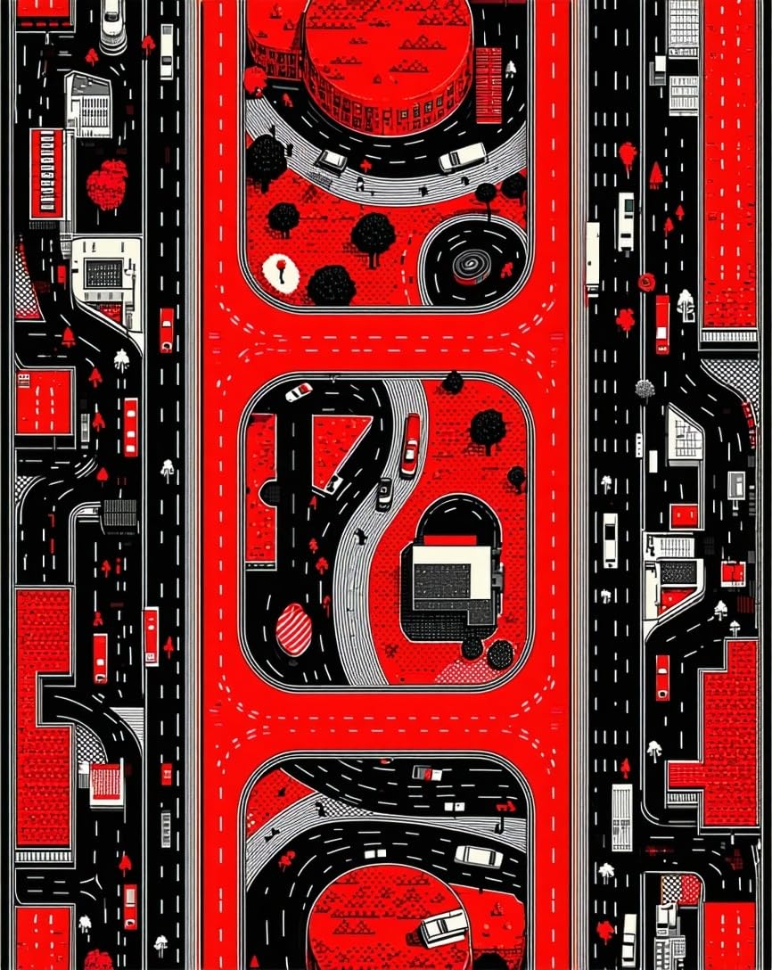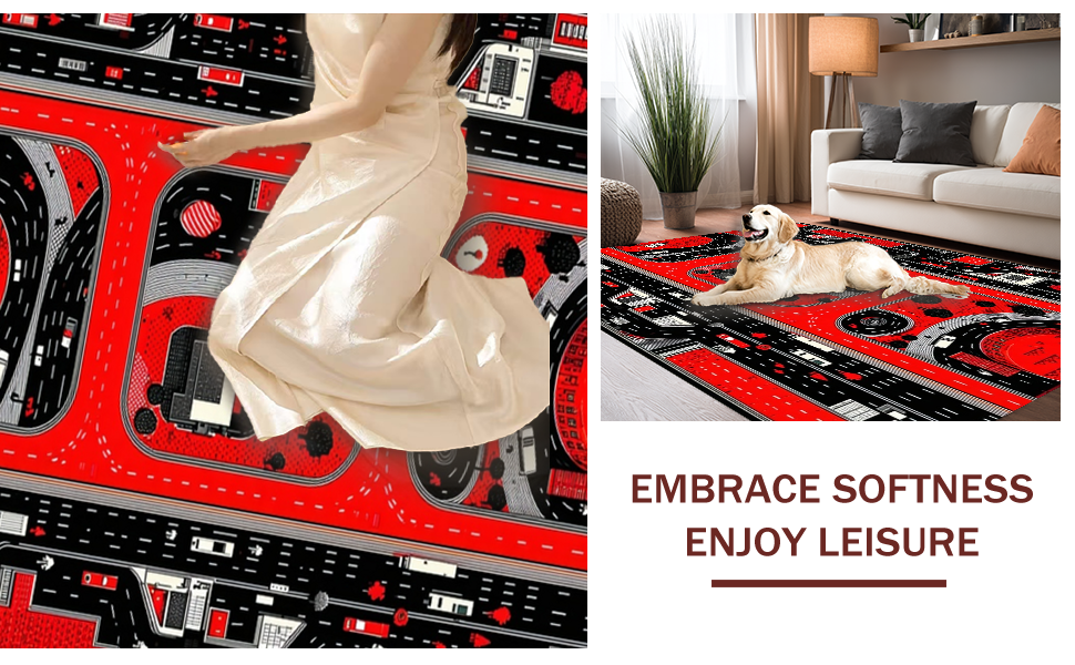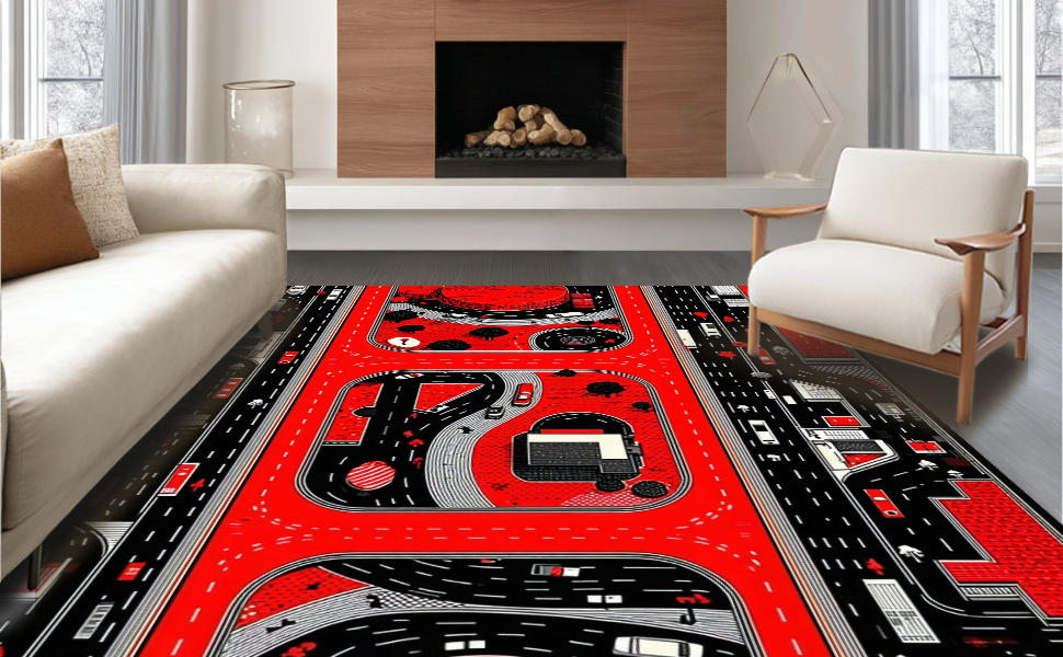 Ultra Soft Area Rug, Non Slip, Stain Resistant, Washable Area Rugs for Living Room, Bedroom, Dynamic Cityscape Road Layout(Red) Overview: