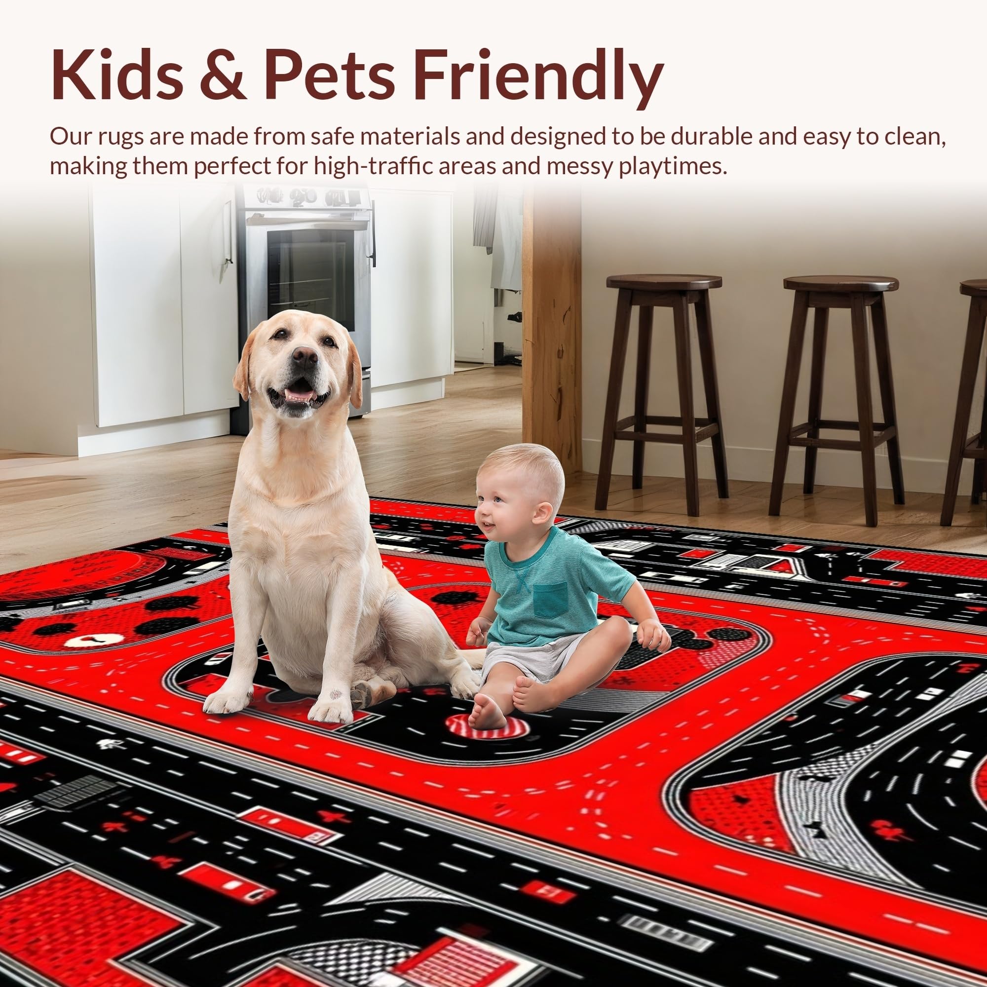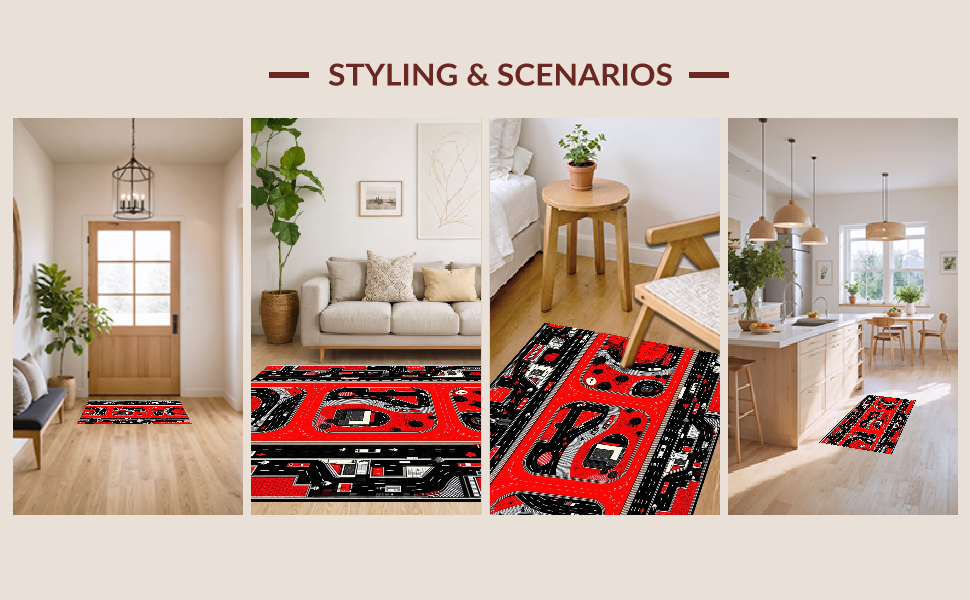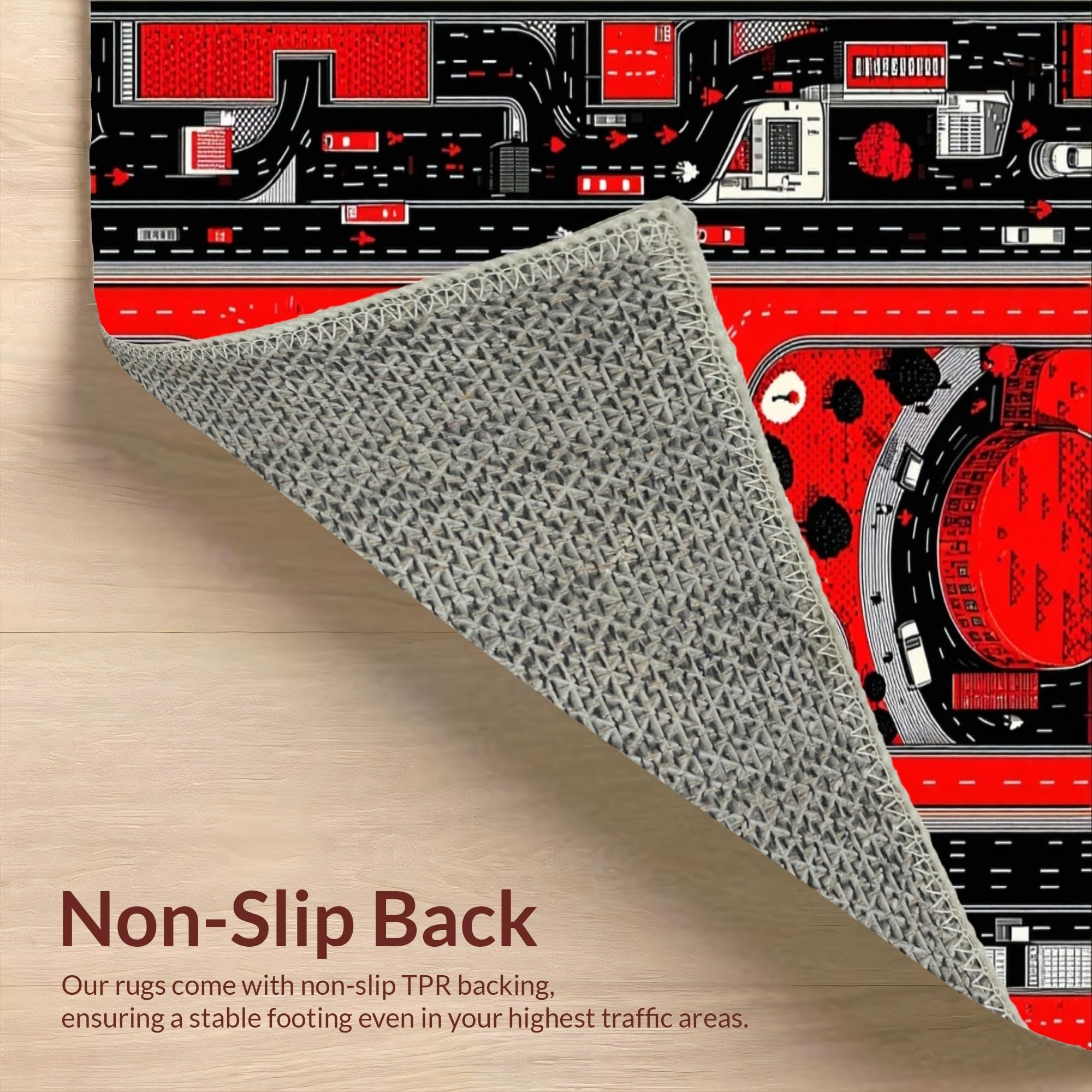 Ultra Soft Area Rug, Non Slip, Stain Resistant, Washable Area Rugs for Living Room, Bedroom, Dynamic Cityscape Road Layout(Red) Overview:
