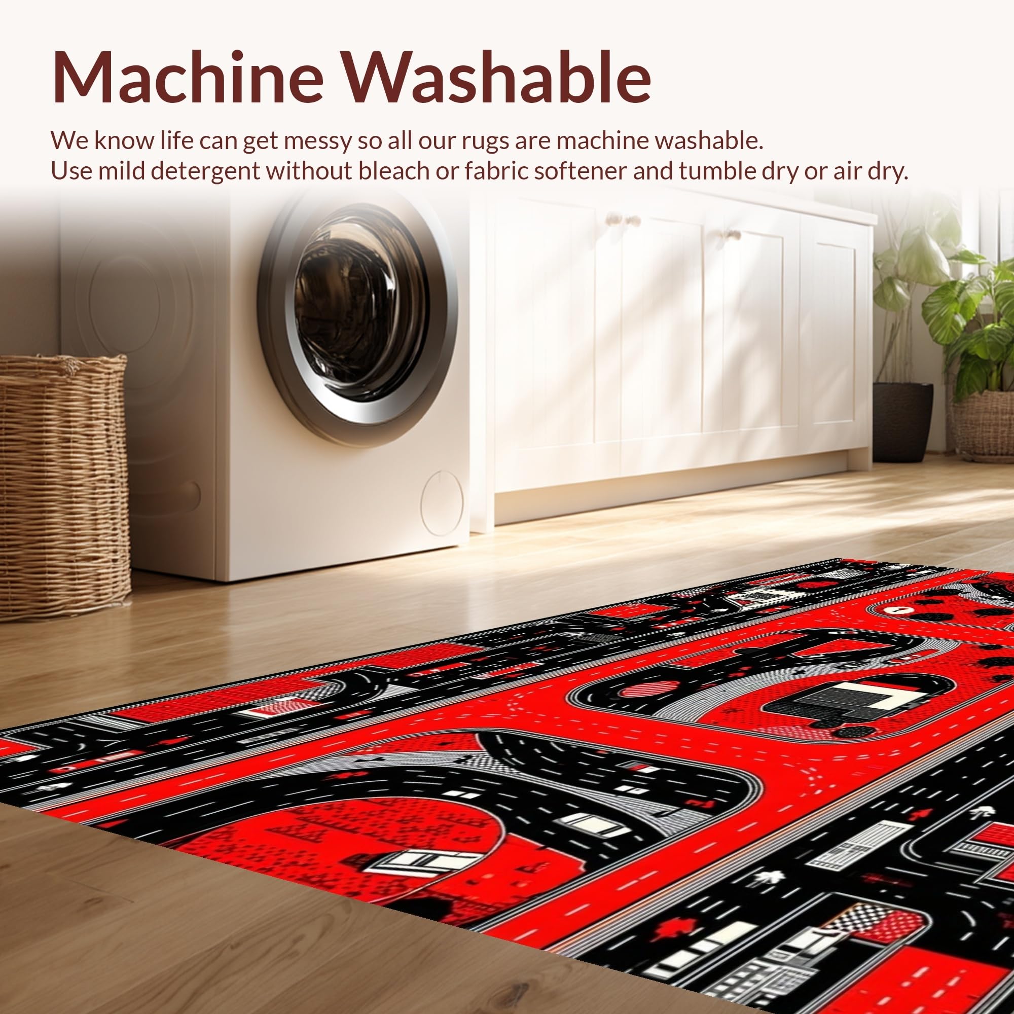 - Machine Washable: Our rugs can be easily thrown in the wash machine.