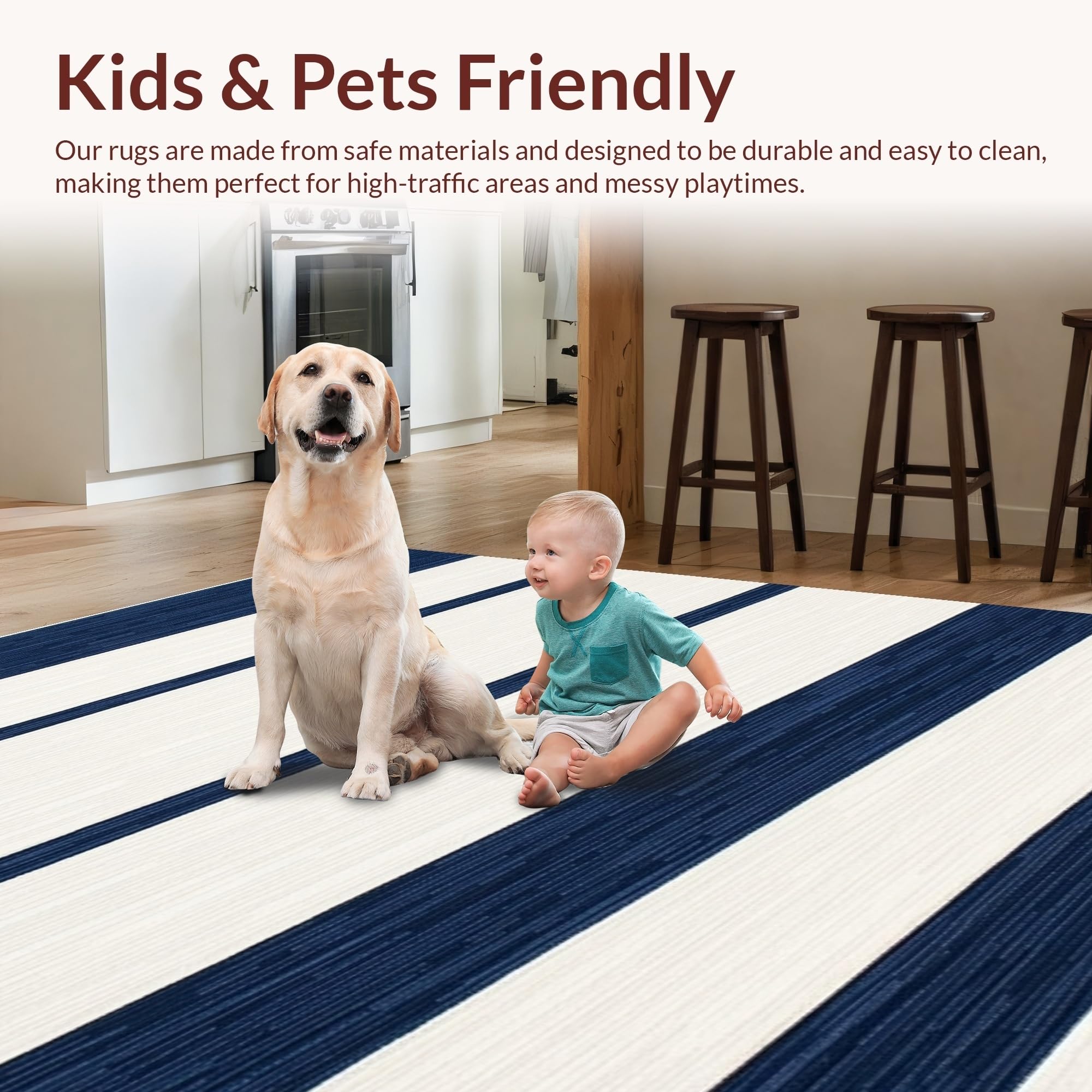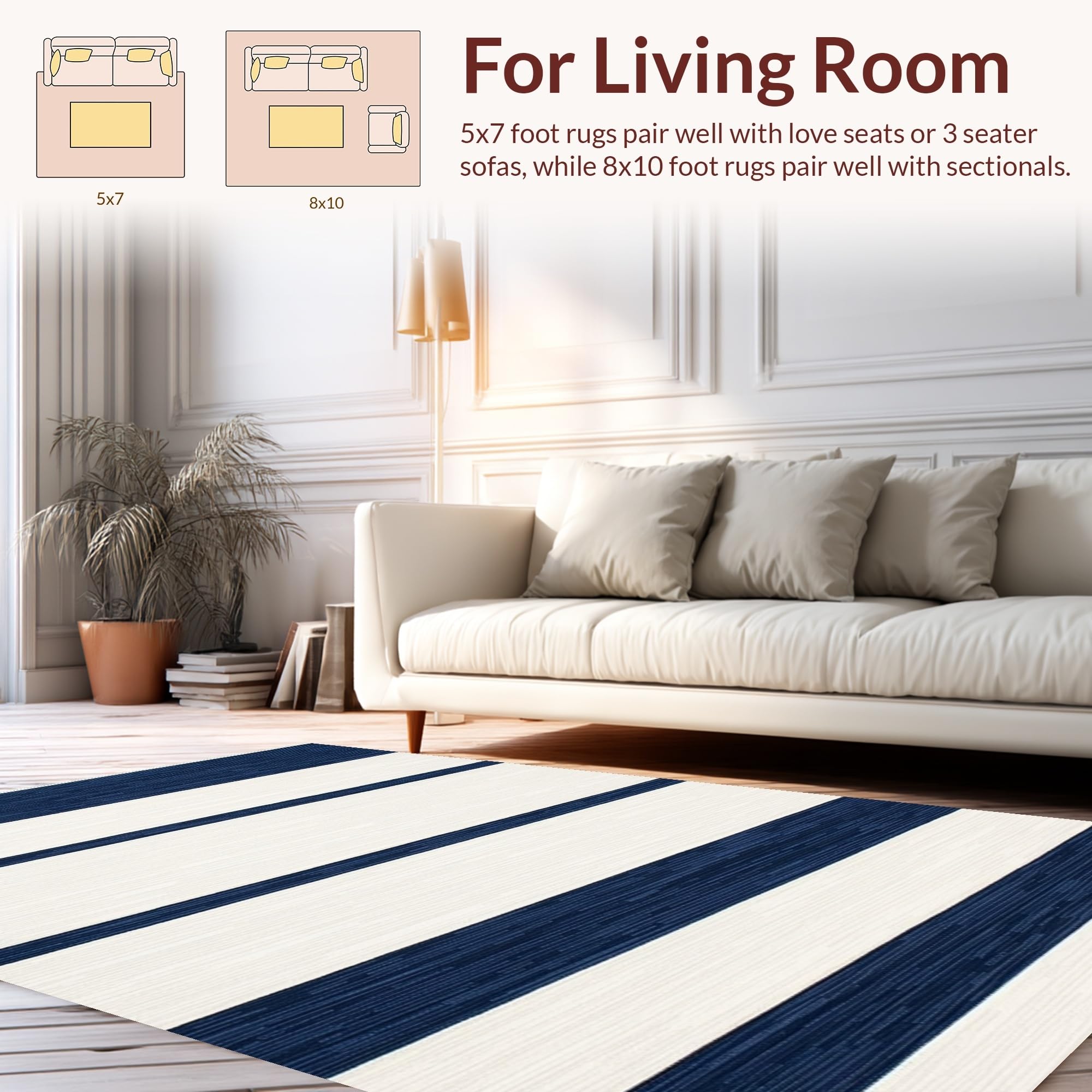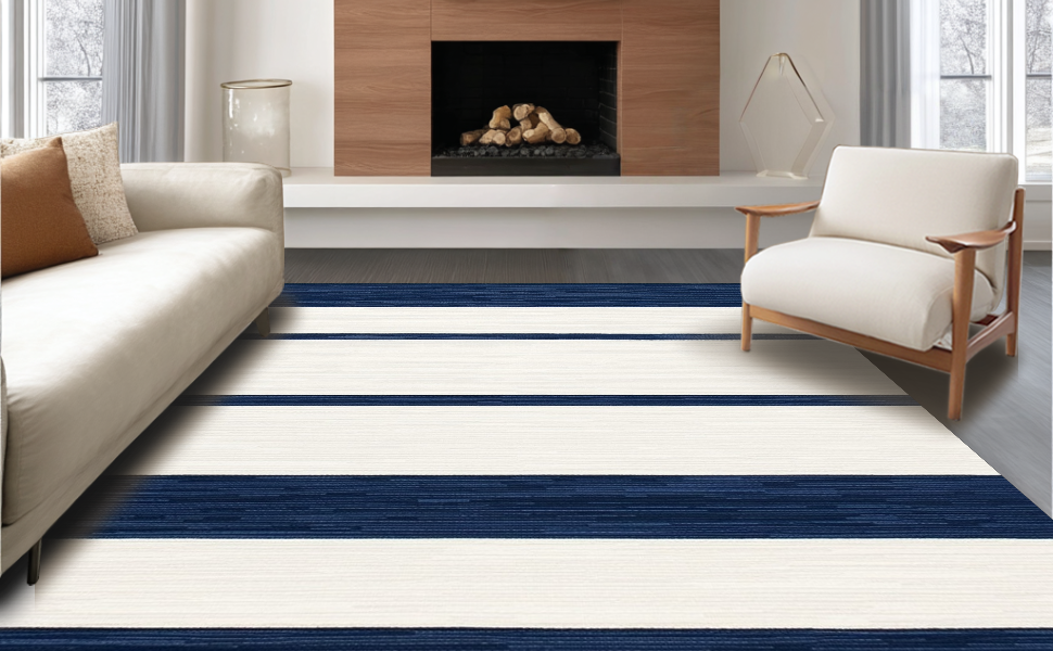 Ultra Soft Area Rug, Non Slip, Stain Resistant, Washable Area Rugs for Living Room, Bedroom, Dynamic Coastal Striped Serenity(Blue) Overview: