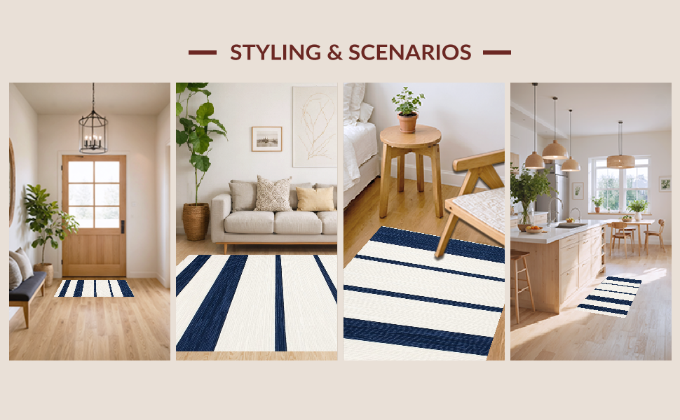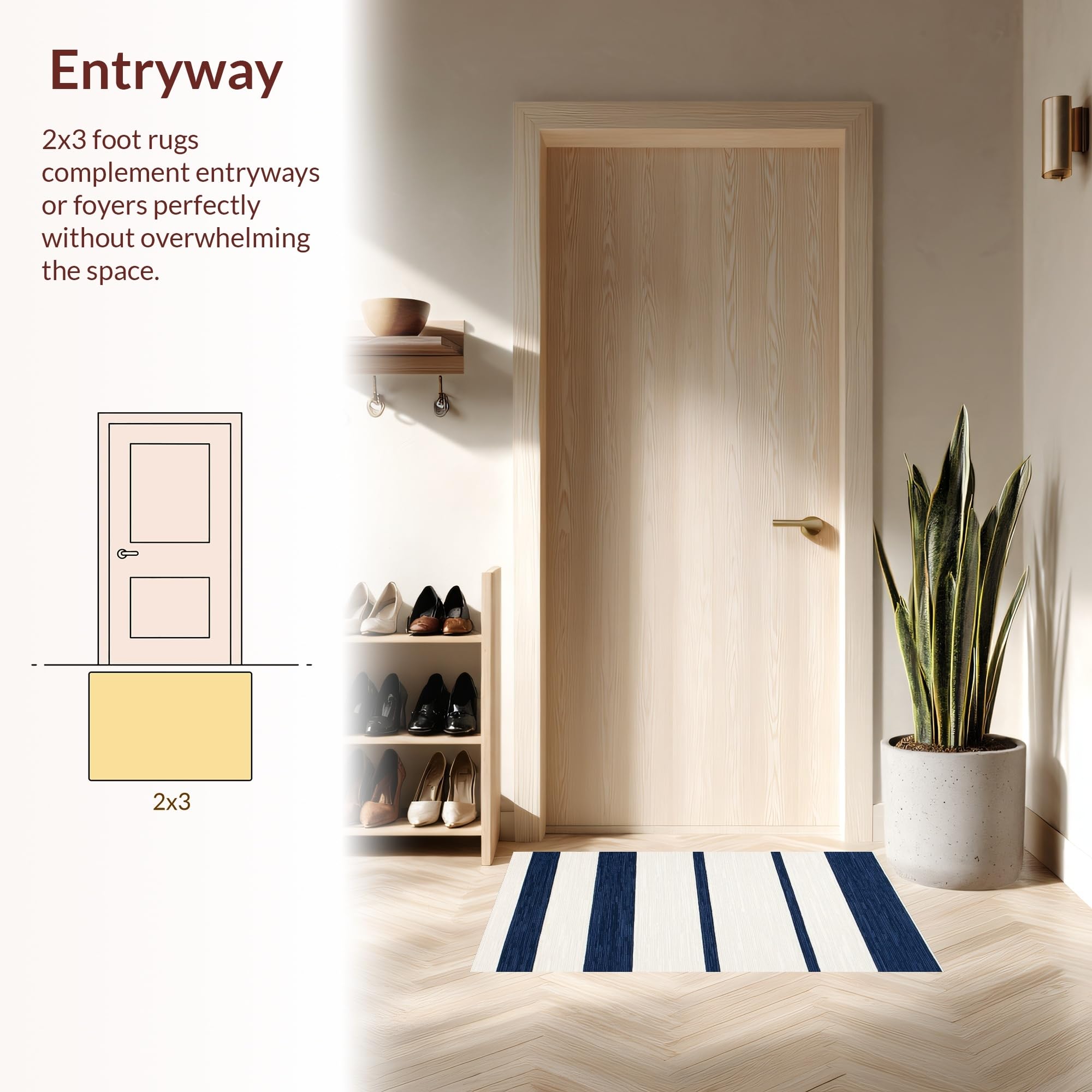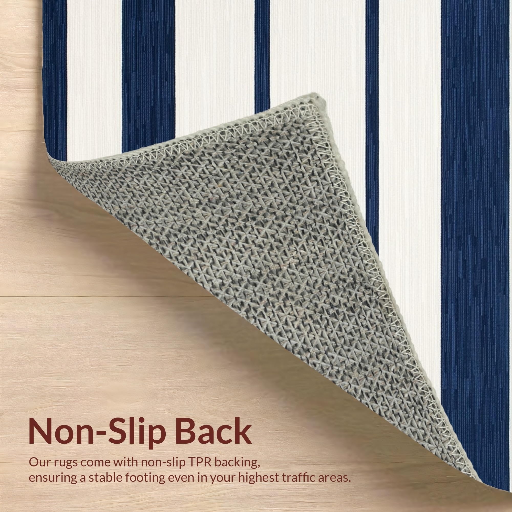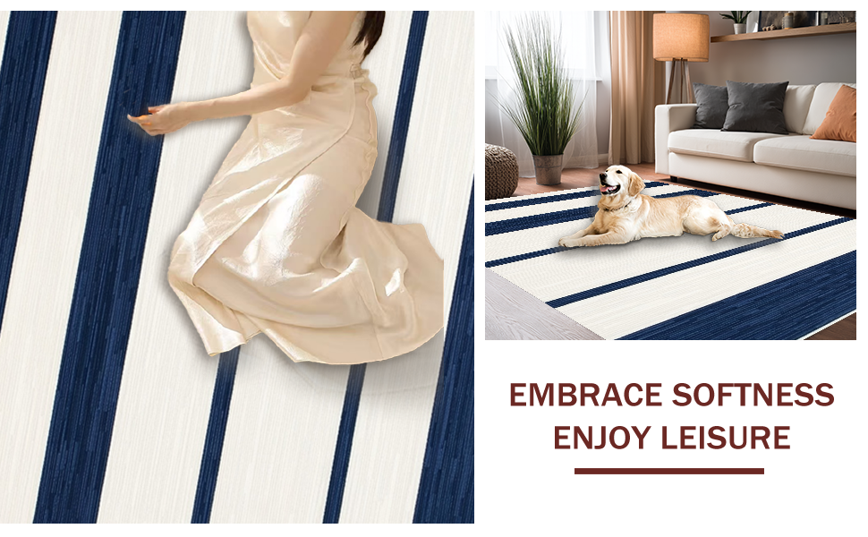 Ultra Soft Area Rug, Non Slip, Stain Resistant, Washable Area Rugs for Living Room, Bedroom, Dynamic Coastal Striped Serenity(Blue) Overview: