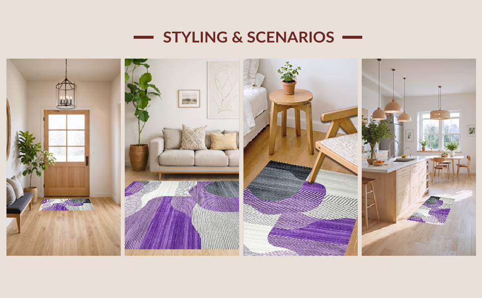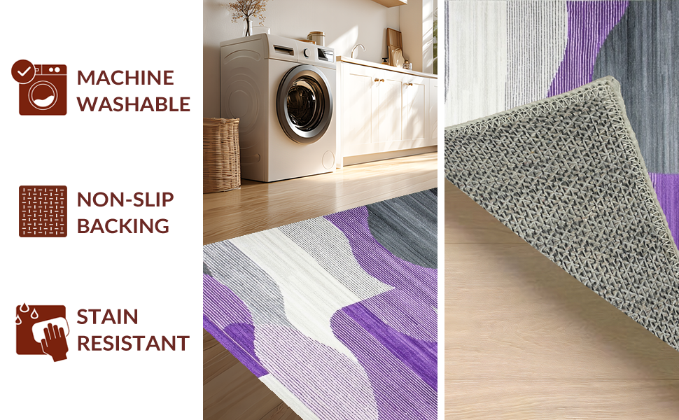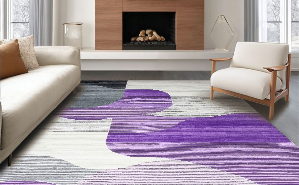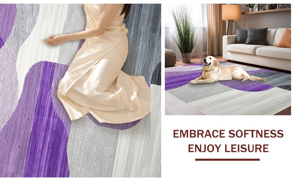Ultra Soft Area Rug, Non Slip, Stain Resistant, Washable Area Rugs for Living Room, Bedroom, Dynamic Color-Blocked Pattern(Purple) Overview: