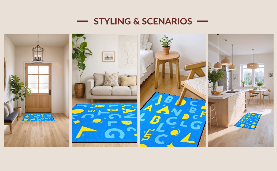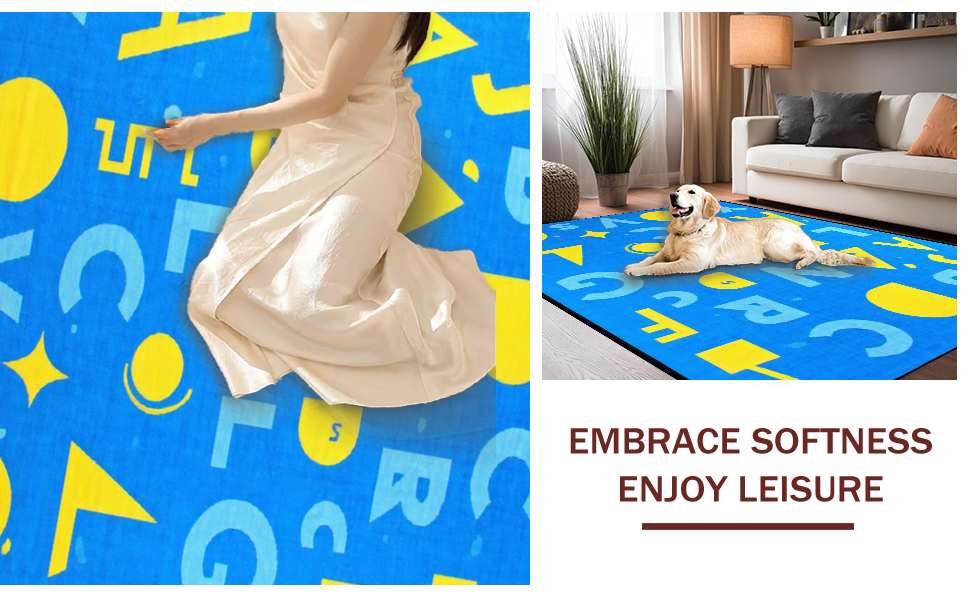 Ultra Soft Area Rug, Non Slip, Stain Resistant, Washable Area Rugs for Living Room, Bedroom, Dynamic Colorful Character and Figure Layout(Blue) Overview: