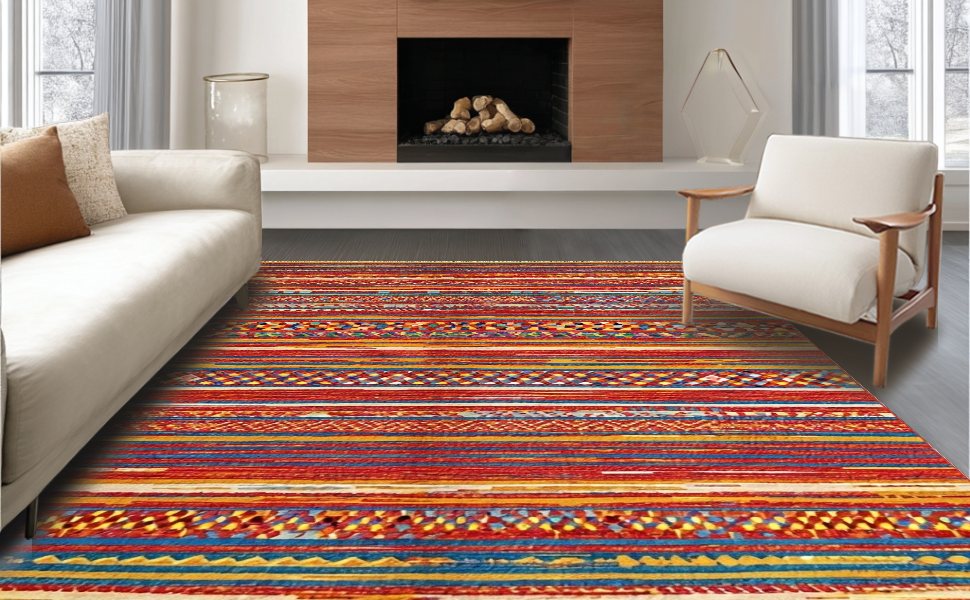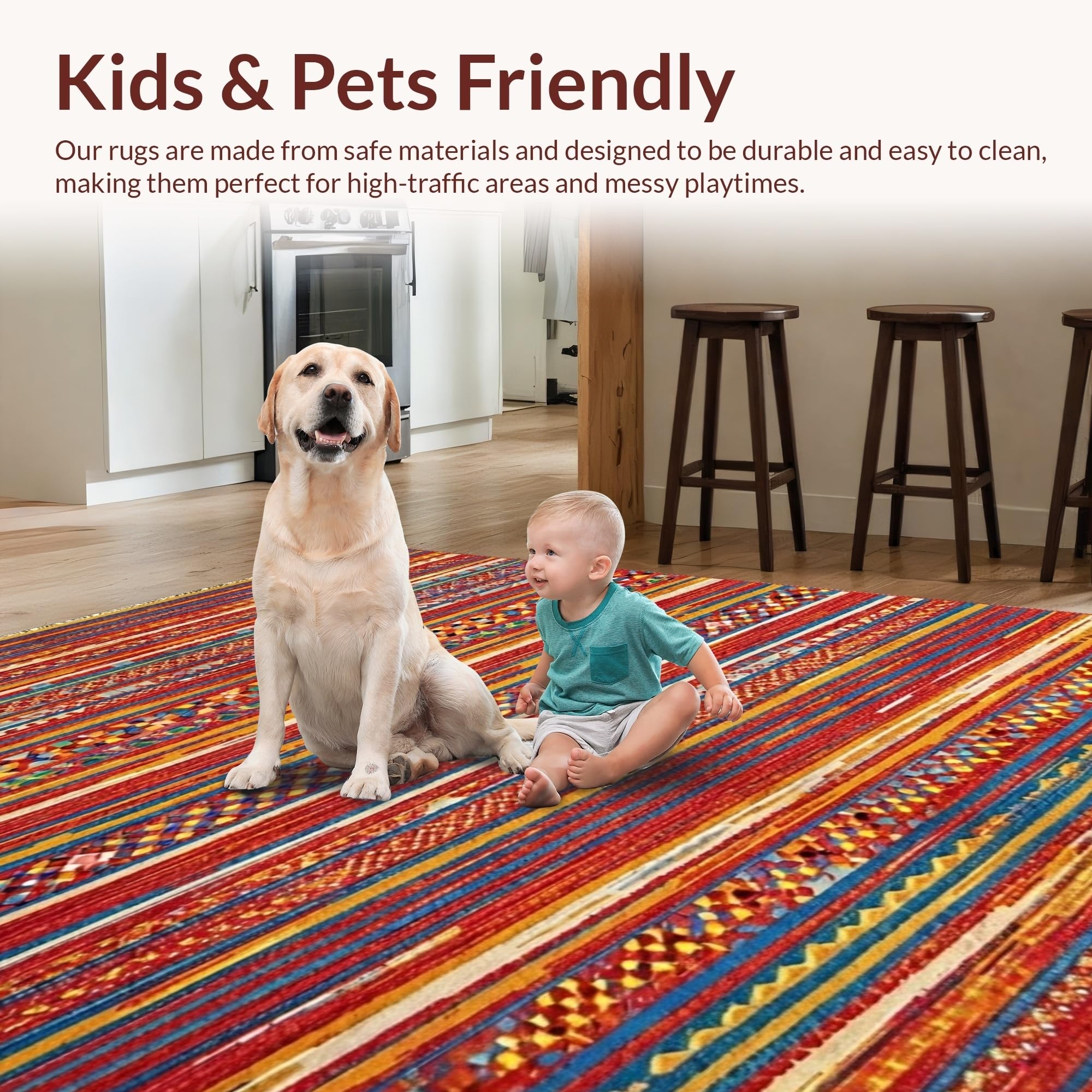 Ultra Soft Area Rug, Non Slip, Stain Resistant, Washable Area Rugs for Living Room, Bedroom, Dynamic Colorful Craftsmanship(Red) Overview: