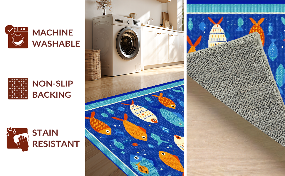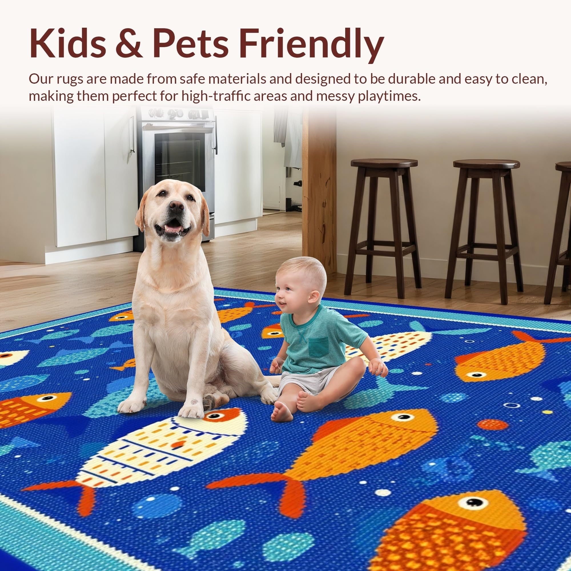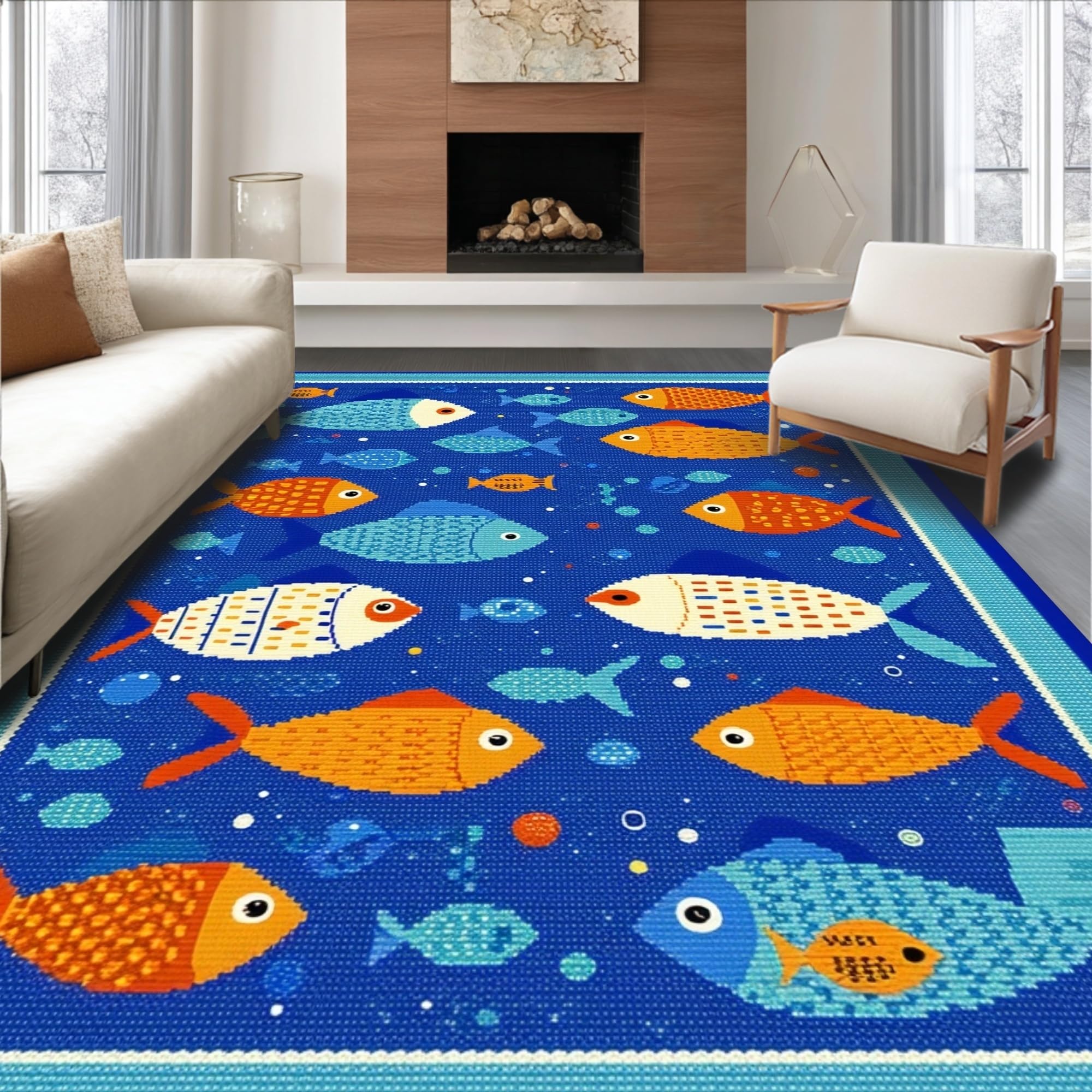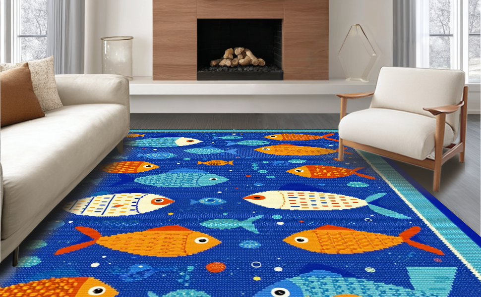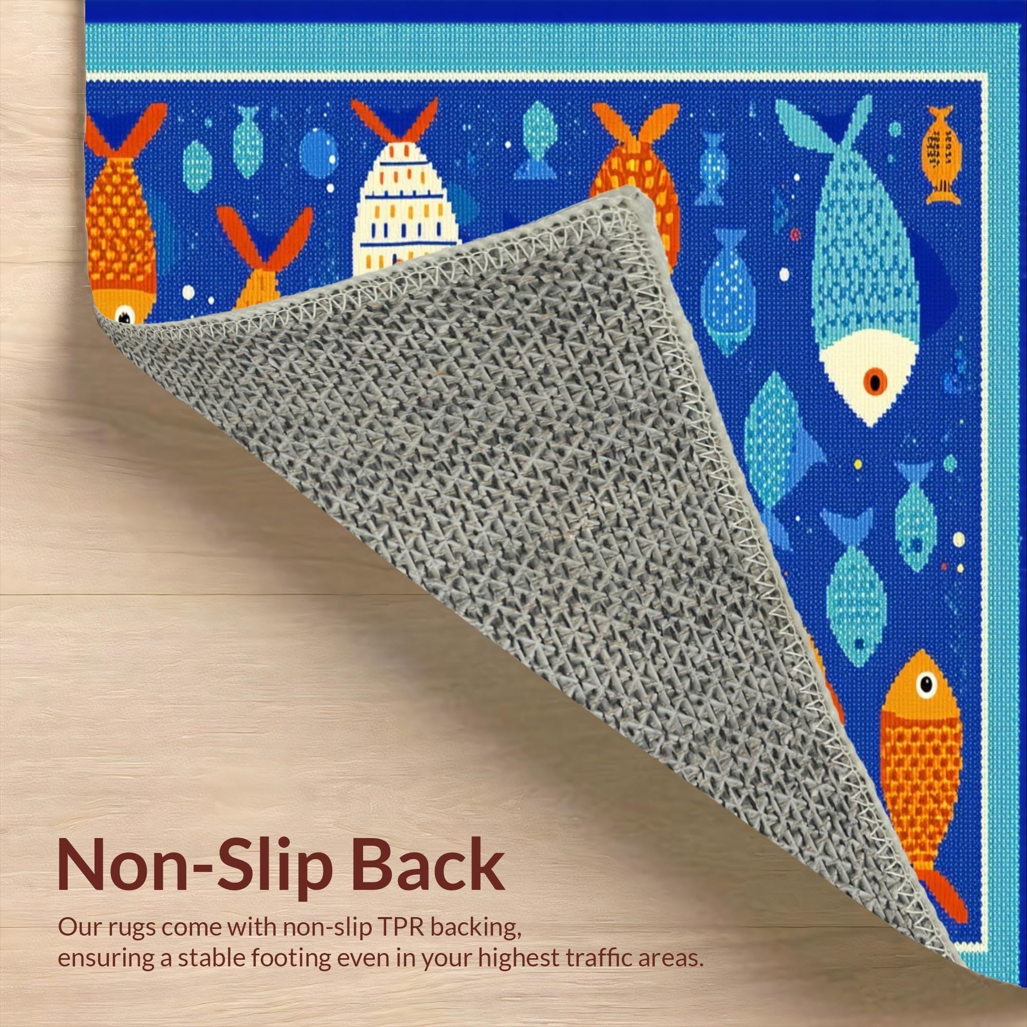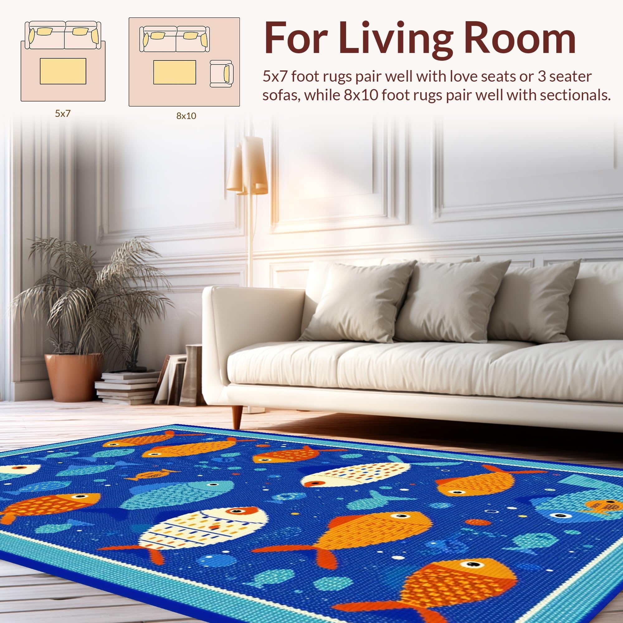 Ultra Soft Area Rug, Non Slip, Stain Resistant, Washable Area Rugs for Living Room, Bedroom, Dynamic Colorful Sea Creature Style(Blue) Overview: