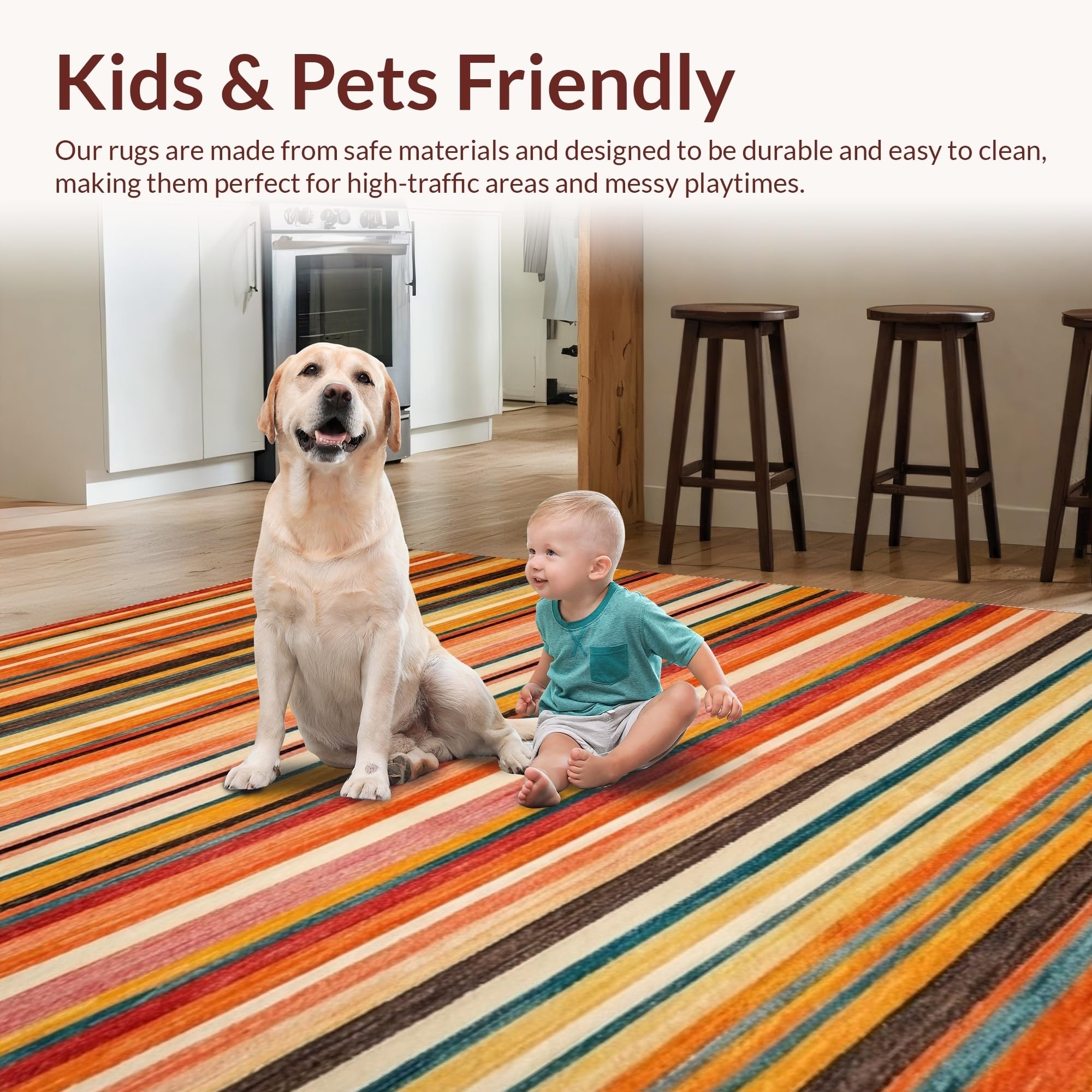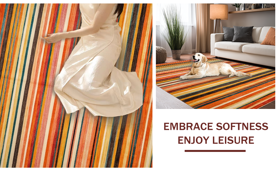 Ultra Soft Area Rug, Non Slip, Stain Resistant, Washable Area Rugs for Living Room, Bedroom, Dynamic Colorful Swirl Patterns(Orange) Overview:
