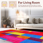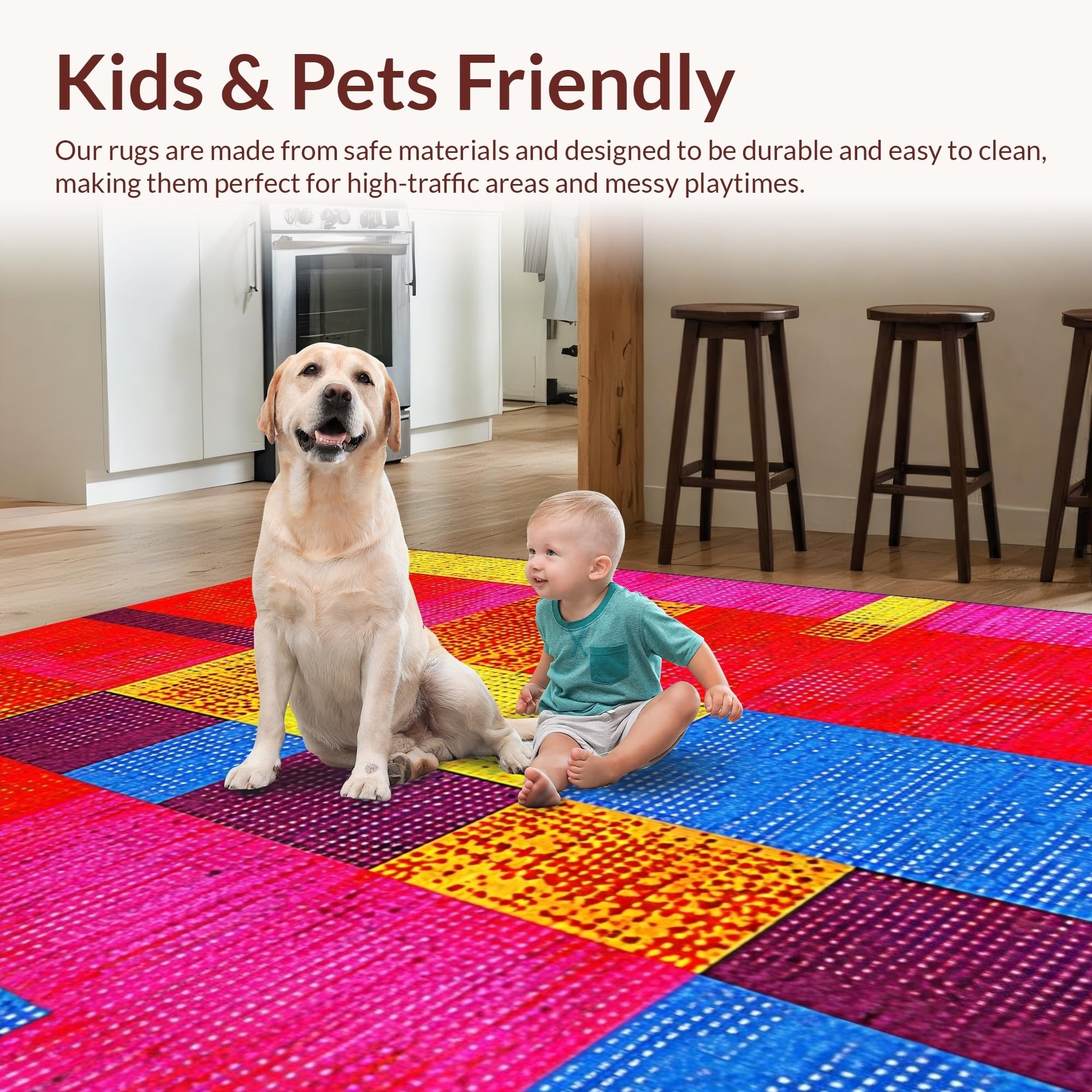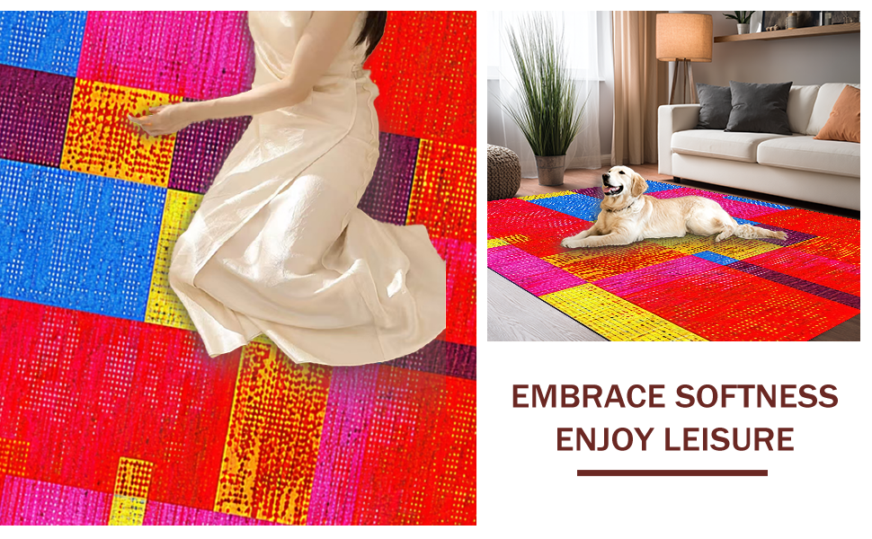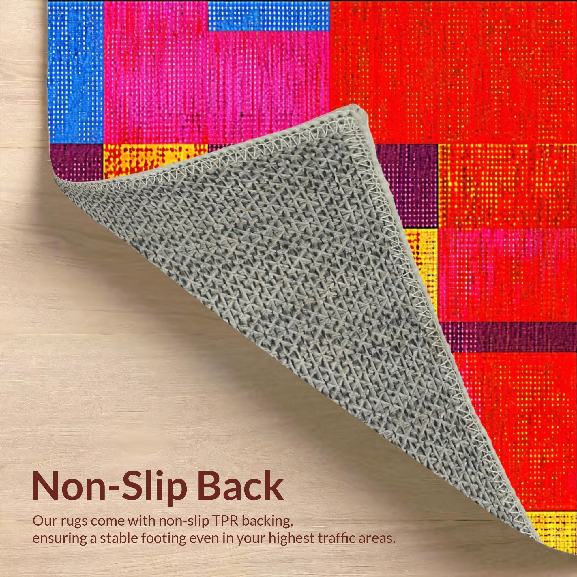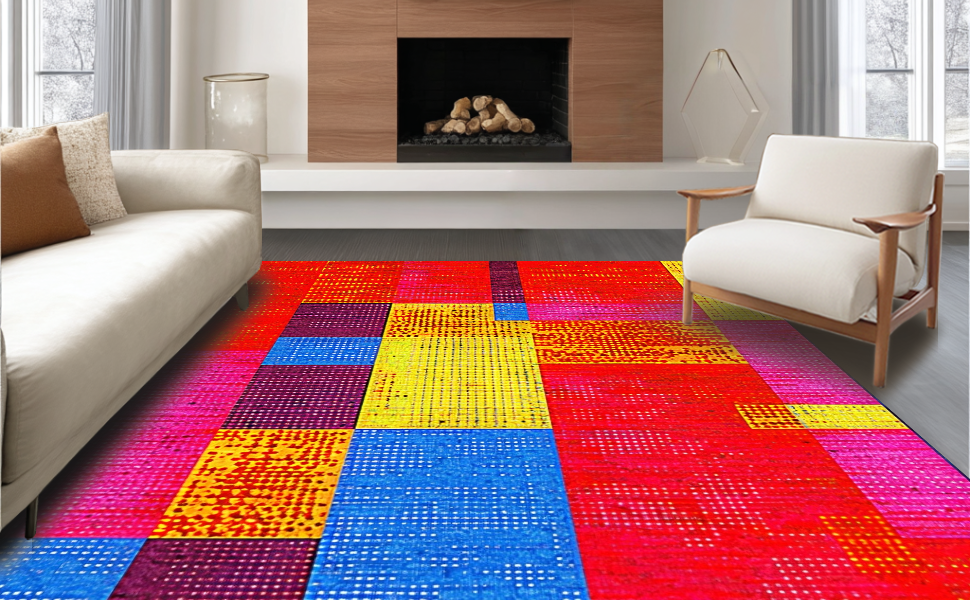 Ultra Soft Area Rug, Non Slip, Stain Resistant, Washable Area Rugs for Living Room, Bedroom, Dynamic Colorful Symmetrical Design(Red) Overview: