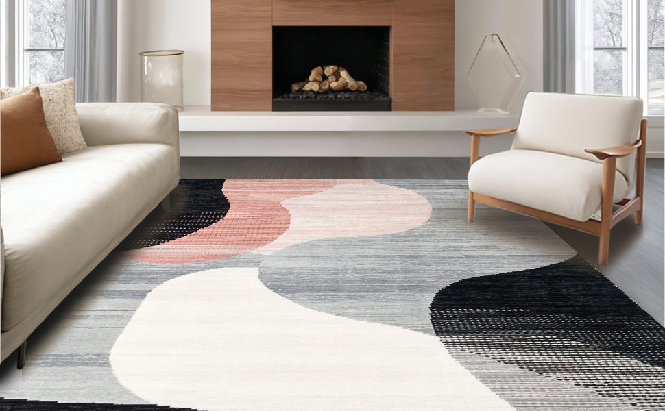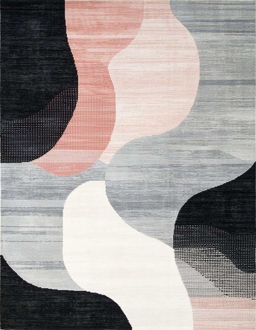 Ultra Soft Area Rug, Non Slip, Stain Resistant, Washable Area Rugs for Living Room, Bedroom, Dynamic Contemporary Brushstroke Visuals(Gray) Overview: