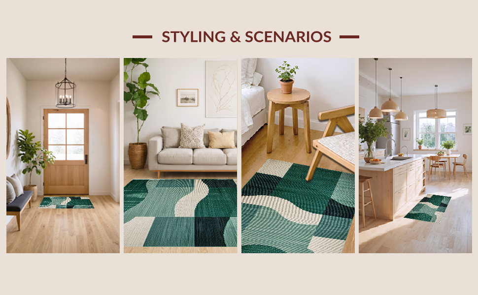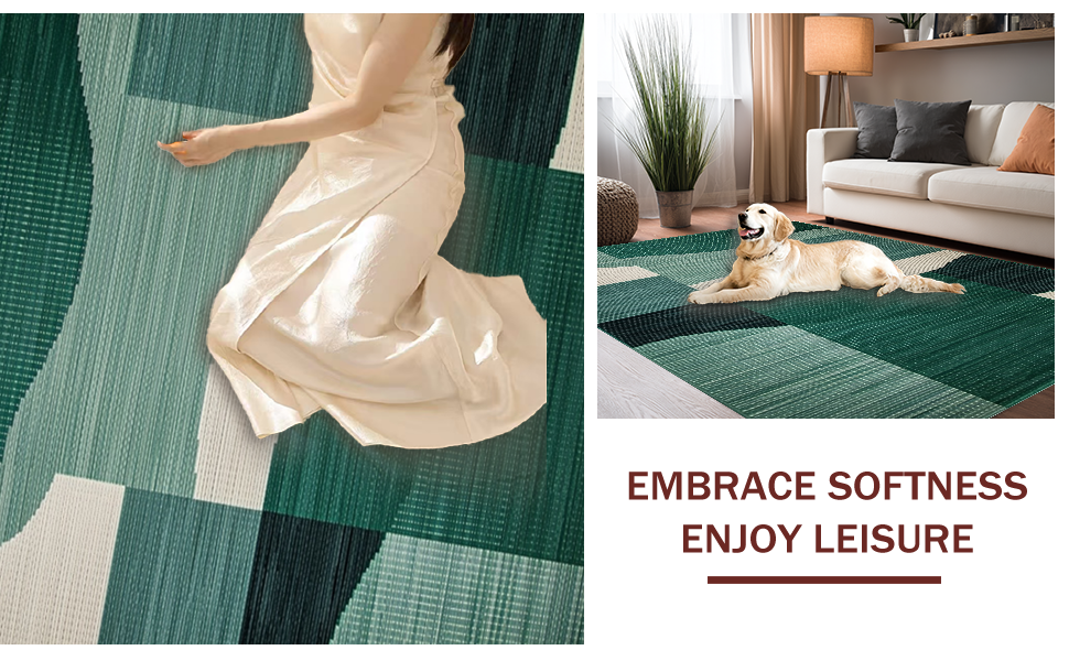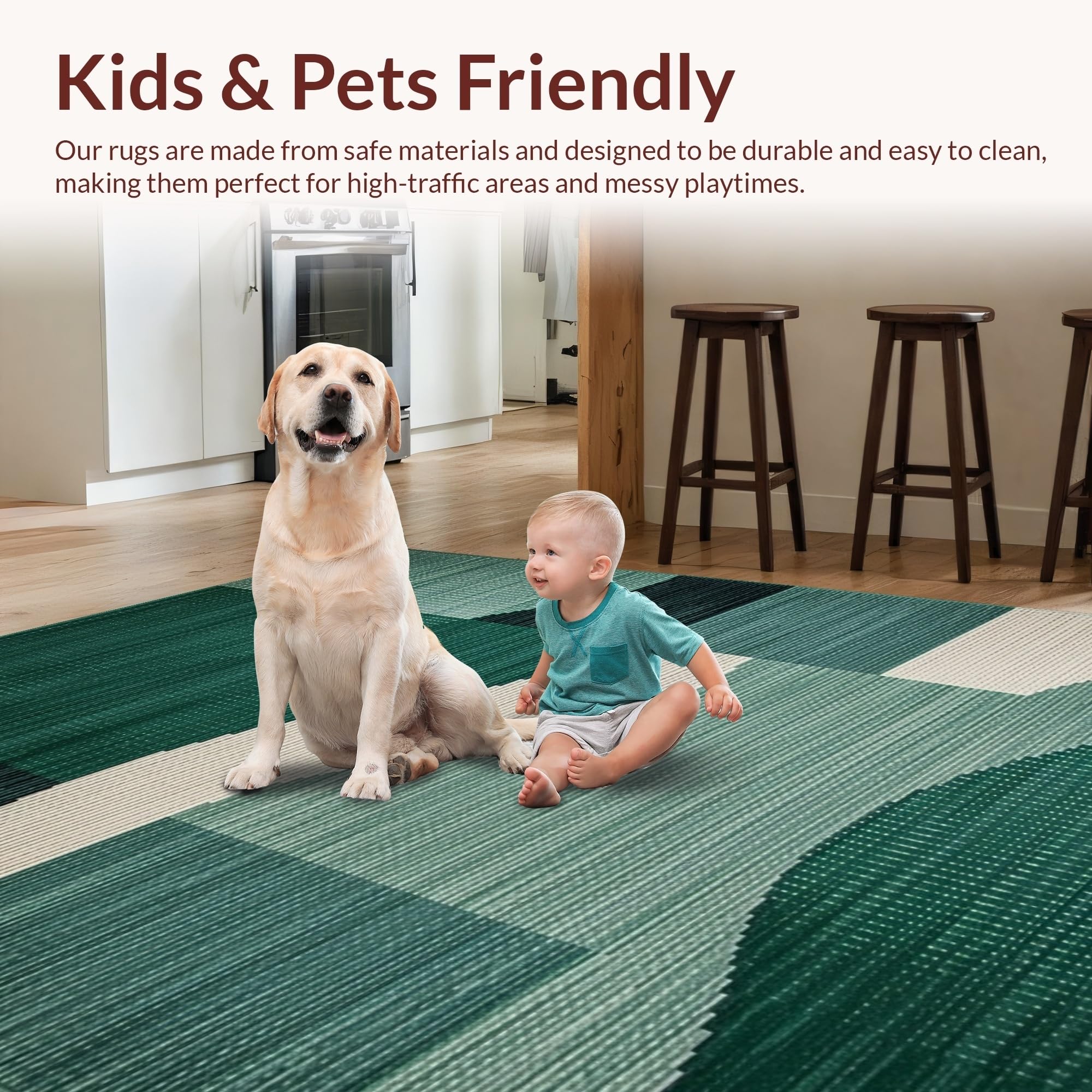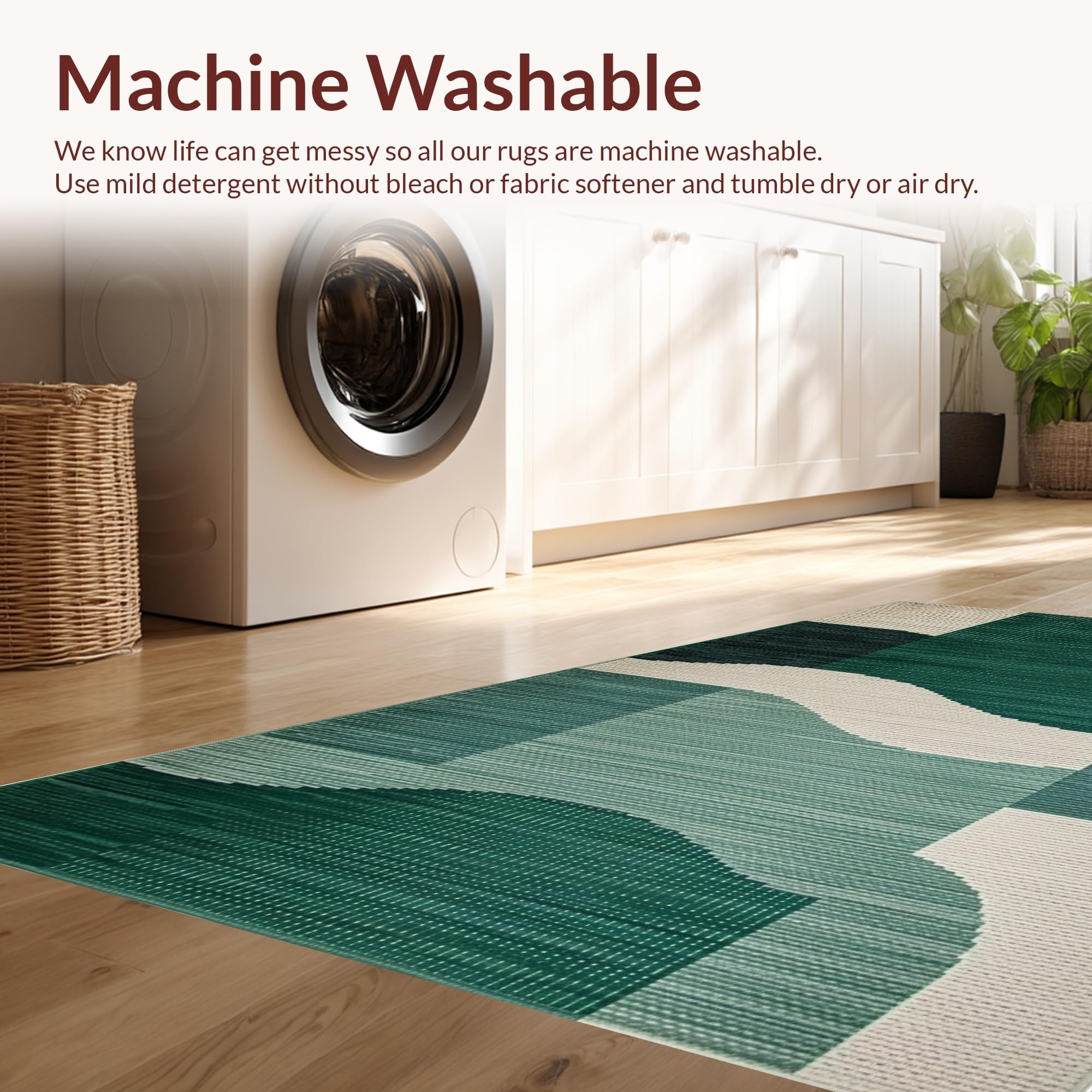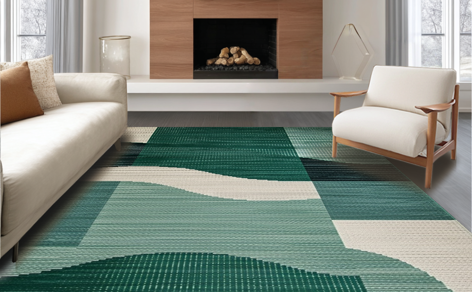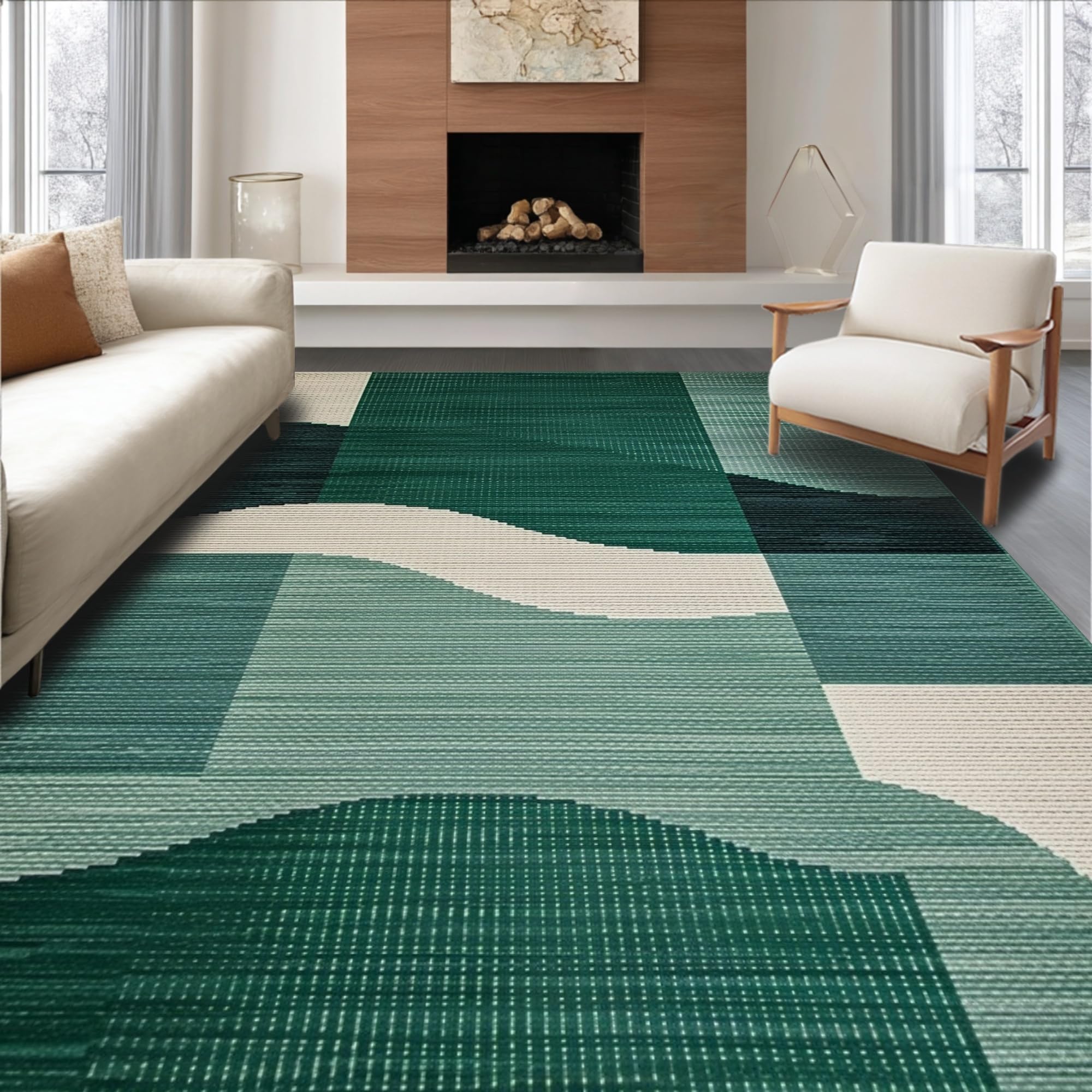 Ultra Soft Area Rug, Non Slip, Stain Resistant, Washable Area Rugs for Living Room, Bedroom, Dynamic Contemporary Line Composition(Green) Overview: