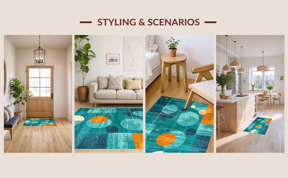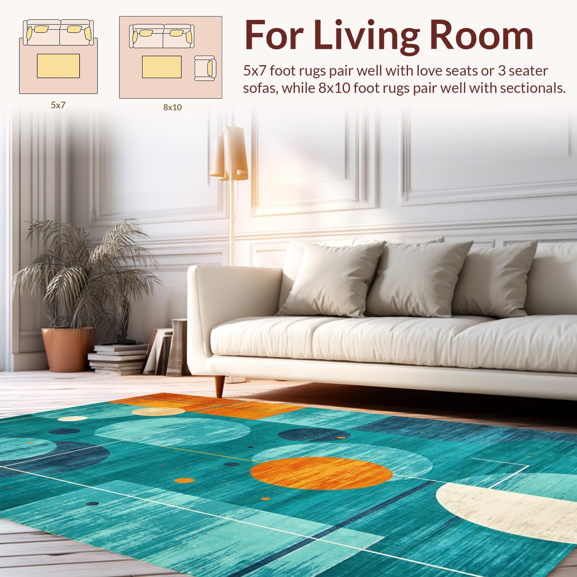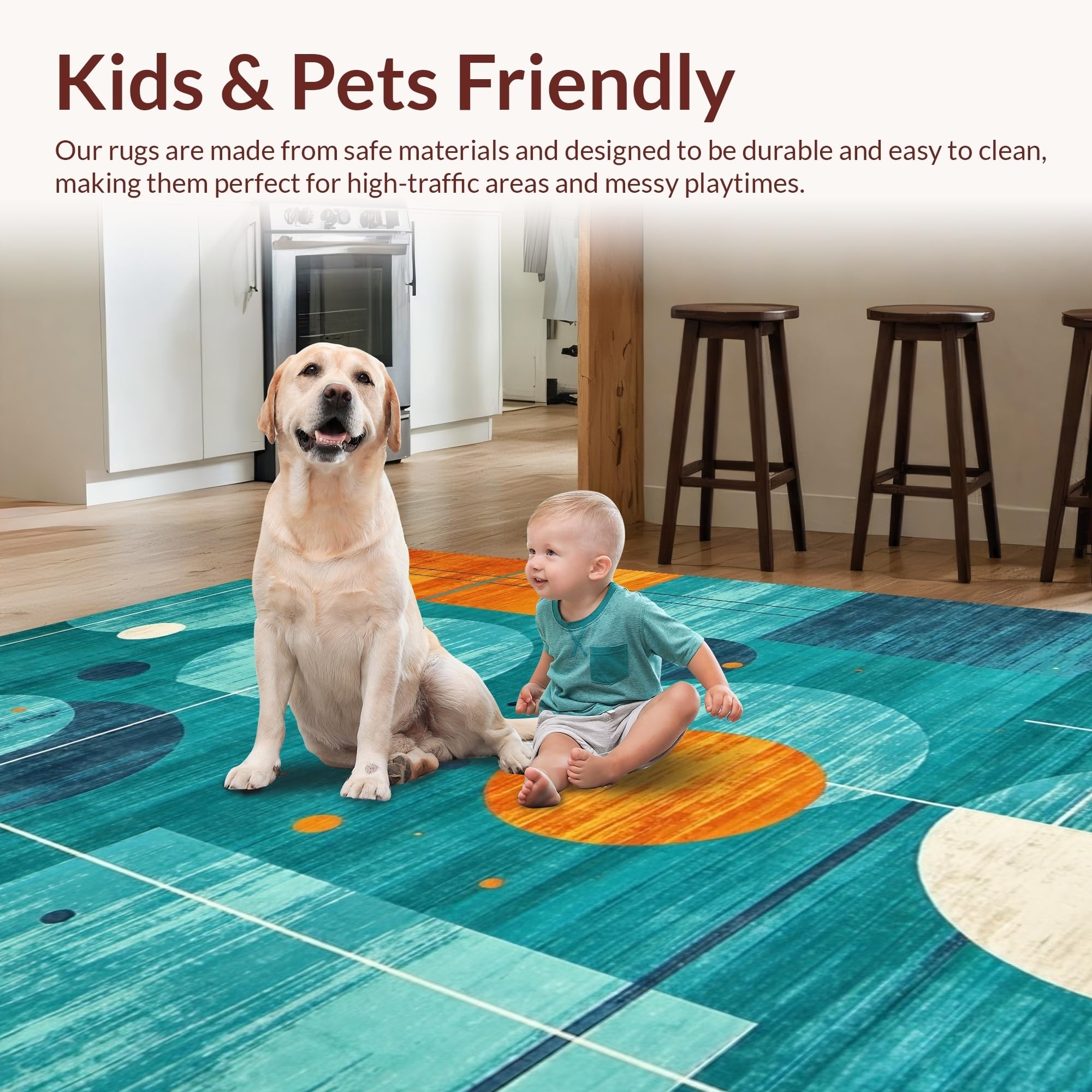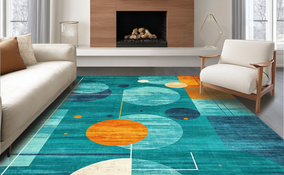 Ultra Soft Area Rug, Non Slip, Stain Resistant, Washable Area Rugs for Living Room, Bedroom, Dynamic Contemporary Pattern Mix(Green) Overview: