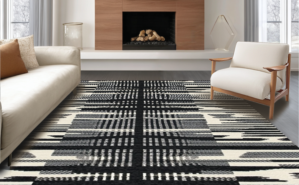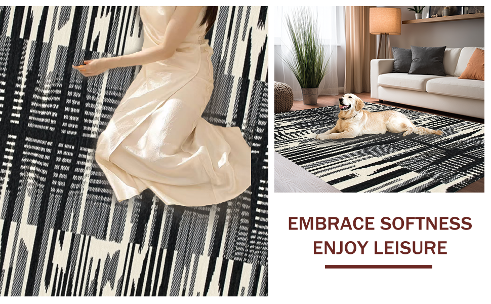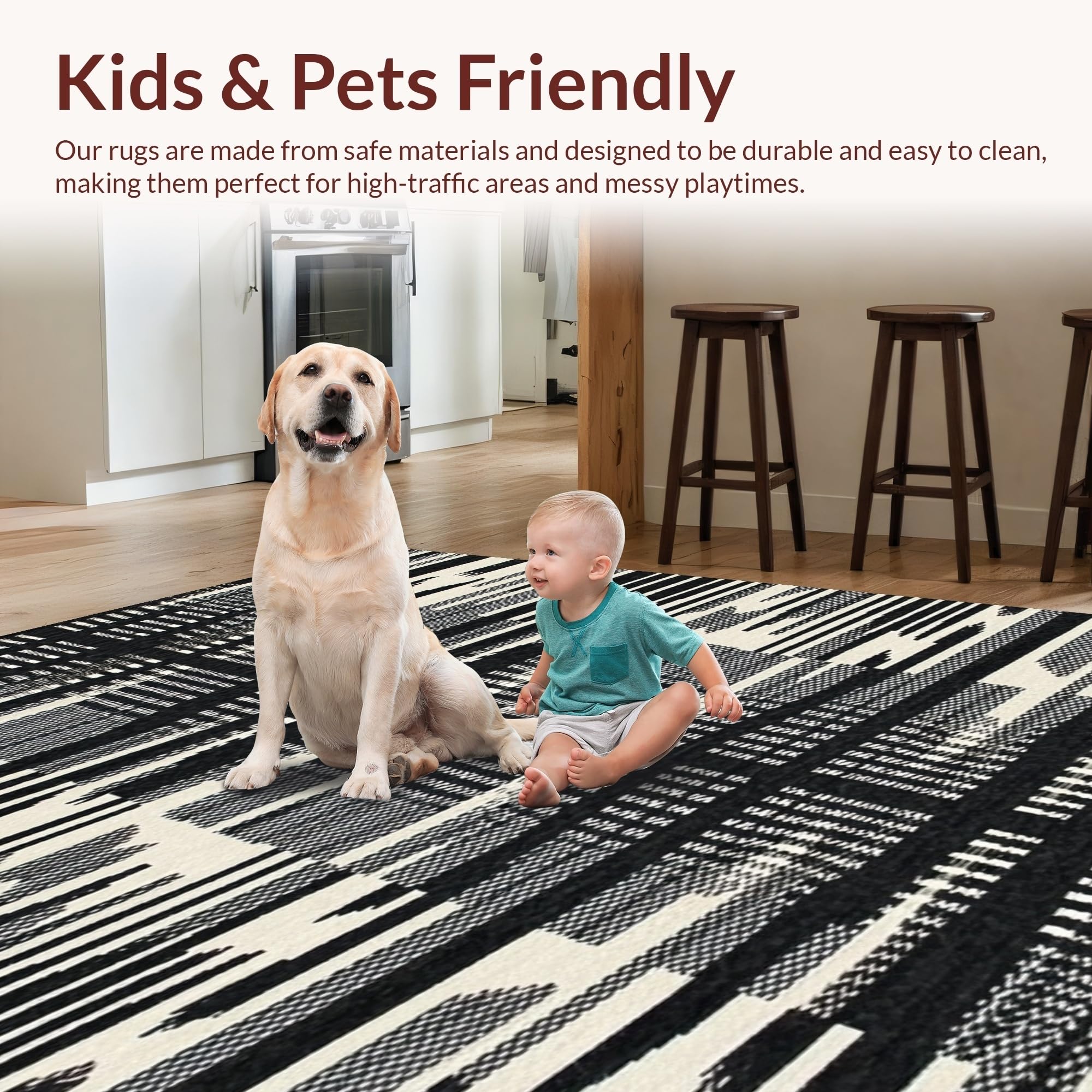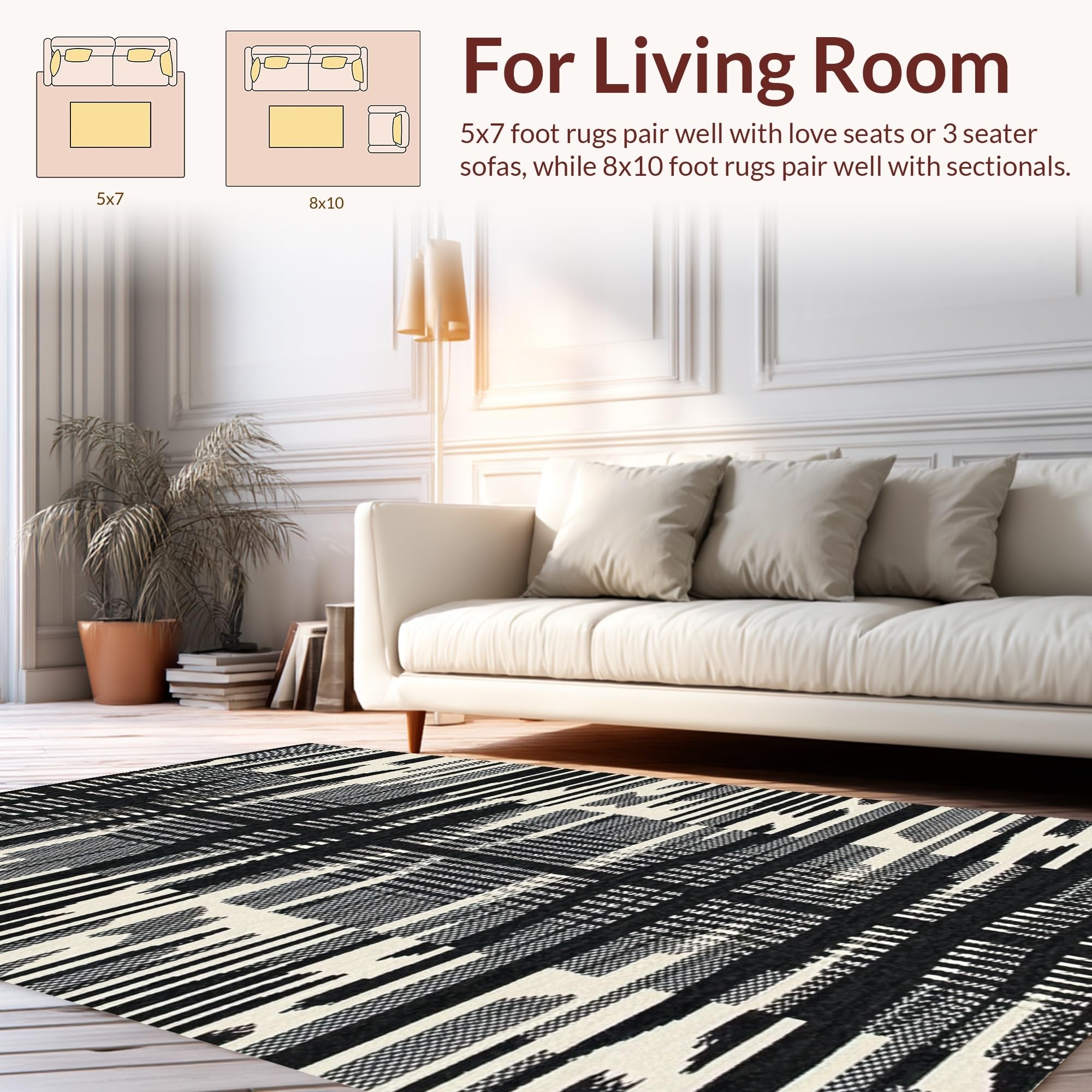 Ultra Soft Area Rug, Non Slip, Stain Resistant, Washable Area Rugs for Living Room, Bedroom, Dynamic Contemporary Zebra Artistry(Black) Overview: