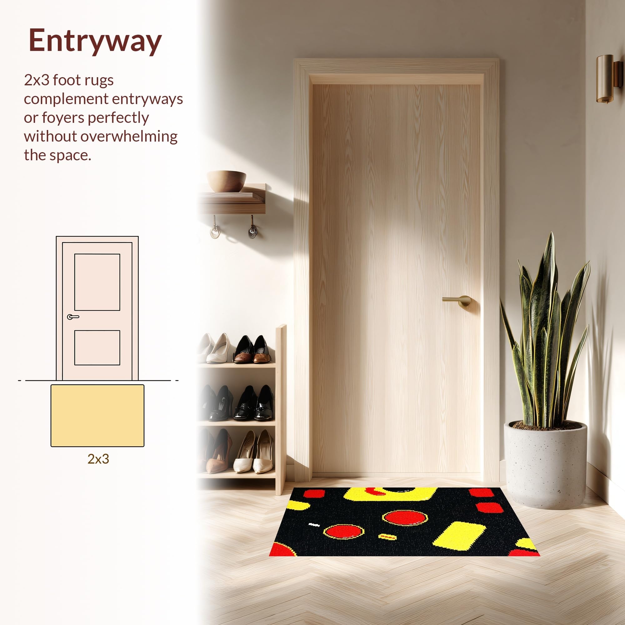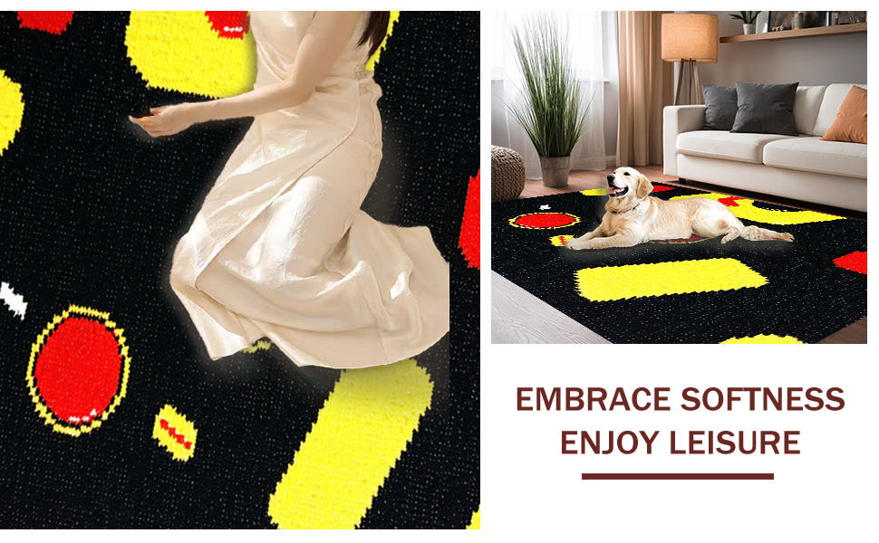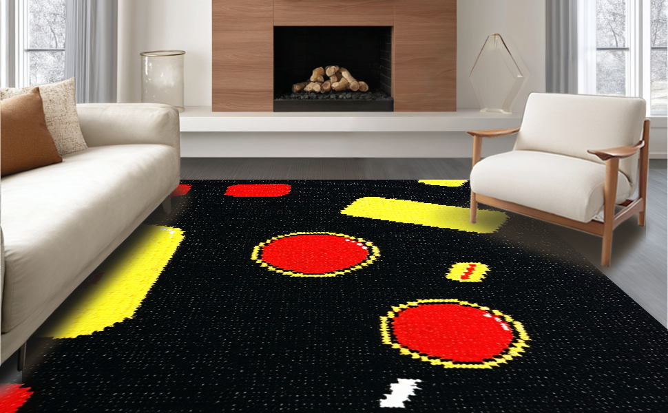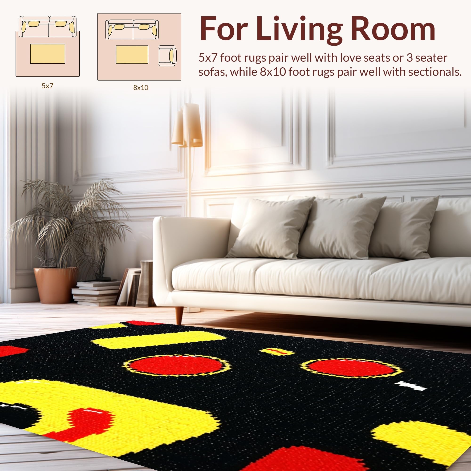 Ultra Soft Area Rug, Non Slip, Stain Resistant, Washable Area Rugs for Living Room, Bedroom, Dynamic Controller Pattern Fusion(Black) Overview: