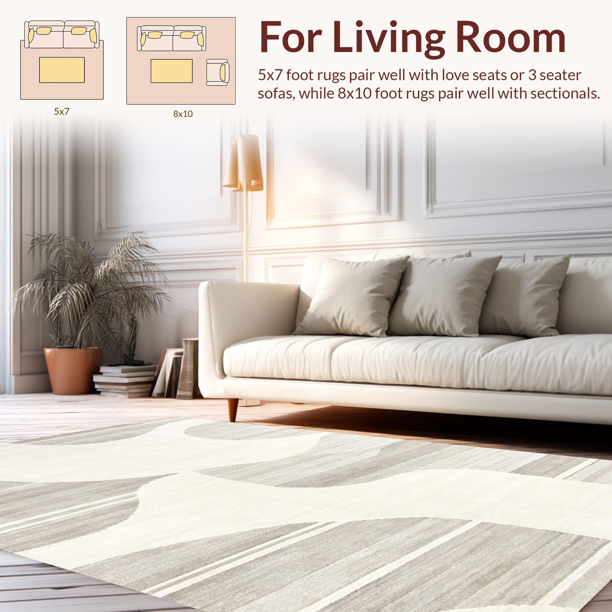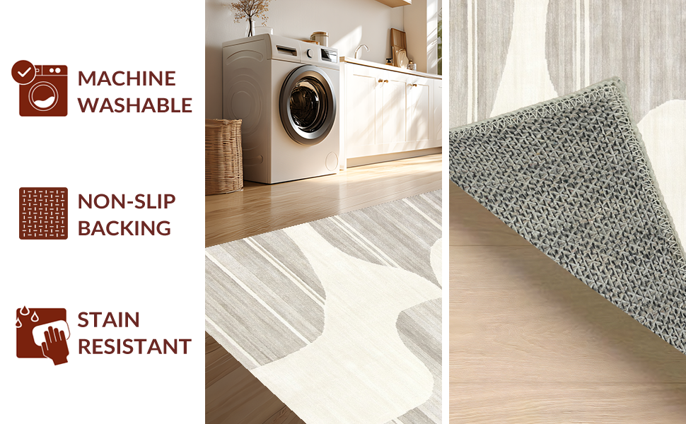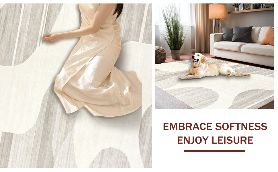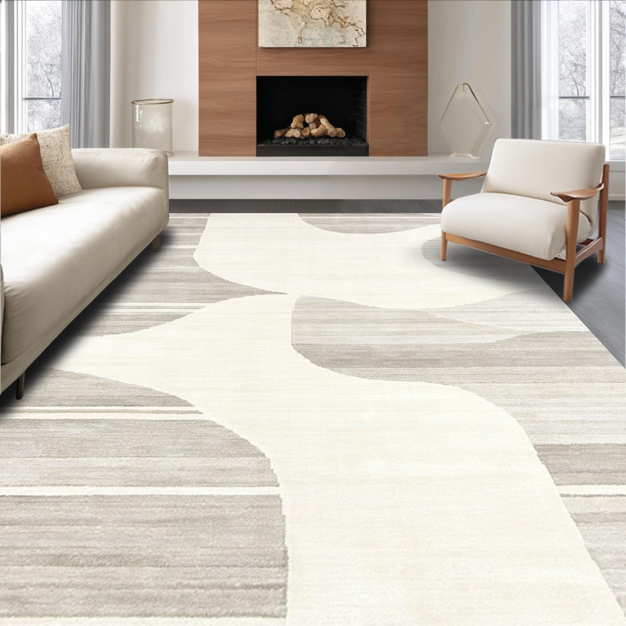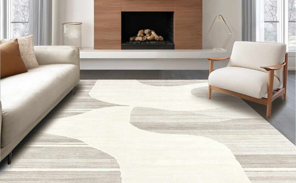 Ultra Soft Area Rug, Non Slip, Stain Resistant, Washable Area Rugs for Living Room, Bedroom, Dynamic Cream Geometric Visual Flow(Beige) Overview: