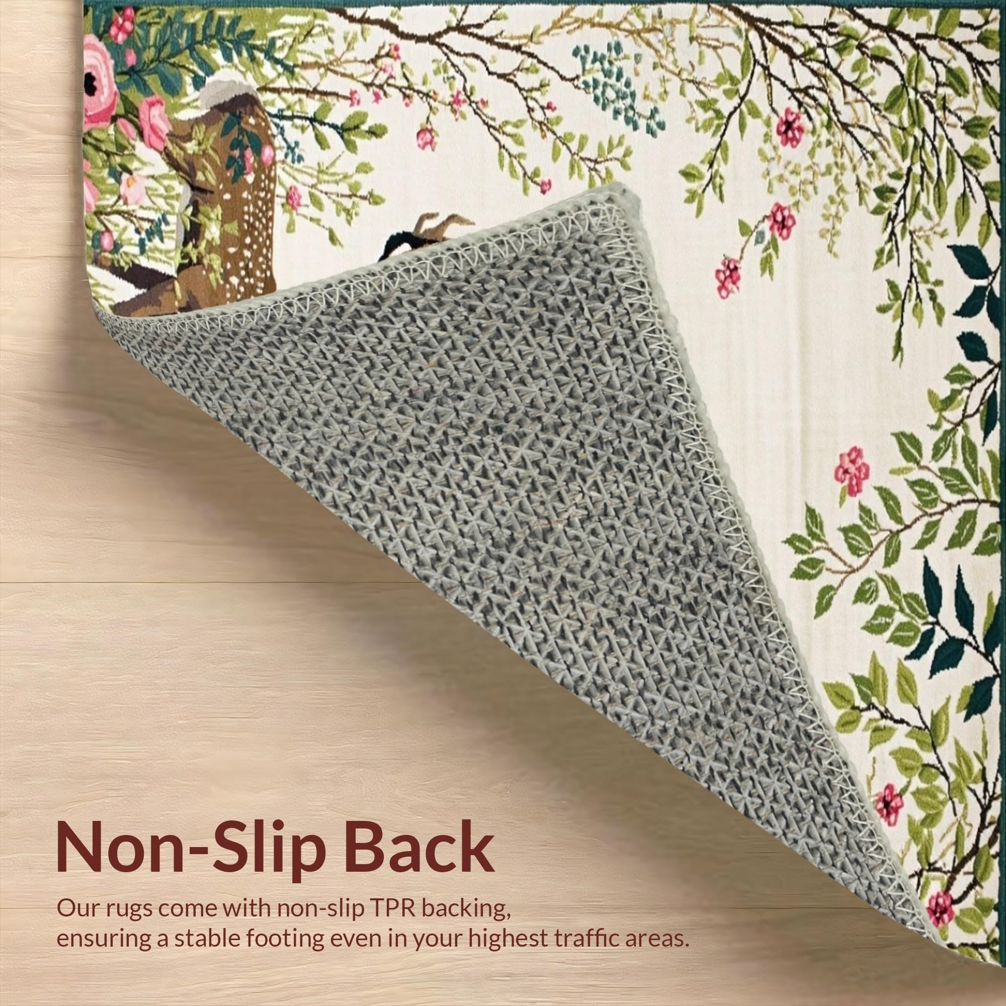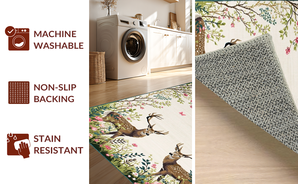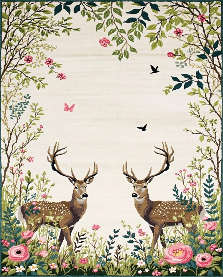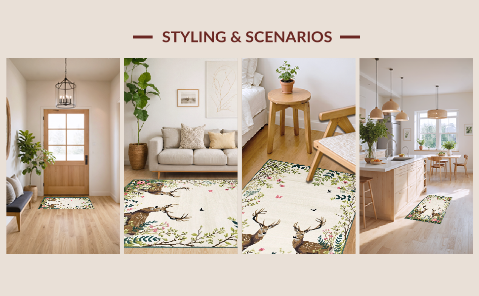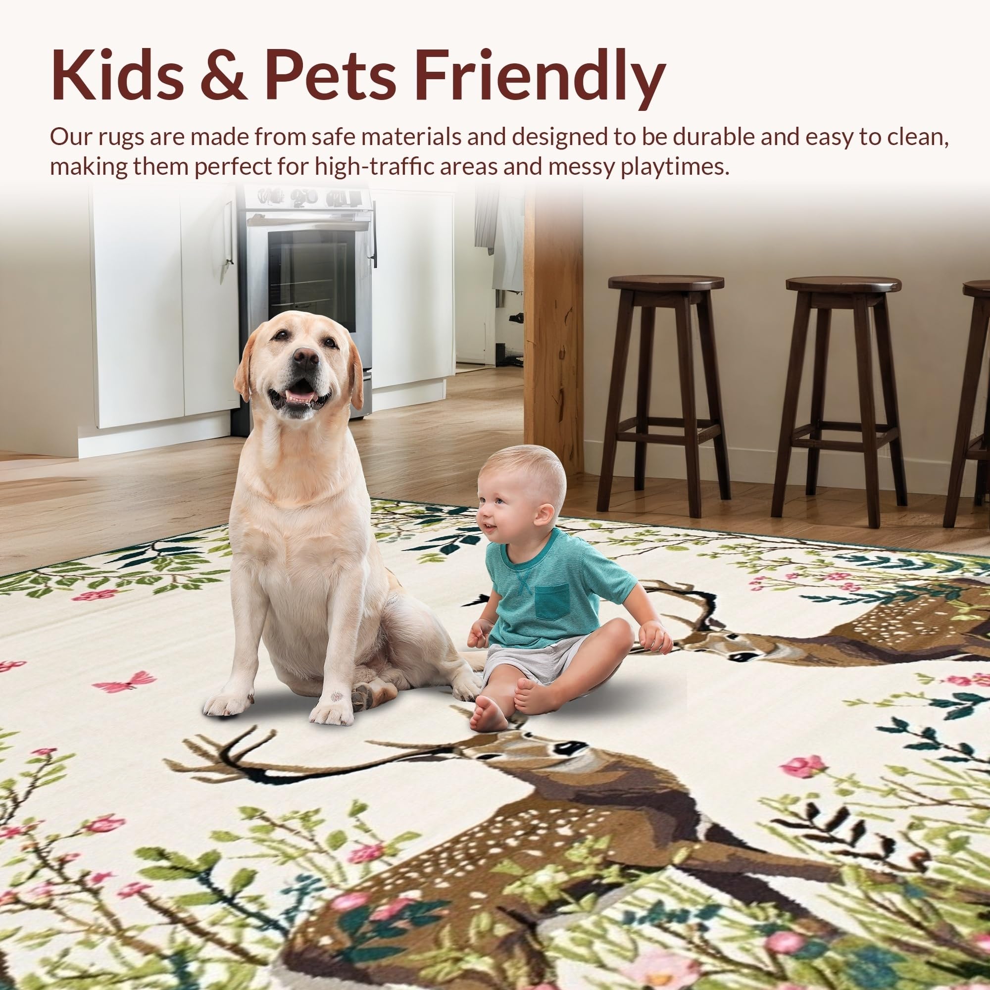 Ultra Soft Area Rug, Non Slip, Stain Resistant, Washable Area Rugs for Living Room, Bedroom, Dynamic Deer Print Fusion(Beige) Overview: