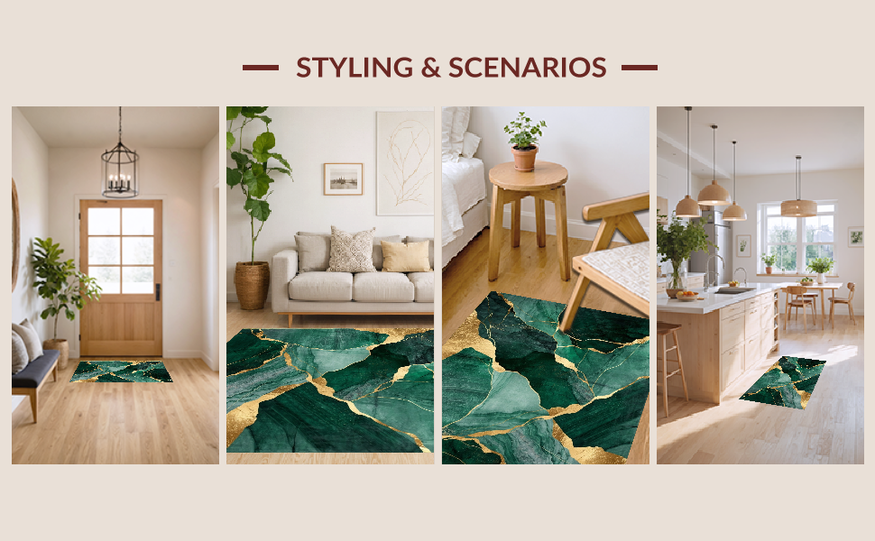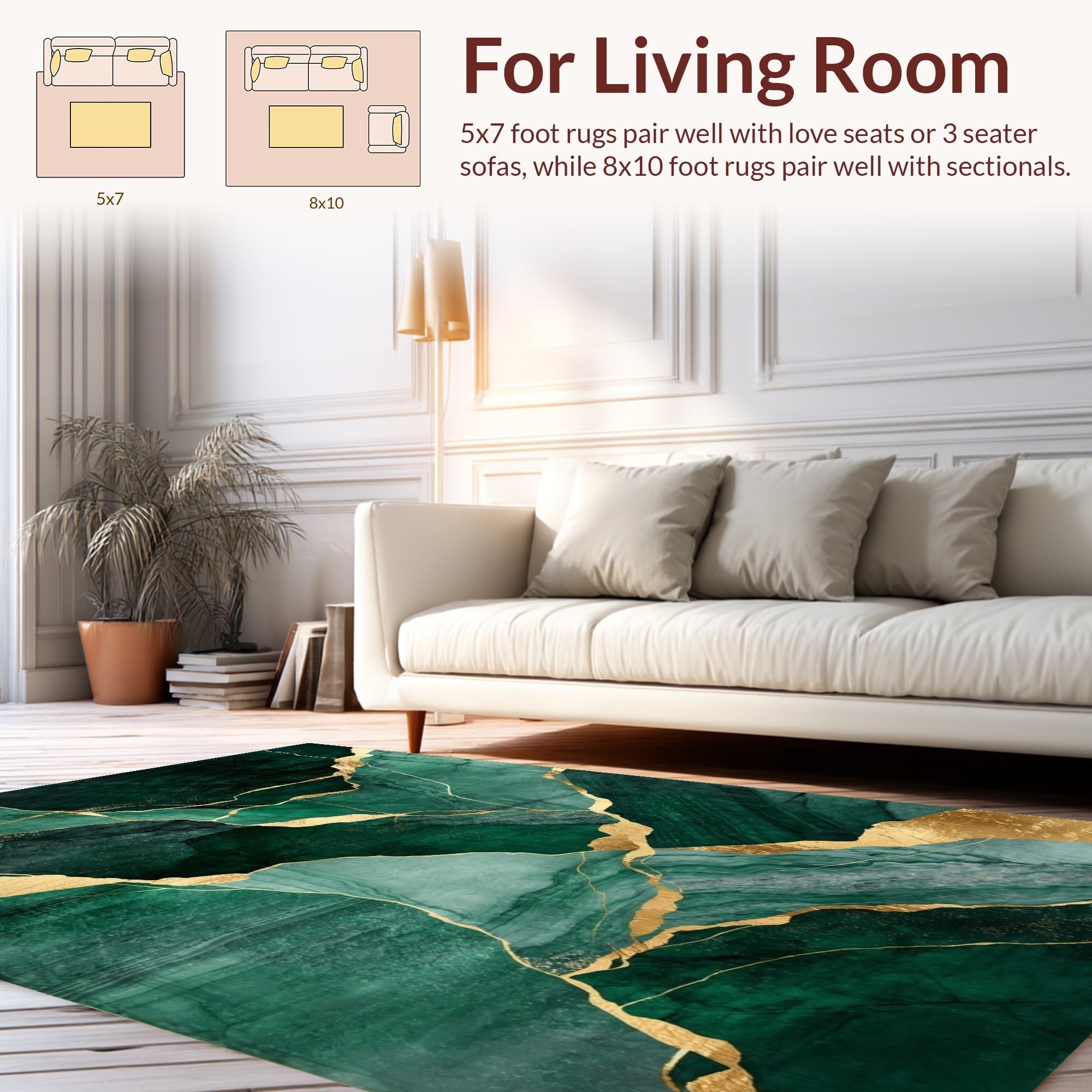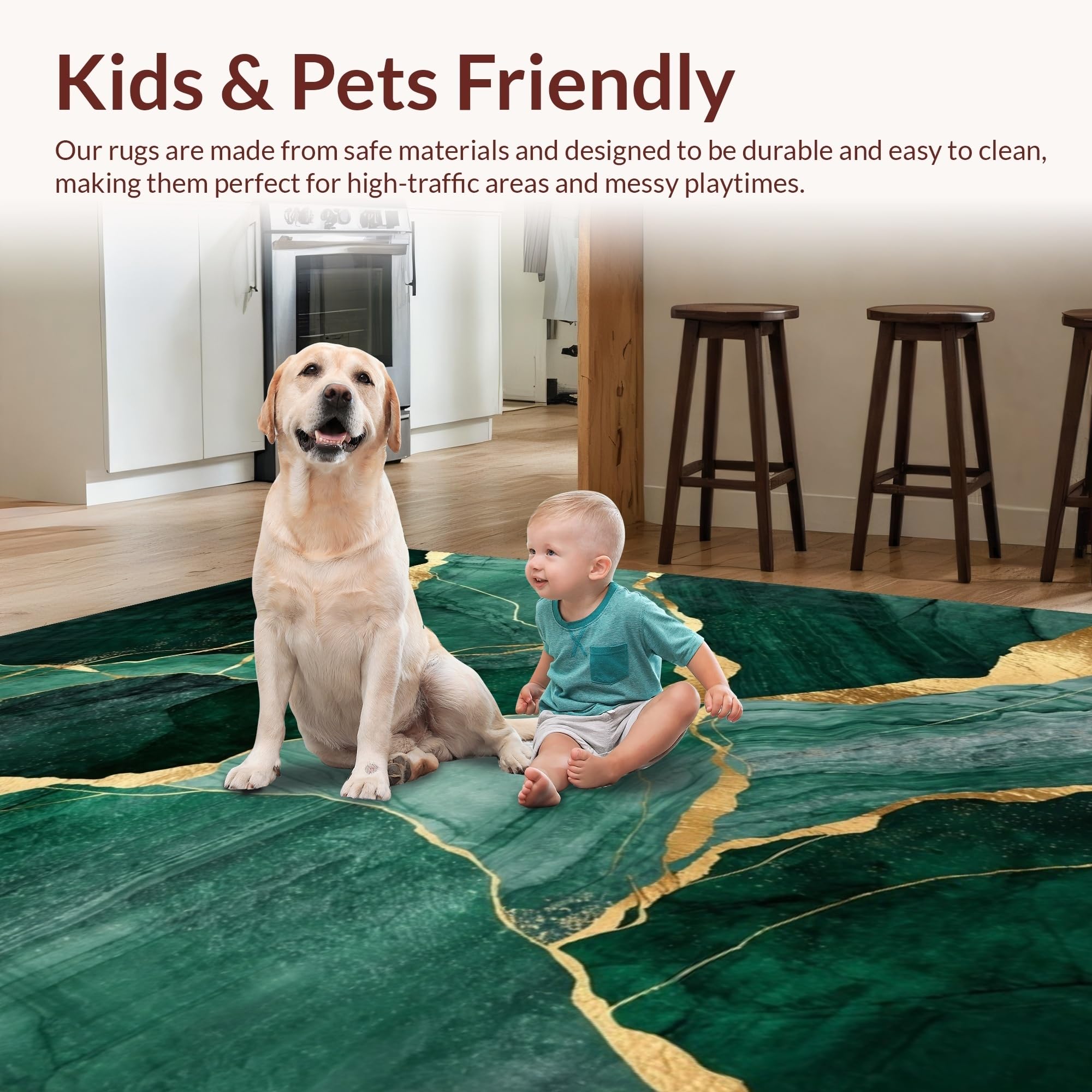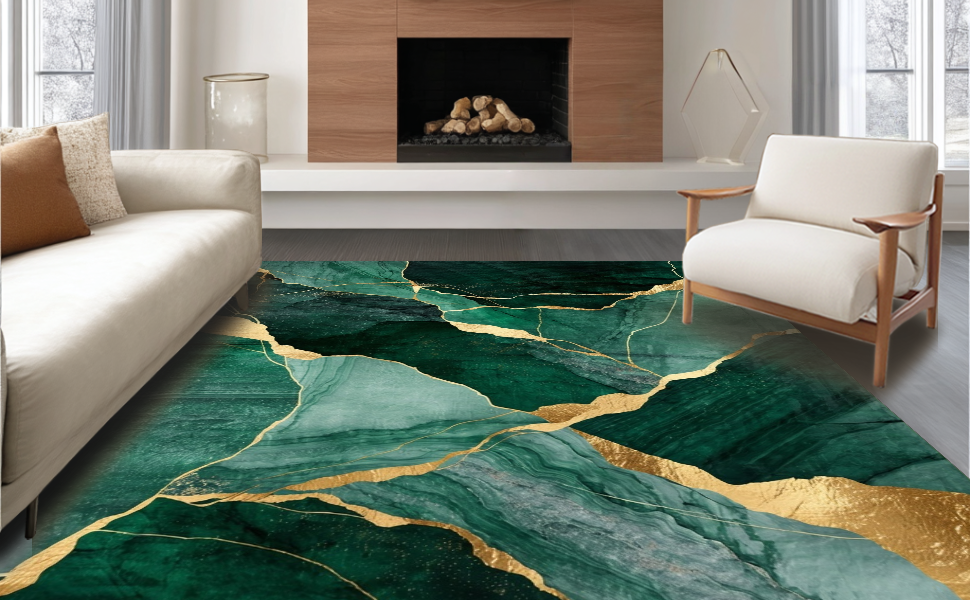 Ultra Soft Area Rug, Non Slip, Stain Resistant, Washable Area Rugs for Living Room, Bedroom, Dynamic Earth Tone Geometric Art(Green) Overview: