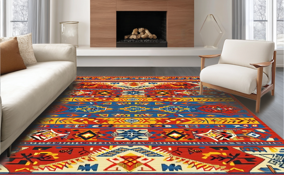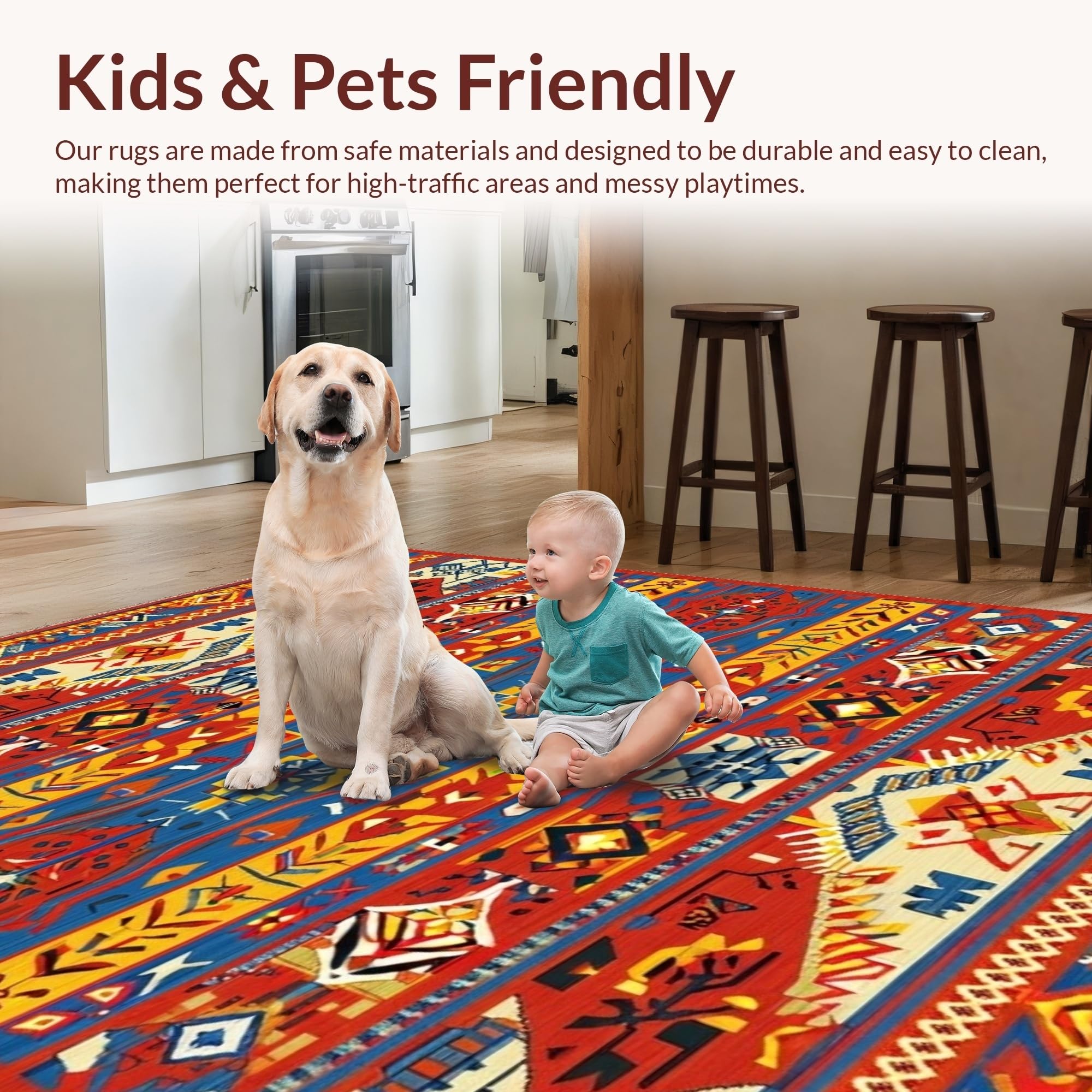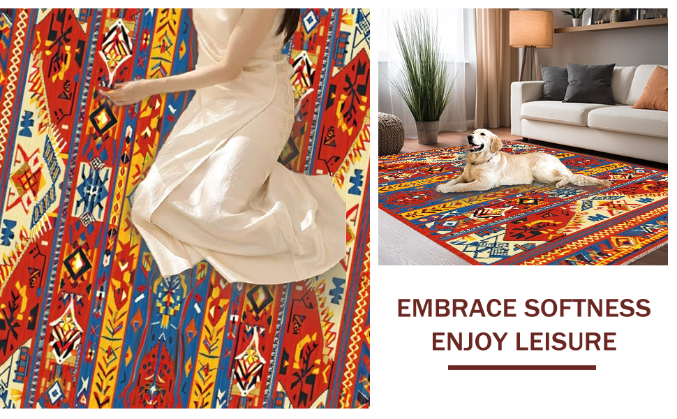 Ultra Soft Area Rug, Non Slip, Stain Resistant, Washable Area Rugs for Living Room, Bedroom, Dynamic Eclectic Braided Aesthetic(Red) Overview: