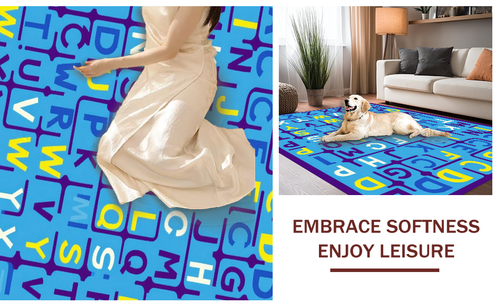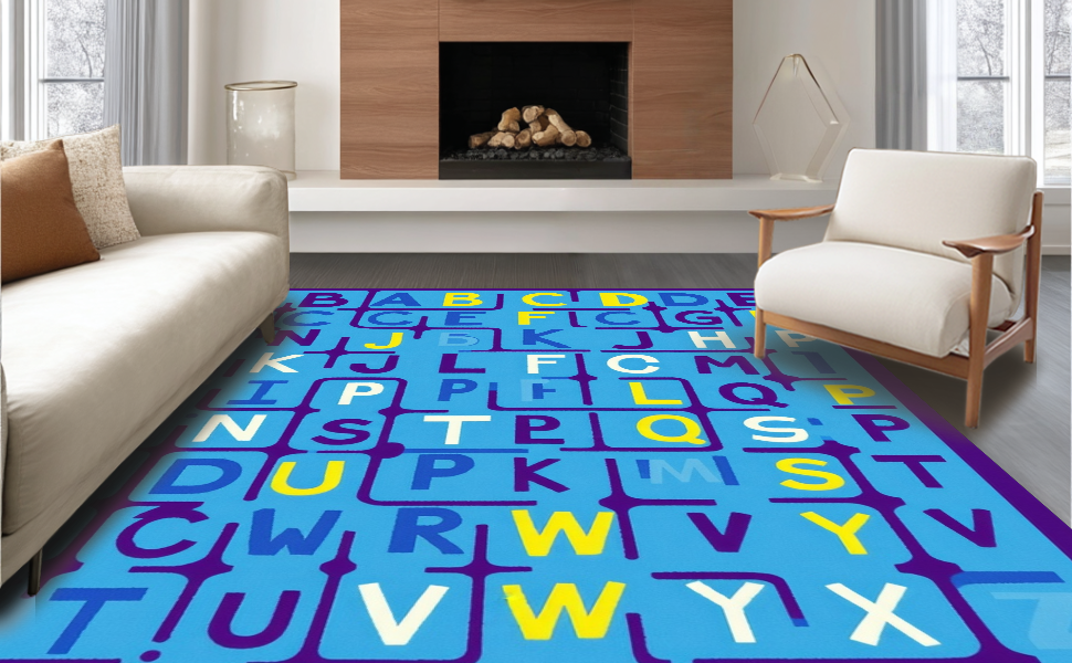 Ultra Soft Area Rug, Non Slip, Stain Resistant, Washable Area Rugs for Living Room, Bedroom, Dynamic Educational Elements Display(Blue) Overview: