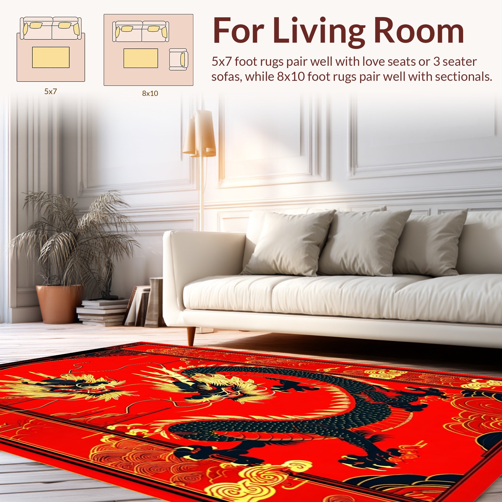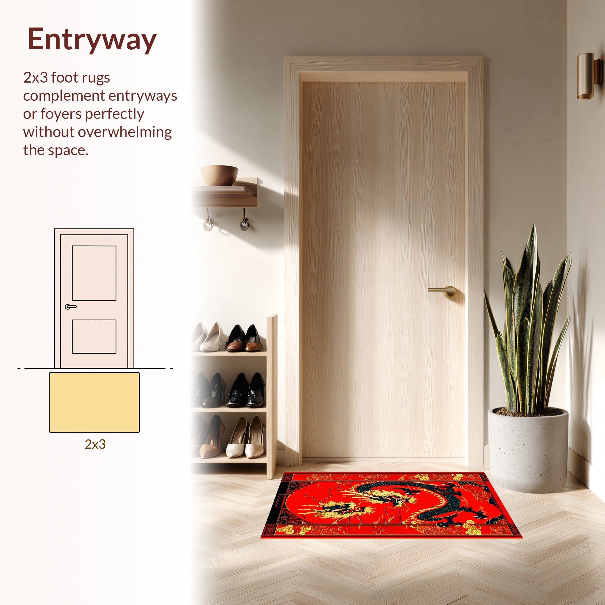 Flatwoven High Traffic Area Rug, Dynamic Fire Breathing Dragon Aesthetic, Non Slip, Stain Resistant, Washable Area Rugs for Living Room, Bedroom (Red) Overview: