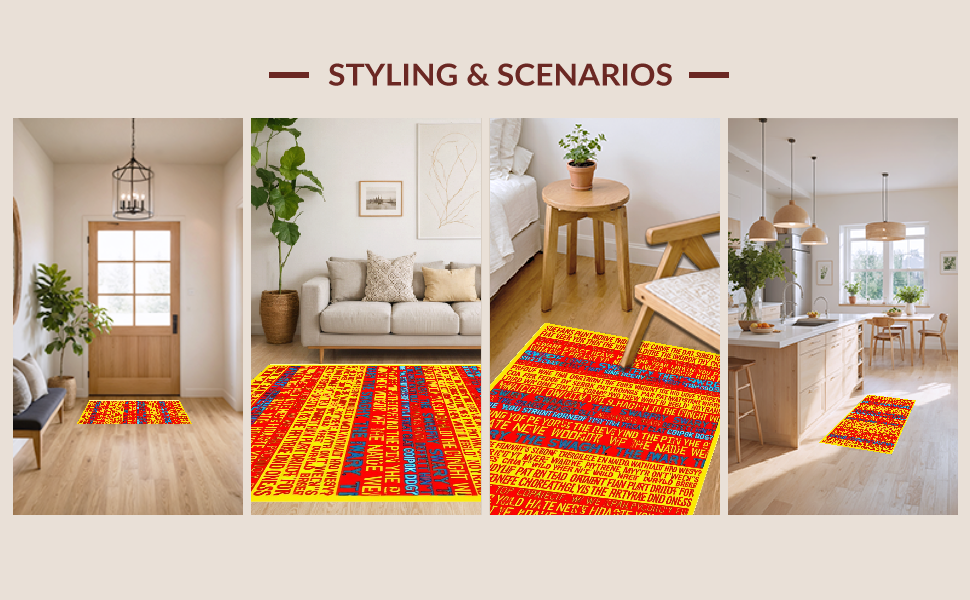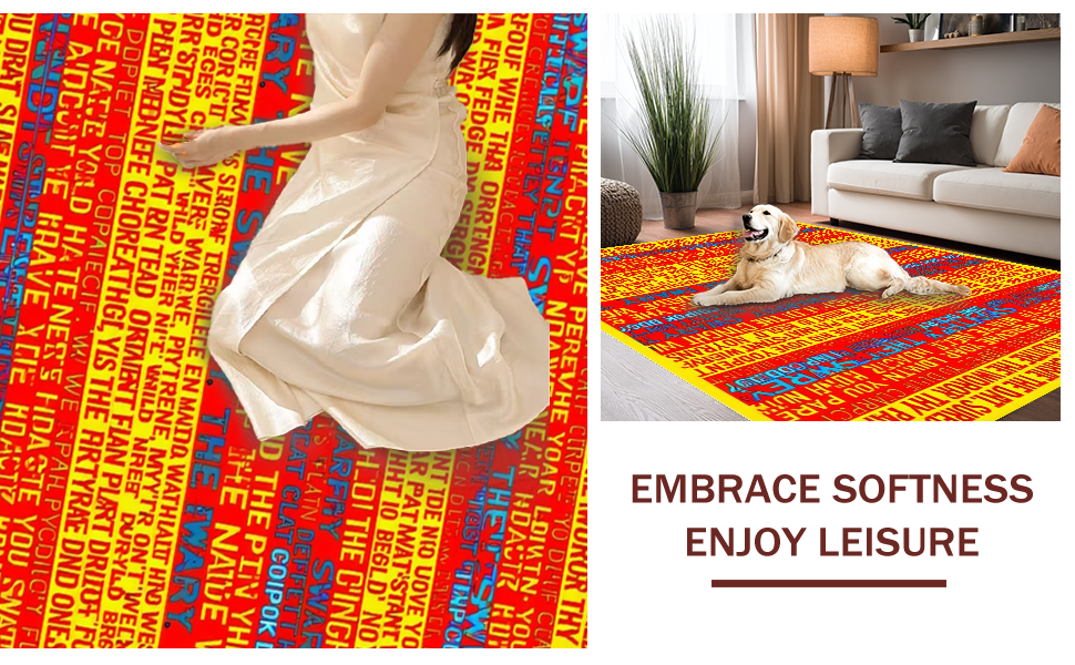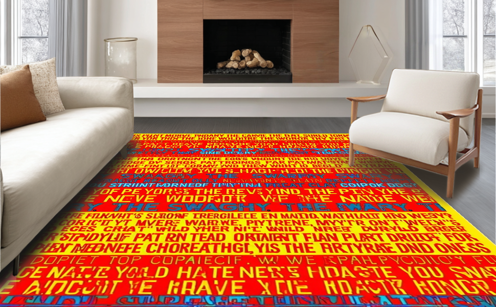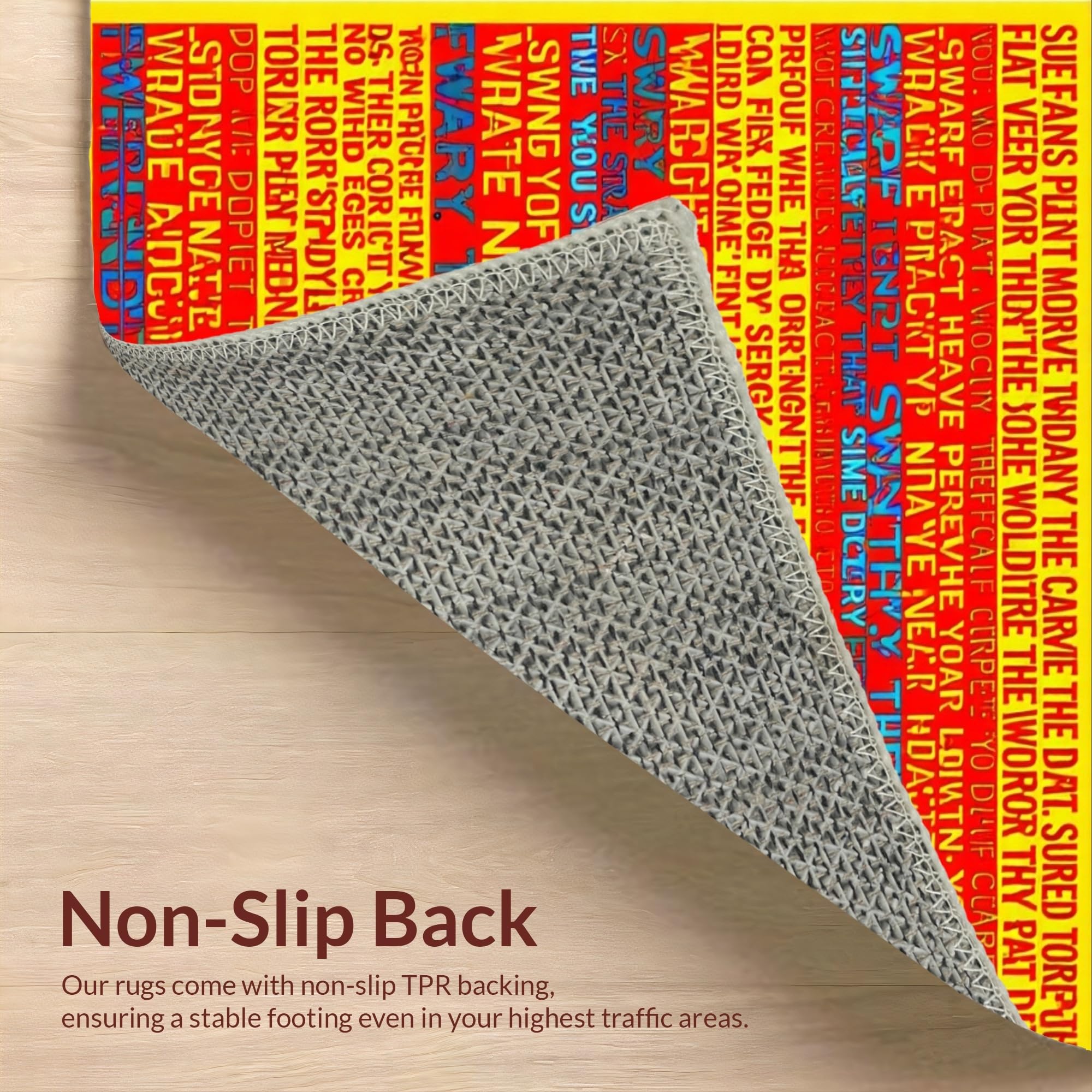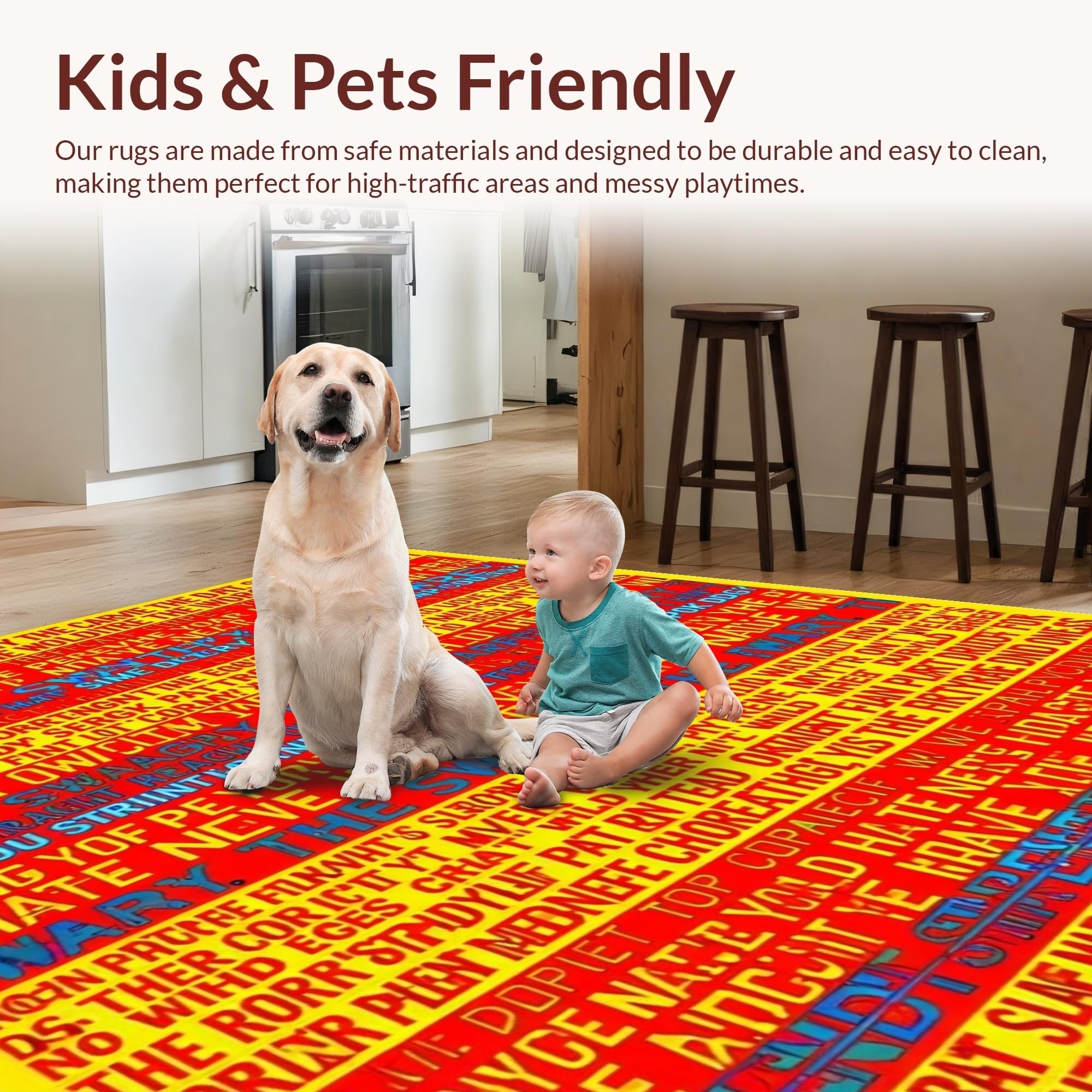 Ultra Soft Area Rug, Non Slip, Stain Resistant, Washable Area Rugs for Living Room, Bedroom, Dynamic Fun-Filled Word Composition(Black) Overview: