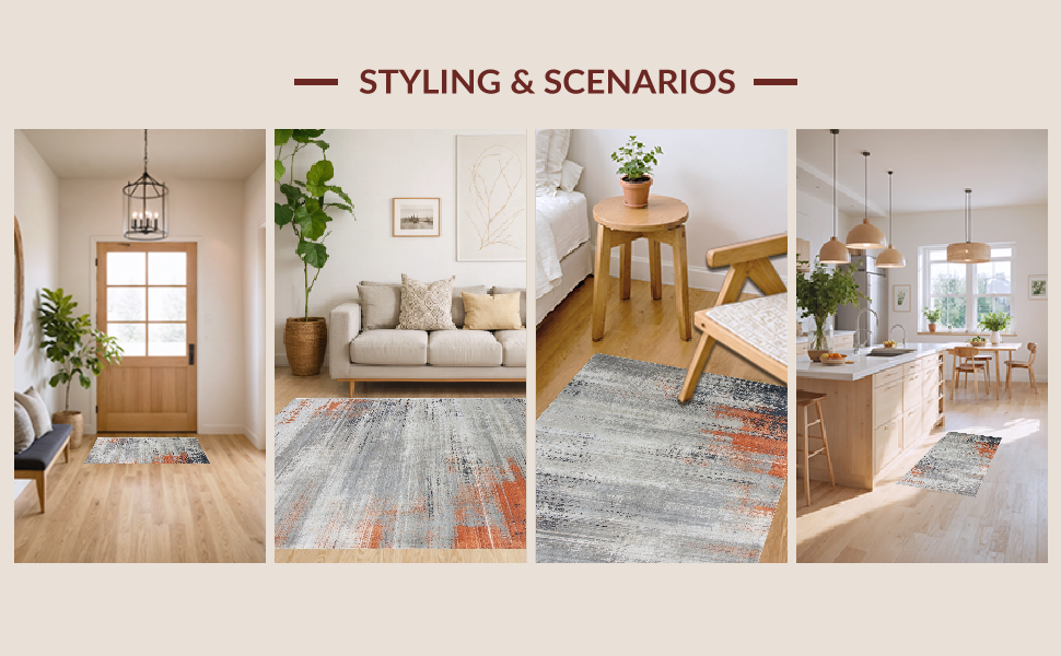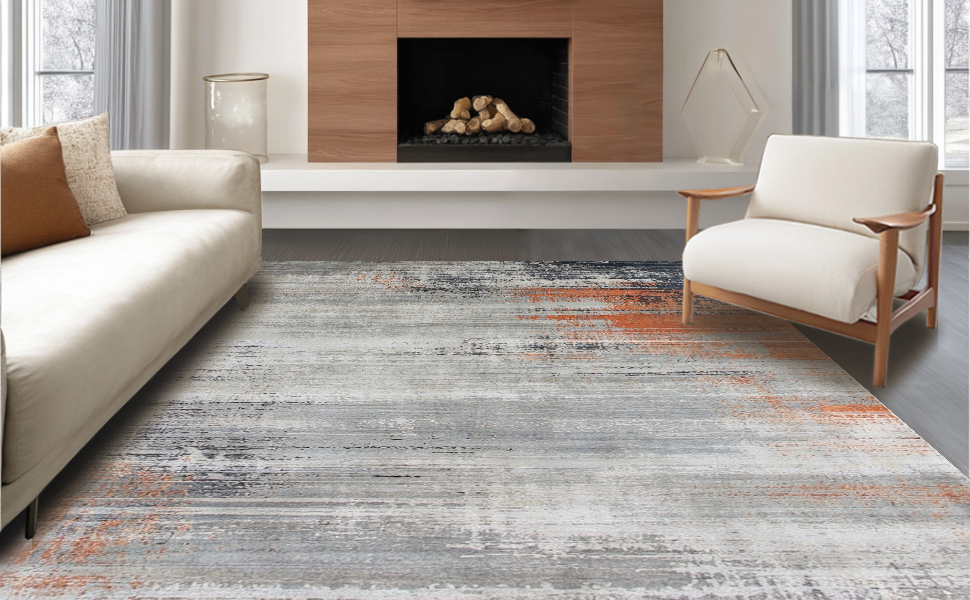 Ultra Soft Area Rug, Non Slip, Stain Resistant, Washable Area Rugs for Living Room, Bedroom, Dynamic Geometric Color Block(Gray) Overview: