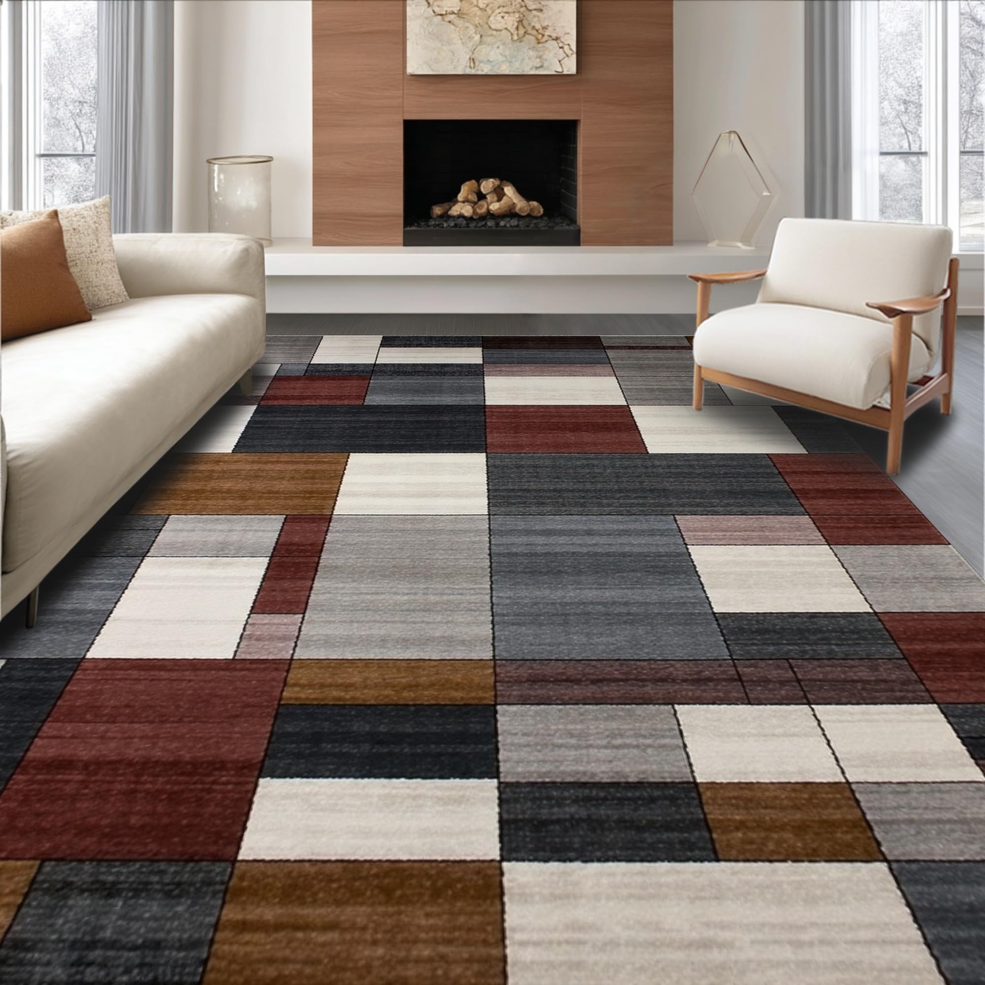 Ultra Soft Area Rug, Non Slip, Stain Resistant, Washable Area Rugs for Living Room, Bedroom, Dynamic Geometric Layered Visuals(Gray) Overview: