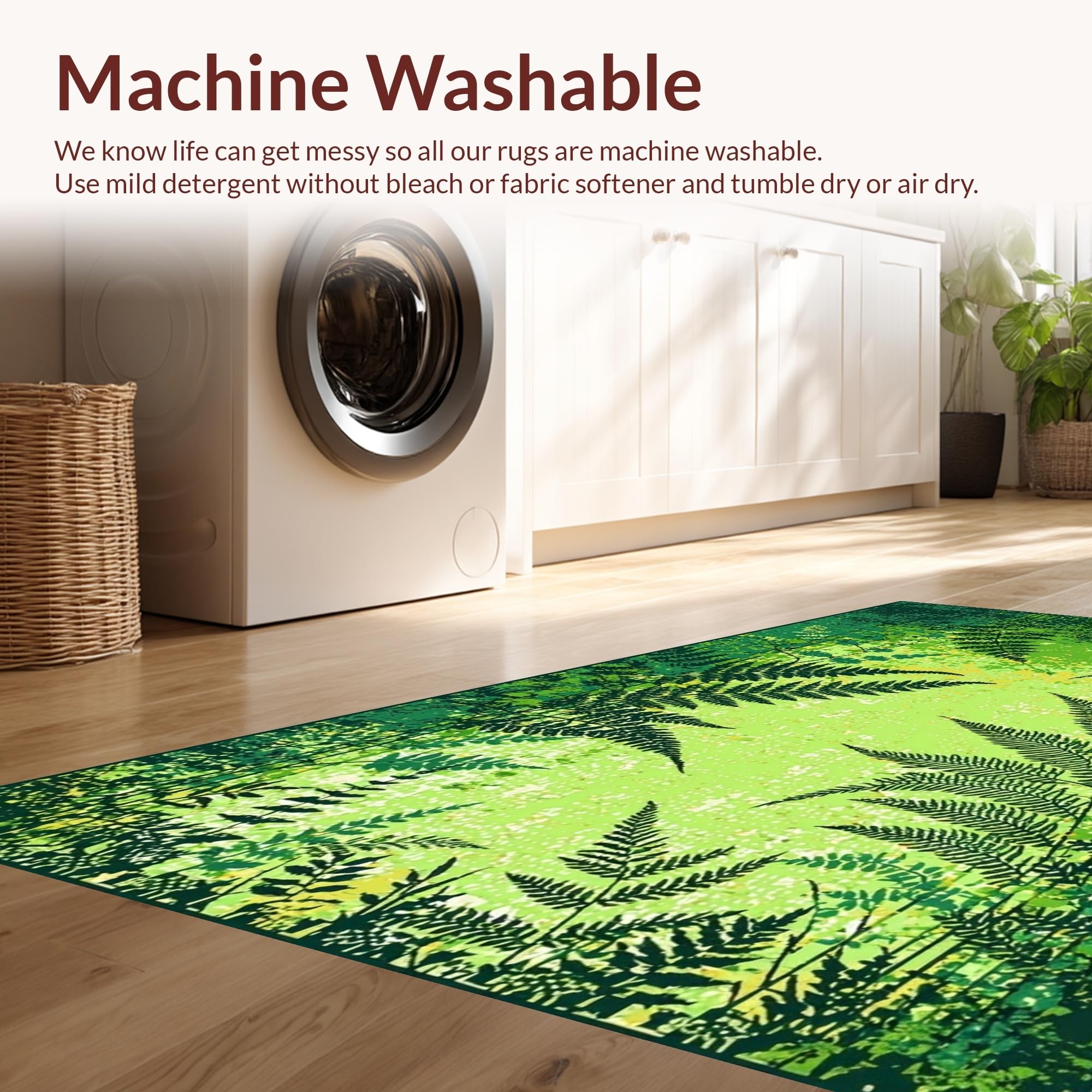 - Machine Washable: Our rugs can be easily thrown in the wash machine.