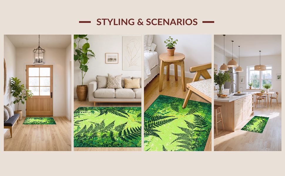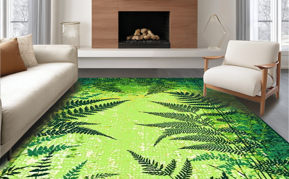 Ultra Soft Area Rug, Non Slip, Stain Resistant, Washable Area Rugs for Living Room, Bedroom, Dynamic Geometric Nature Theme(Green) Overview: