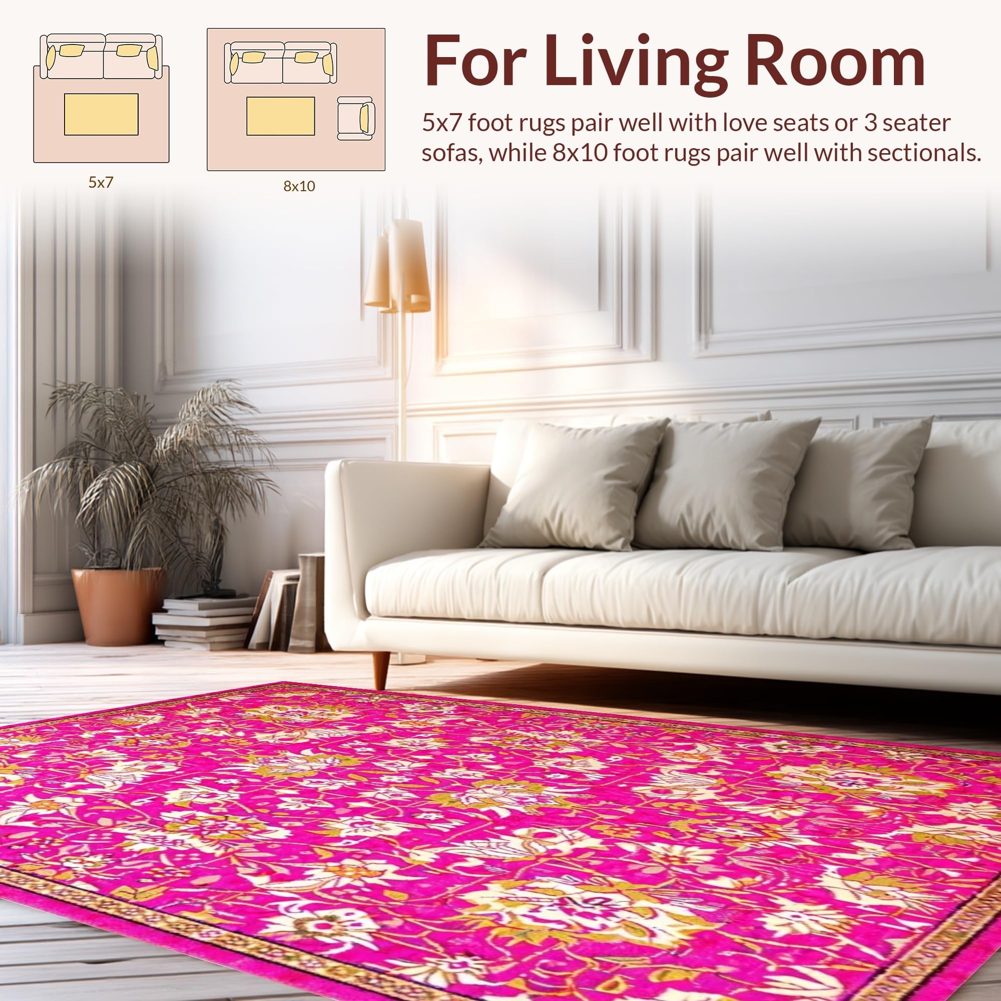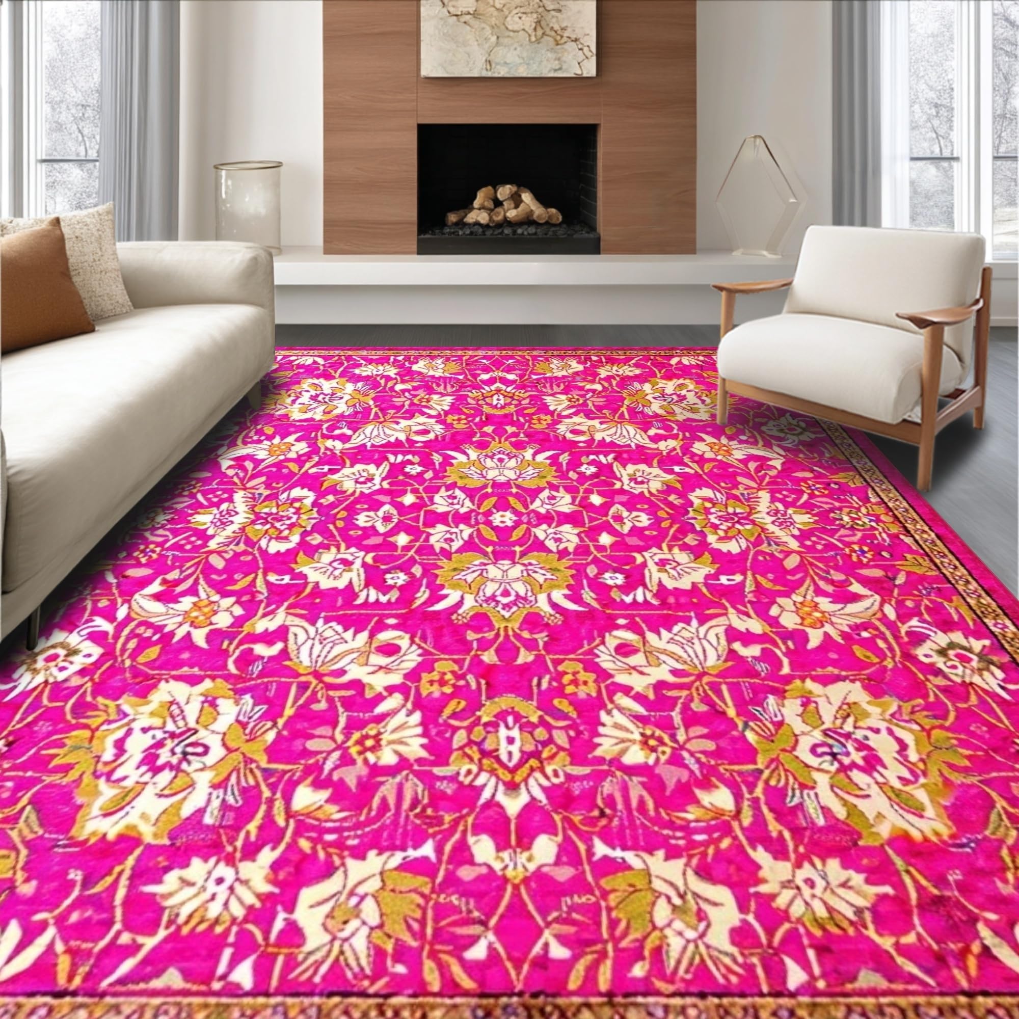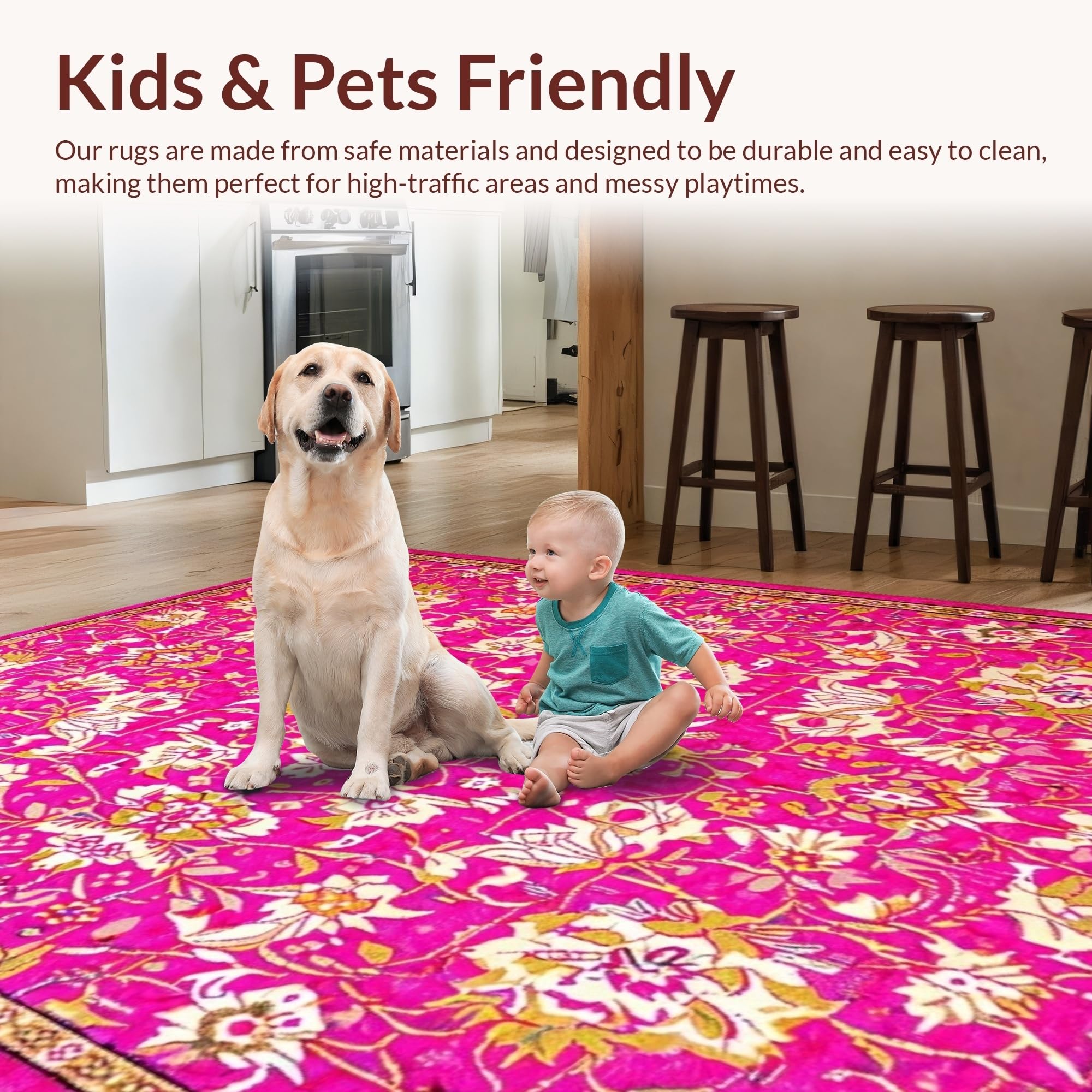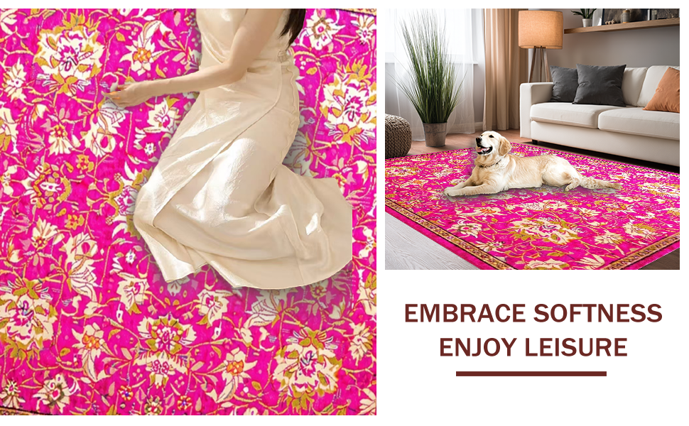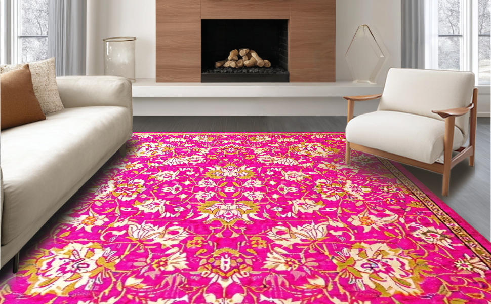 Ultra Soft Area Rug, Non Slip, Stain Resistant, Washable Area Rugs for Living Room, Bedroom, Dynamic Geometric Playful Design(Pink) Overview: