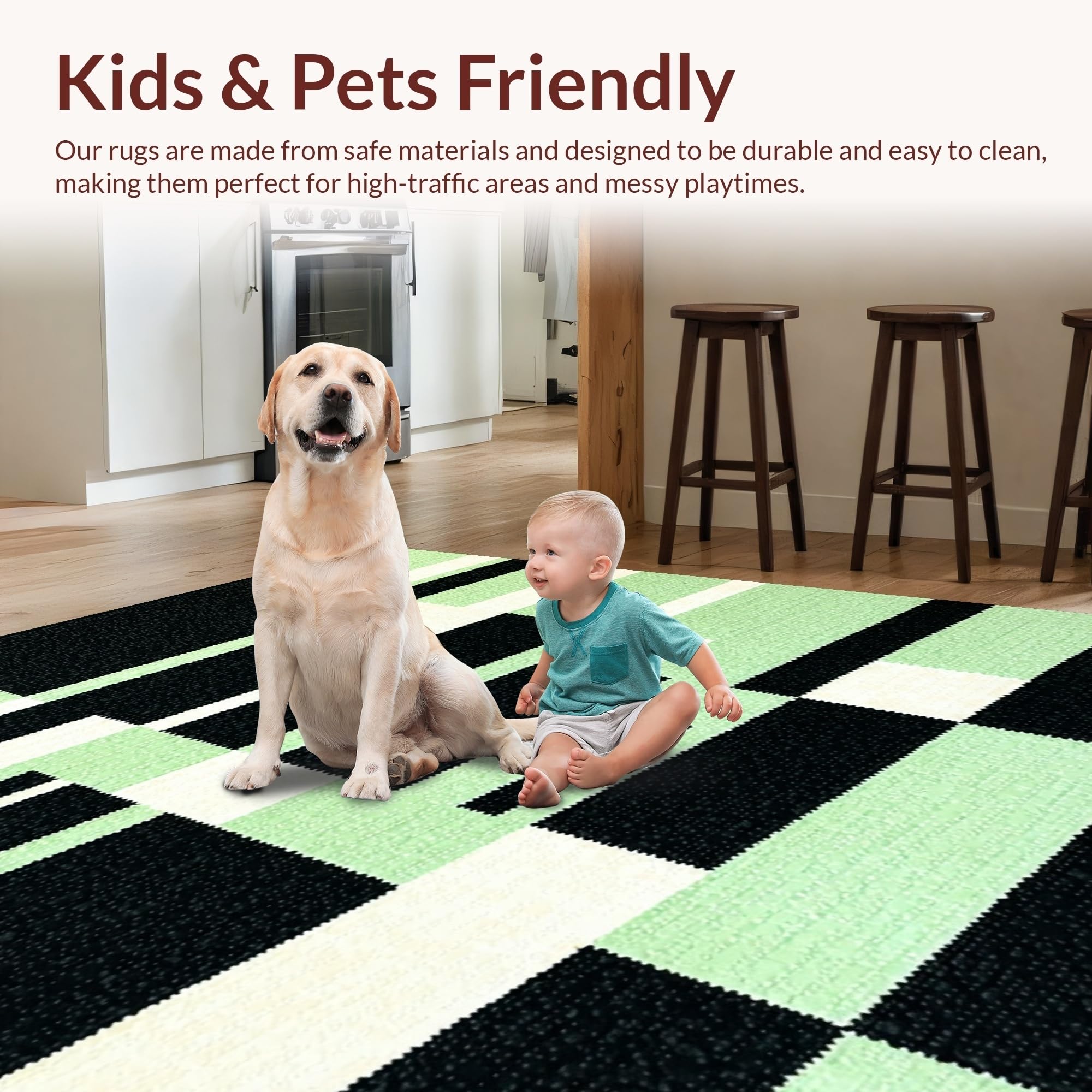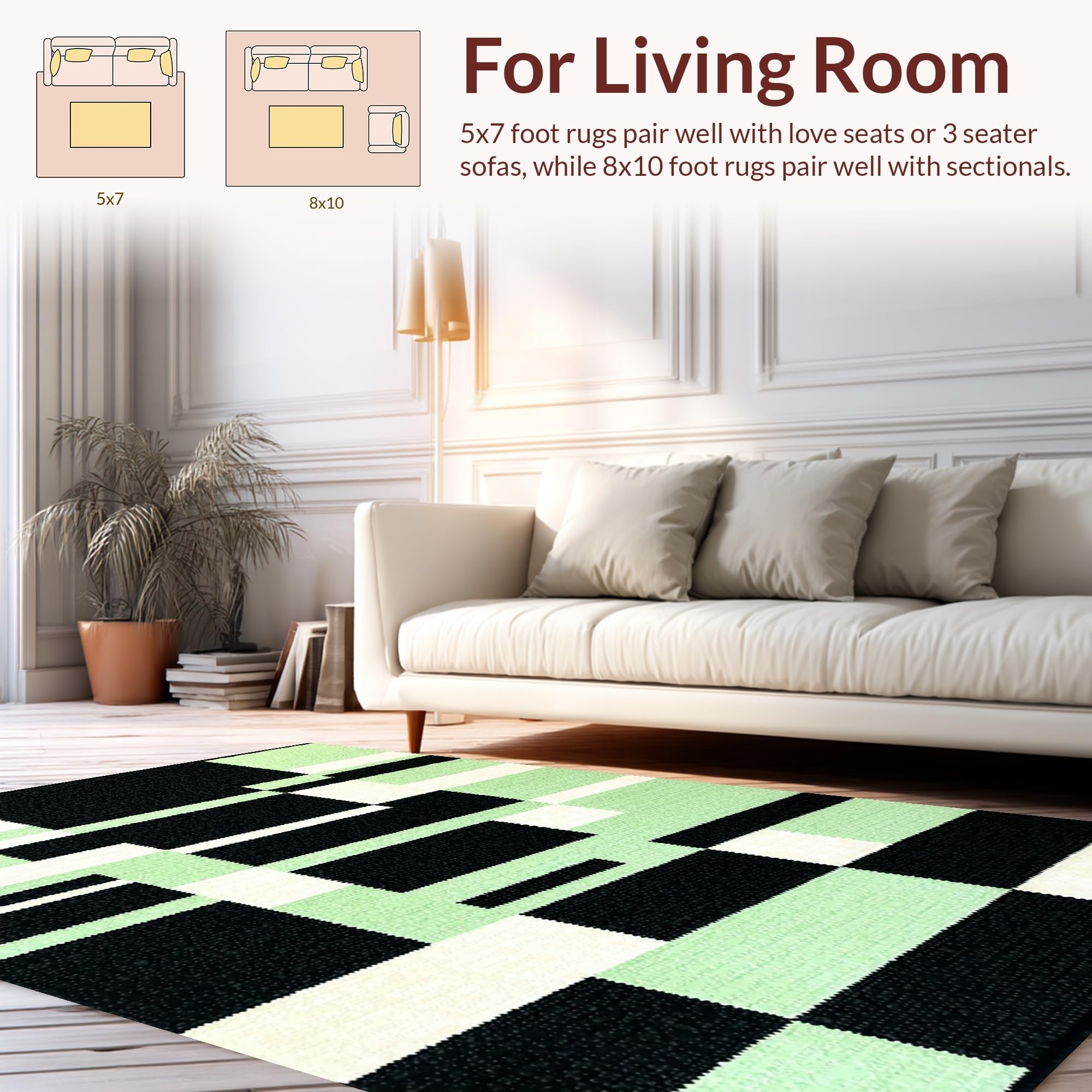Ultra Soft Area Rug, Non Slip, Stain Resistant, Washable Area Rugs for Living Room, Bedroom, Dynamic Geometric Triadic Color Palette(Beige) Overview:
