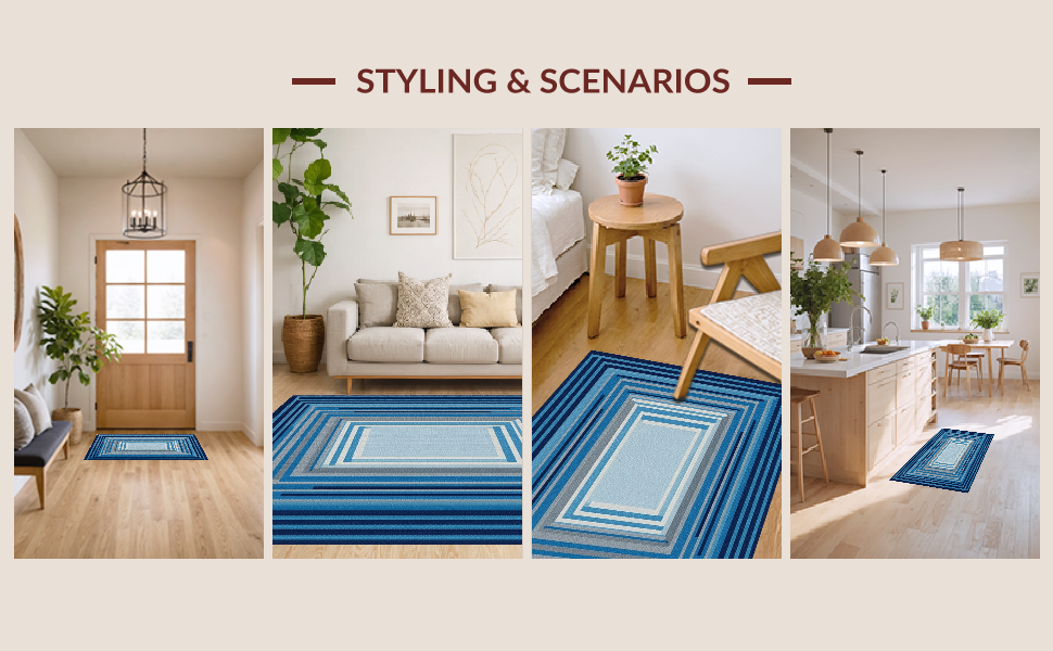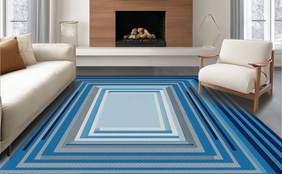 Ultra Soft Area Rug, Non Slip, Stain Resistant, Washable Area Rugs for Living Room, Bedroom, Dynamic Gray and Green Combinations(Blue) Overview: