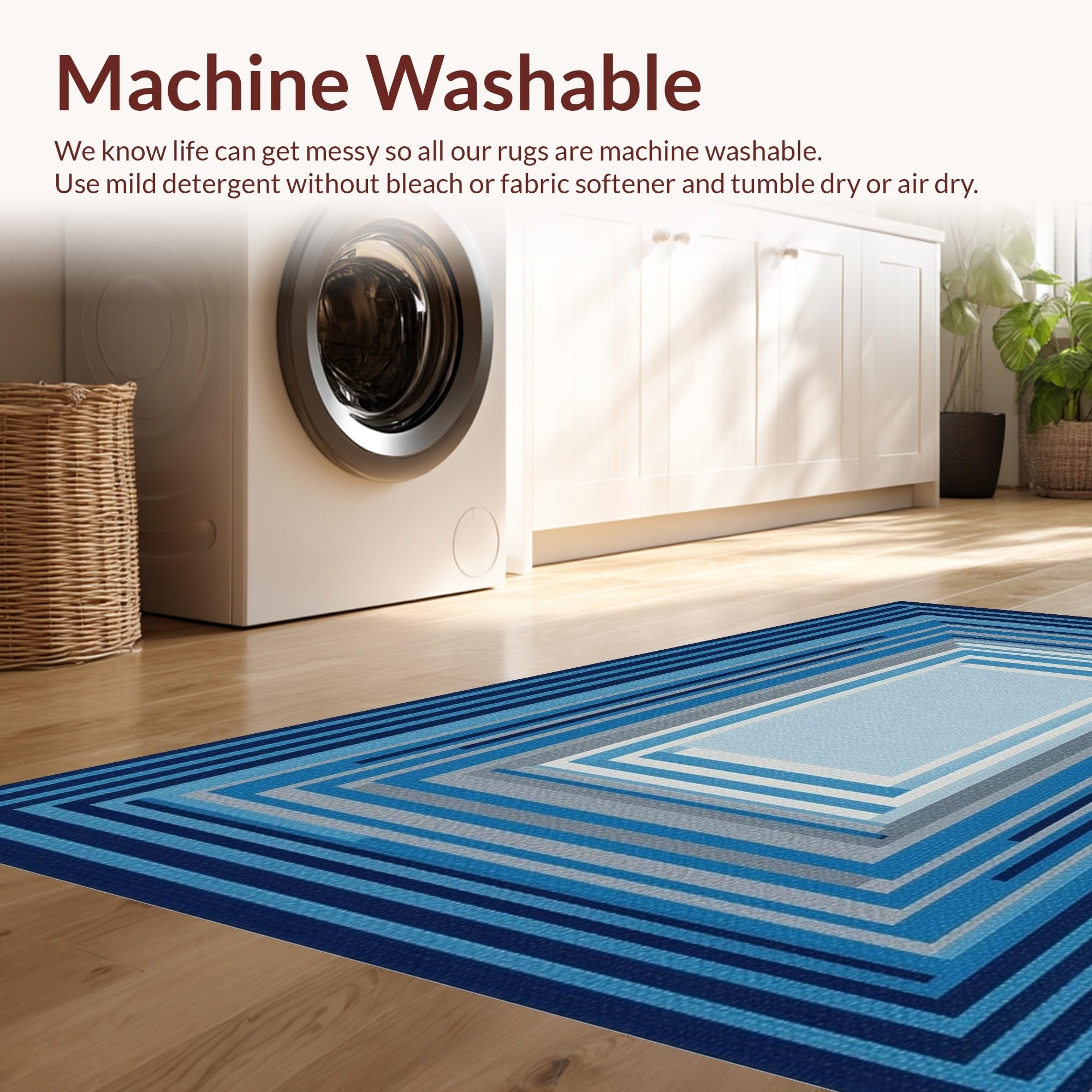 - Machine Washable: Our rugs can be easily thrown in the wash machine.