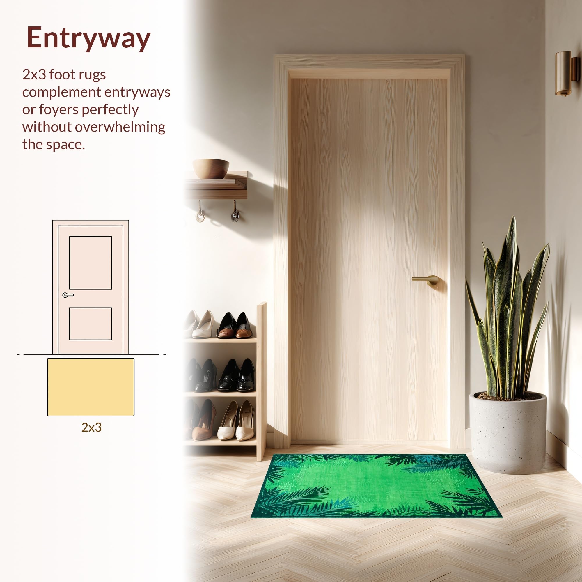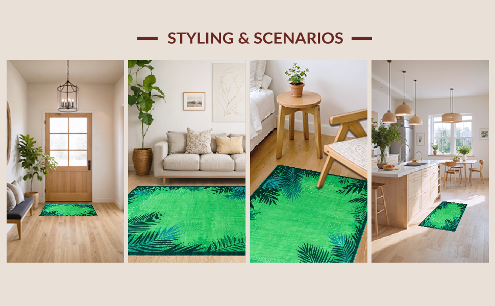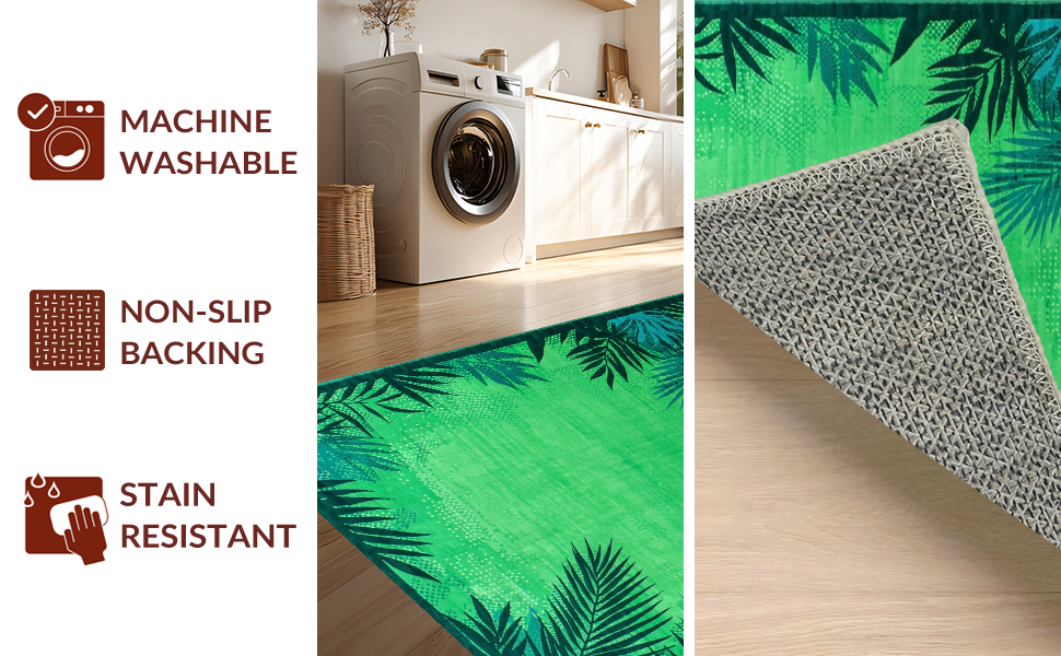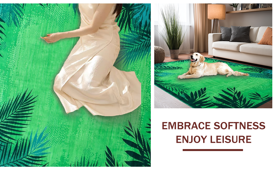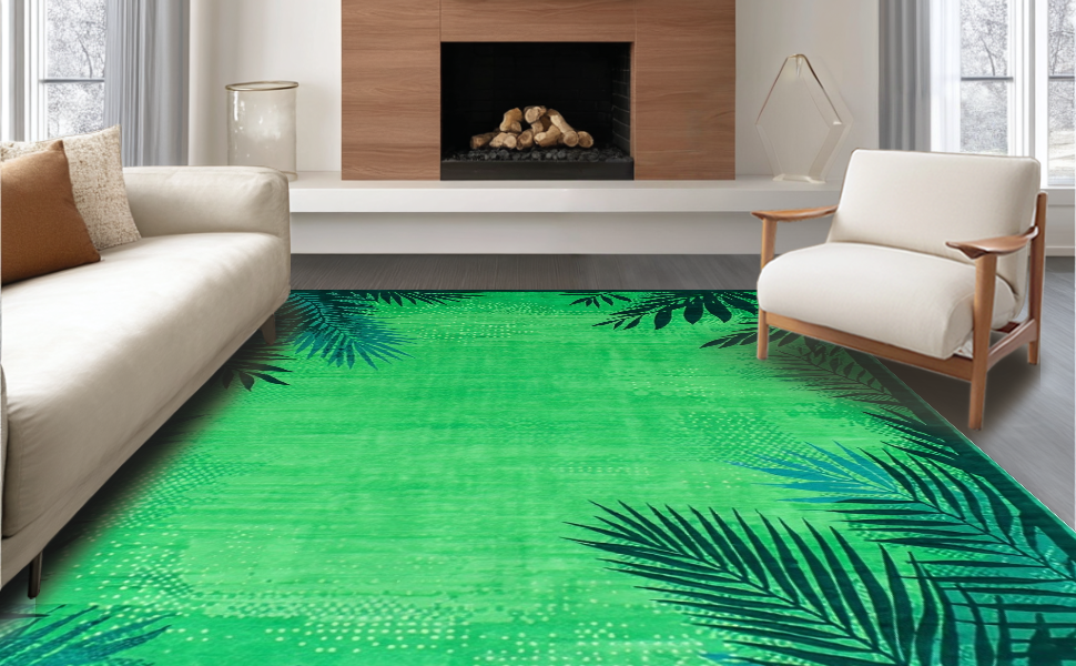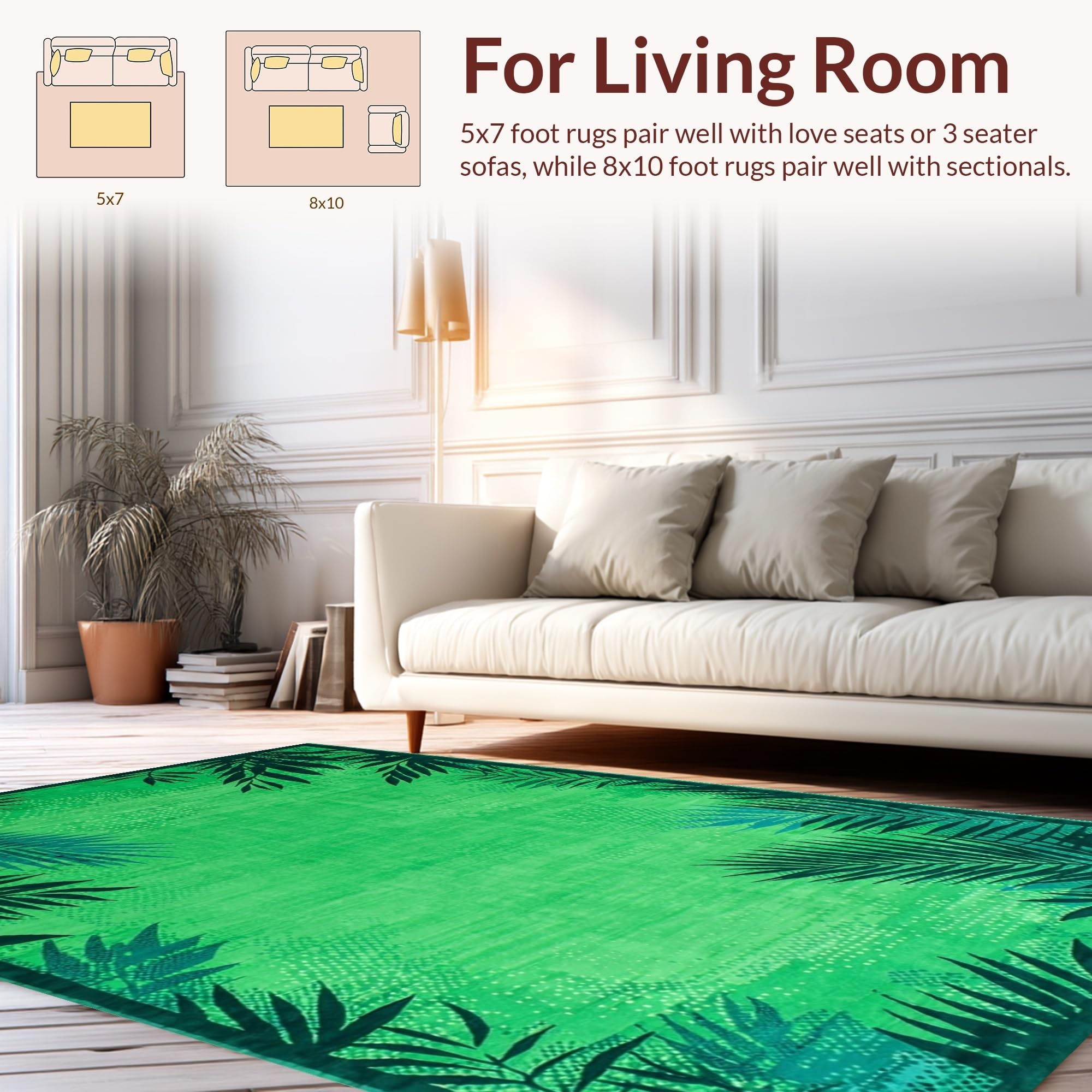 Ultra Soft Area Rug, Non Slip, Stain Resistant, Washable Area Rugs for Living Room, Bedroom, Dynamic Jungle Flora and Fauna Design(Green) Overview: