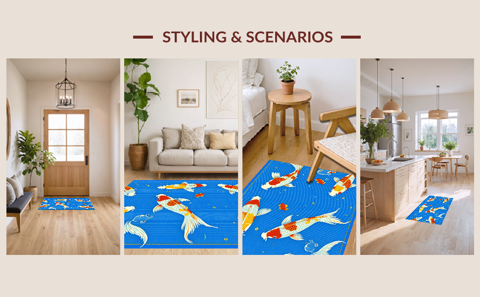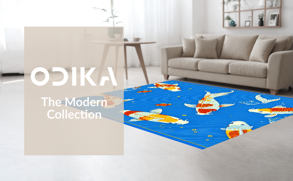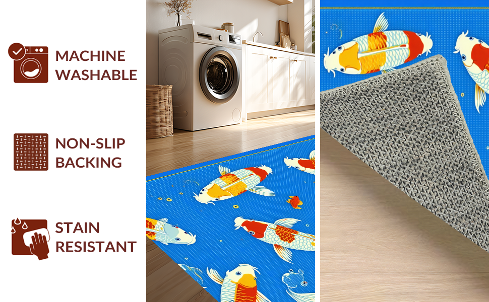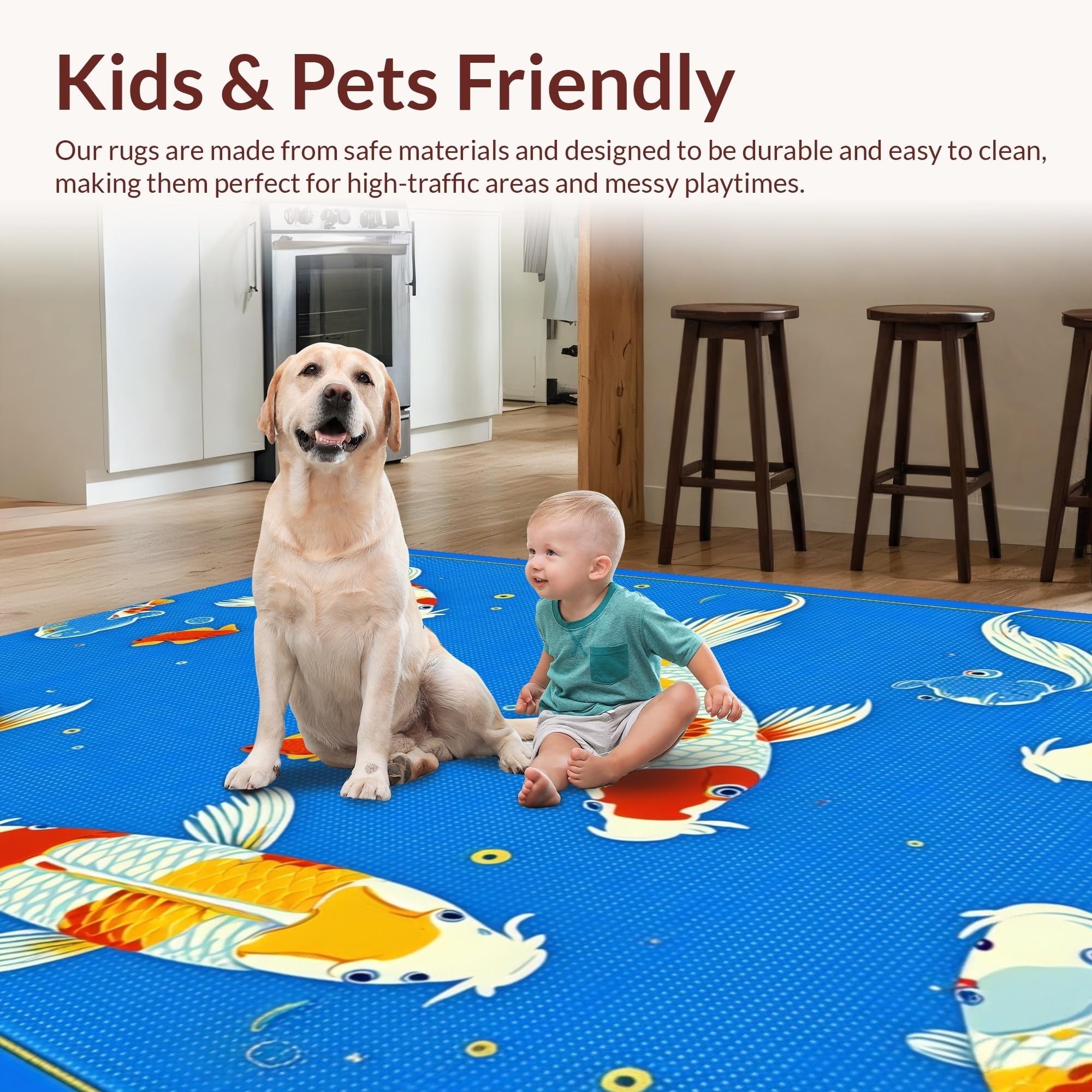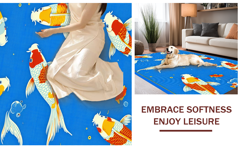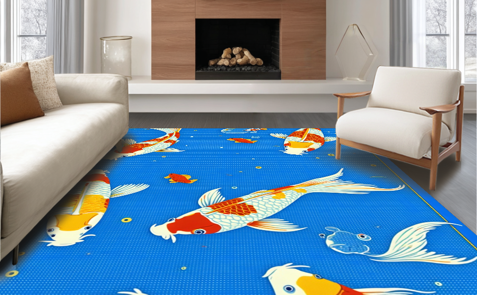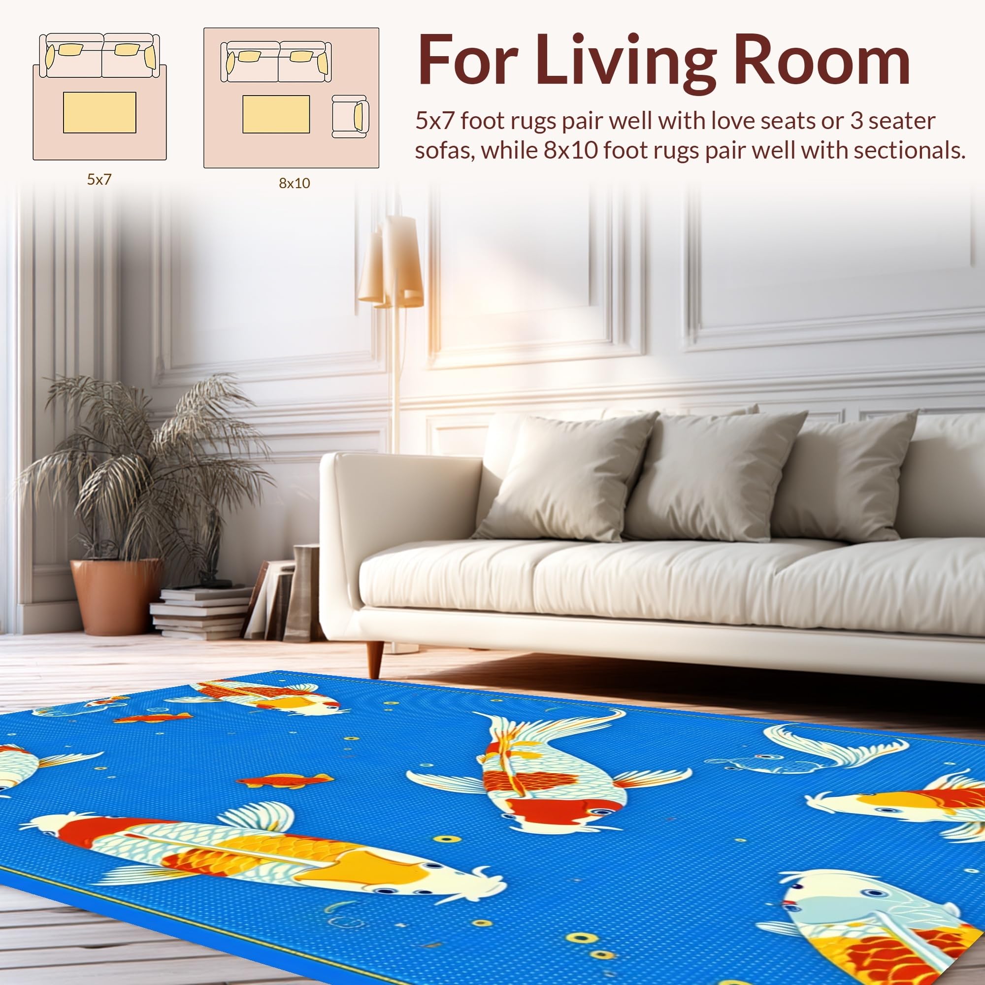 Ultra Soft Area Rug, Non Slip, Stain Resistant, Washable Area Rugs for Living Room, Bedroom, Dynamic Koi Artwork with Fluid Motion(Blue) Overview: