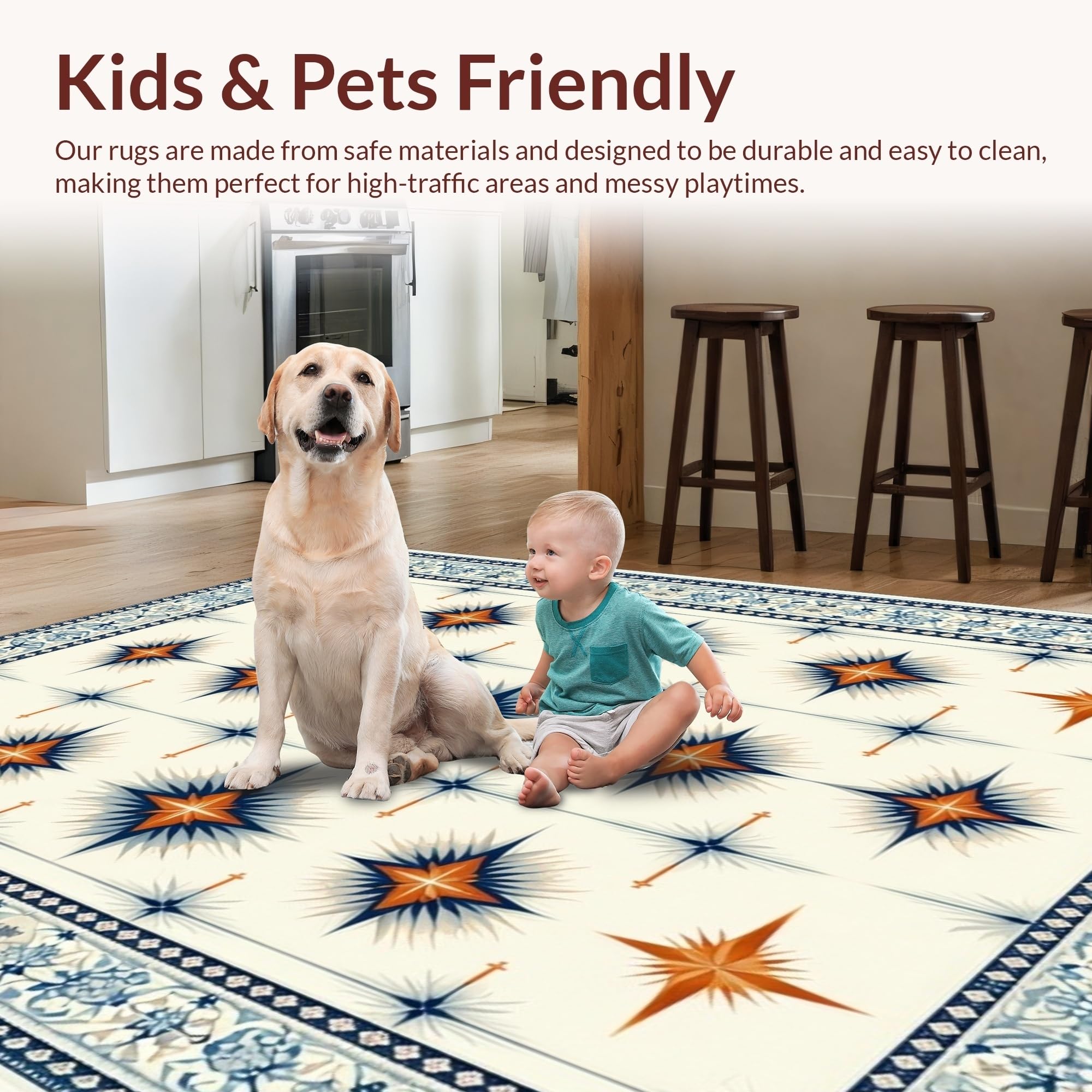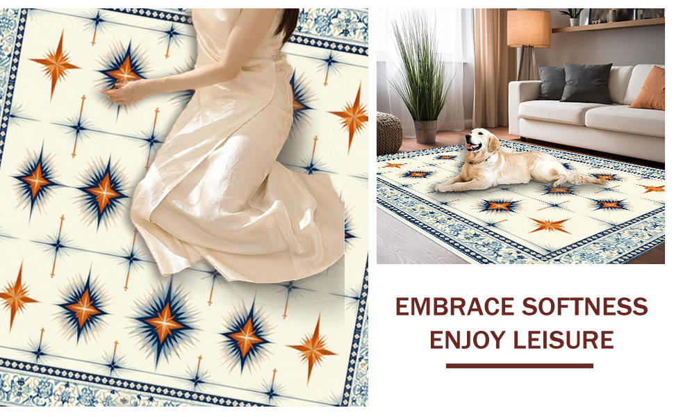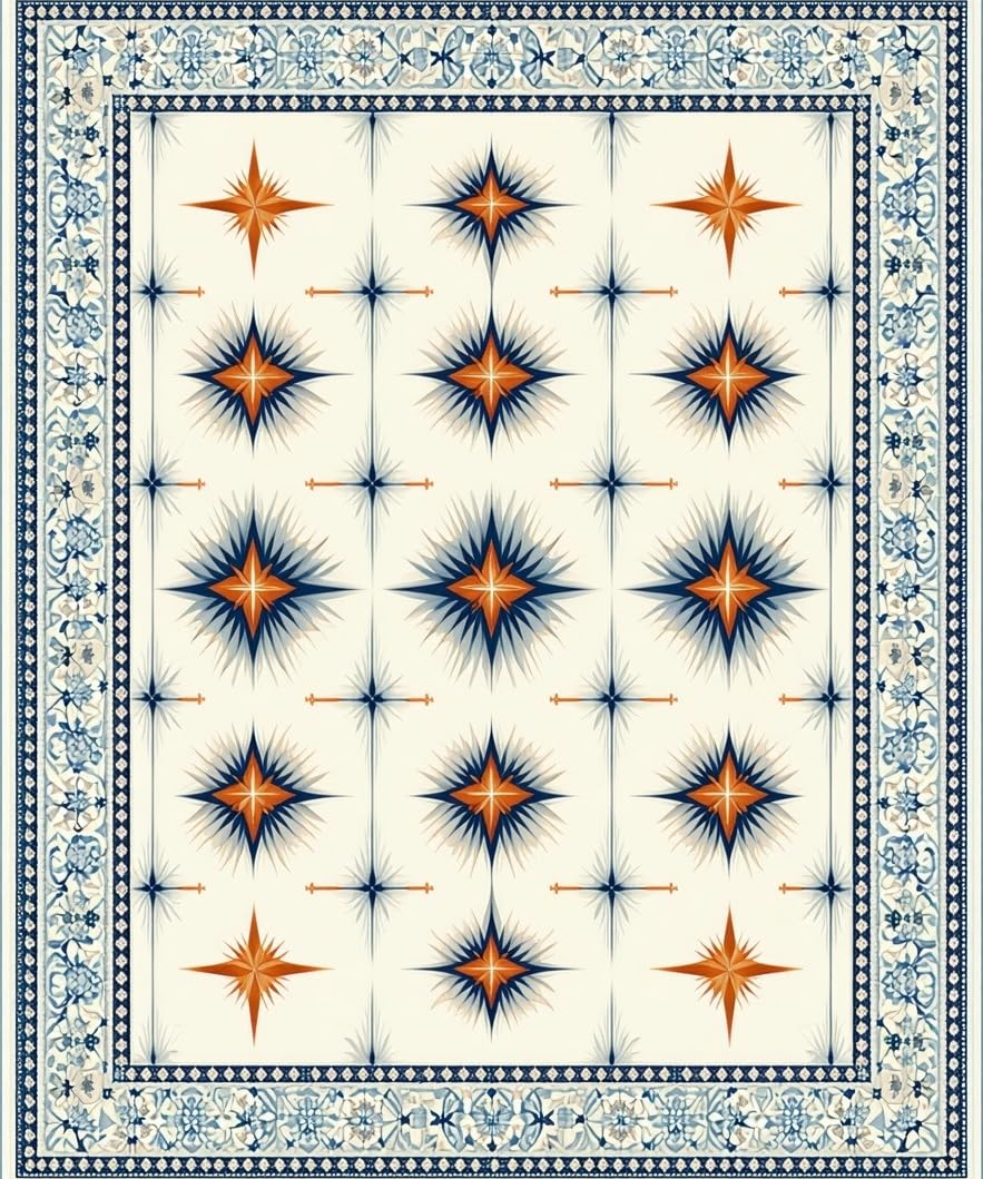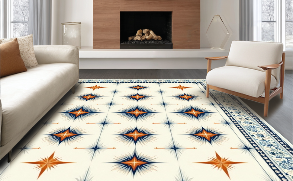 Ultra Soft Area Rug, Non Slip, Stain Resistant, Washable Area Rugs for Living Room, Bedroom, Dynamic Lattice Star Arrangement(Ivory) Overview: